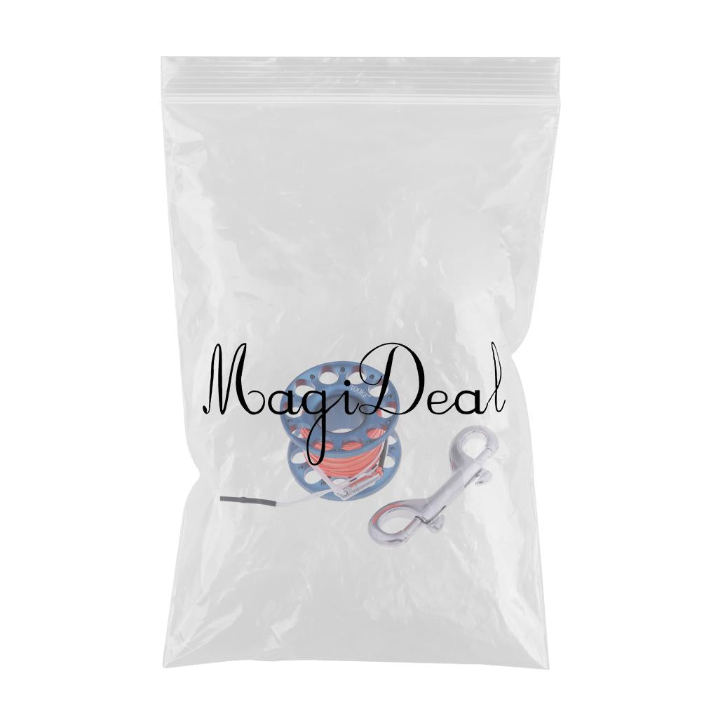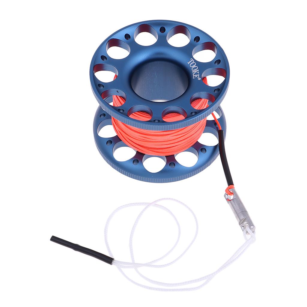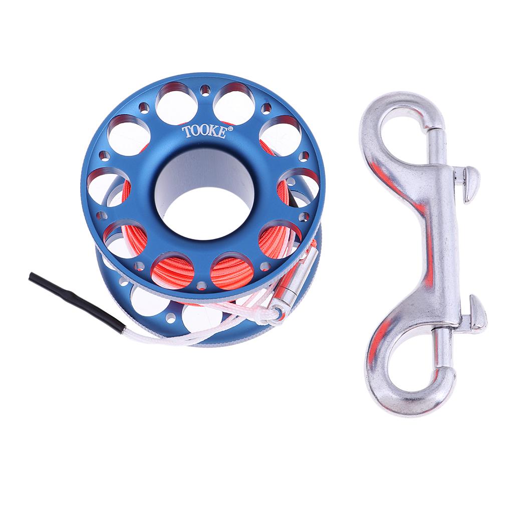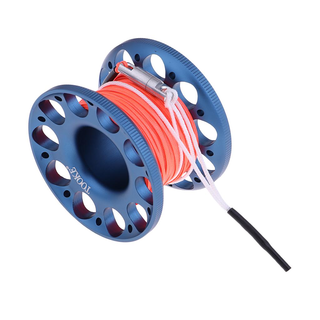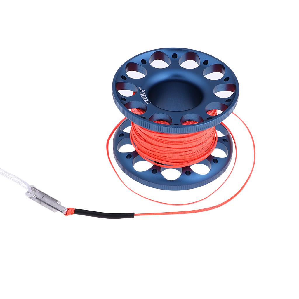 Scuba diving plastic compact finger spool reel with 15m high visibility line.