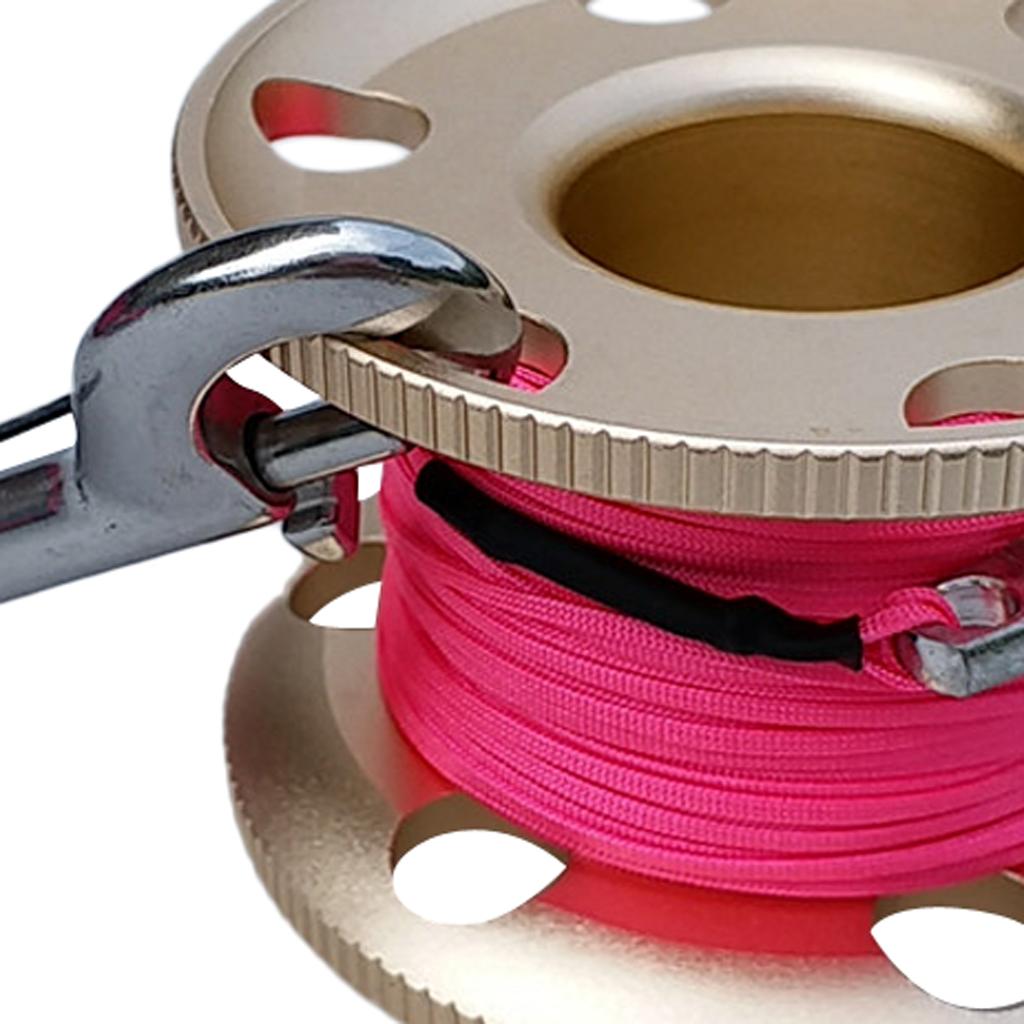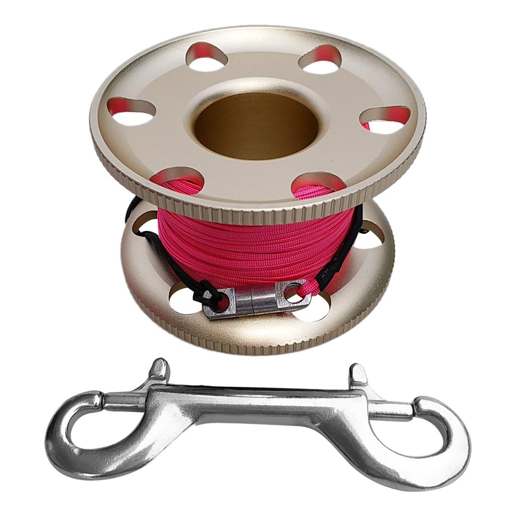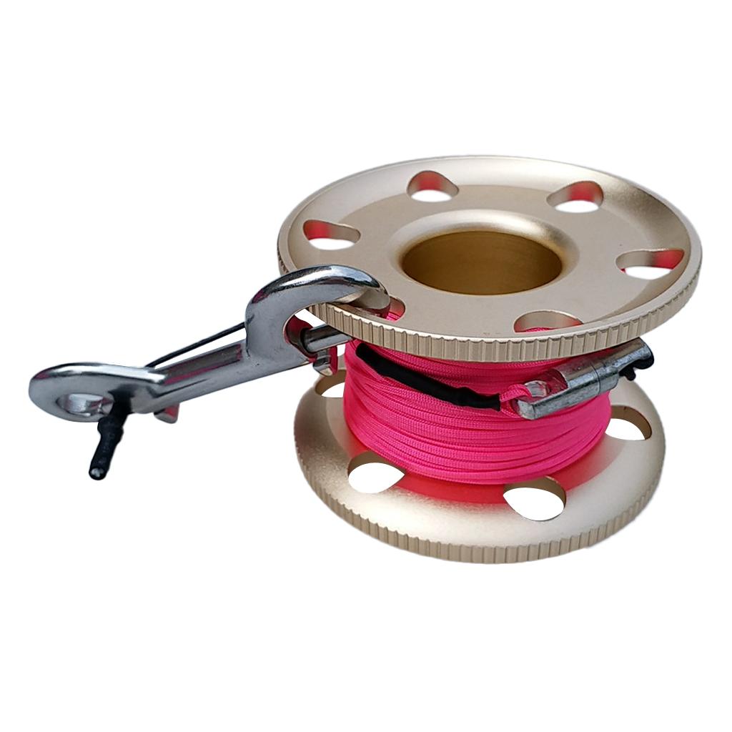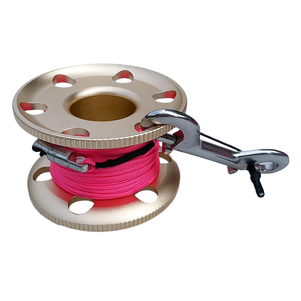 Scuba Diving Finger Spool Reel, Nylon Line&Double Ended Bolt Snap Gold 30m