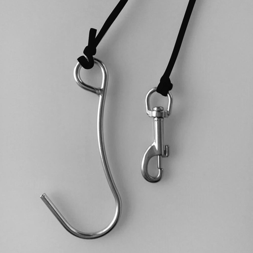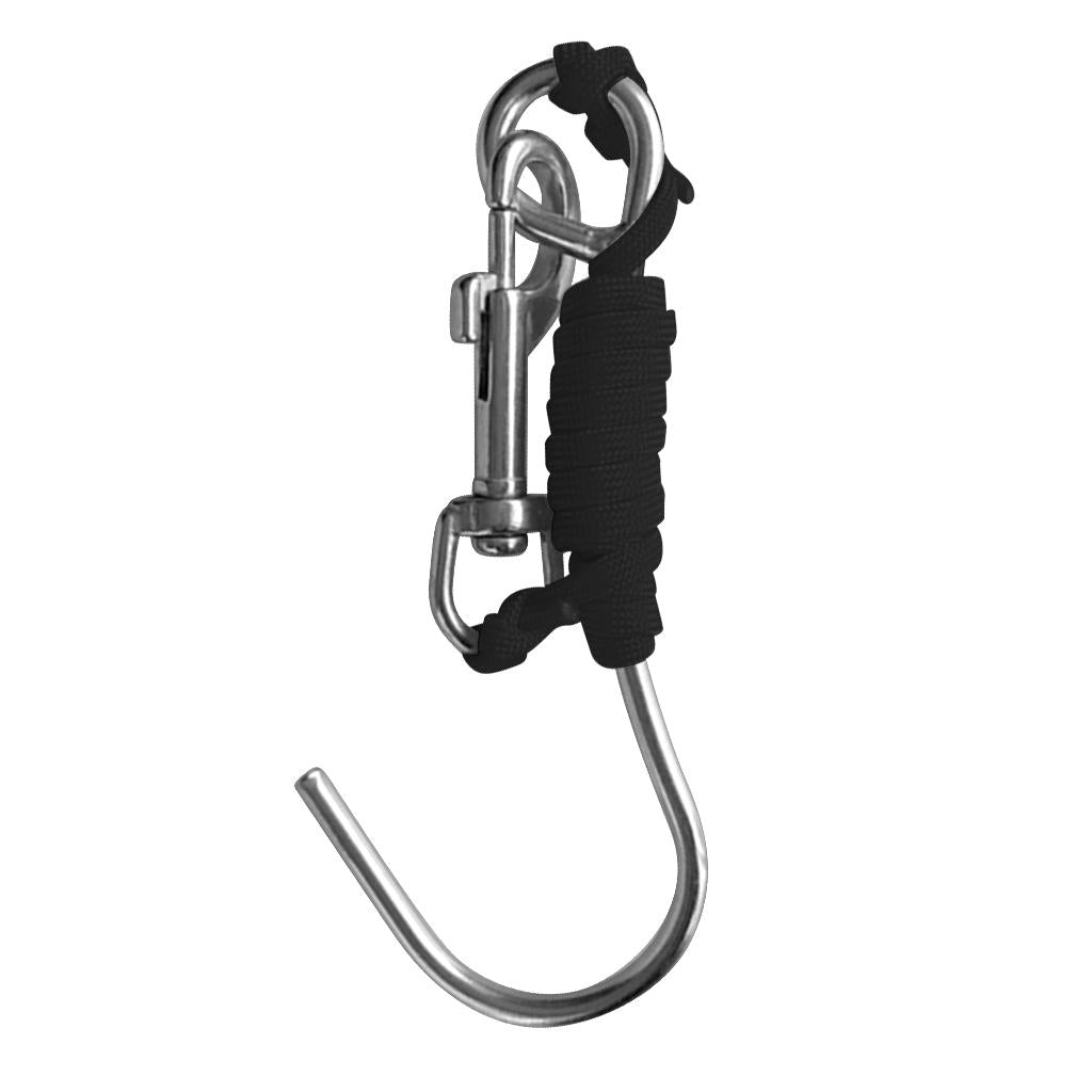 Scuba Diving Reef Drift Hook with 47" Line & Stainless Steel Clip Black