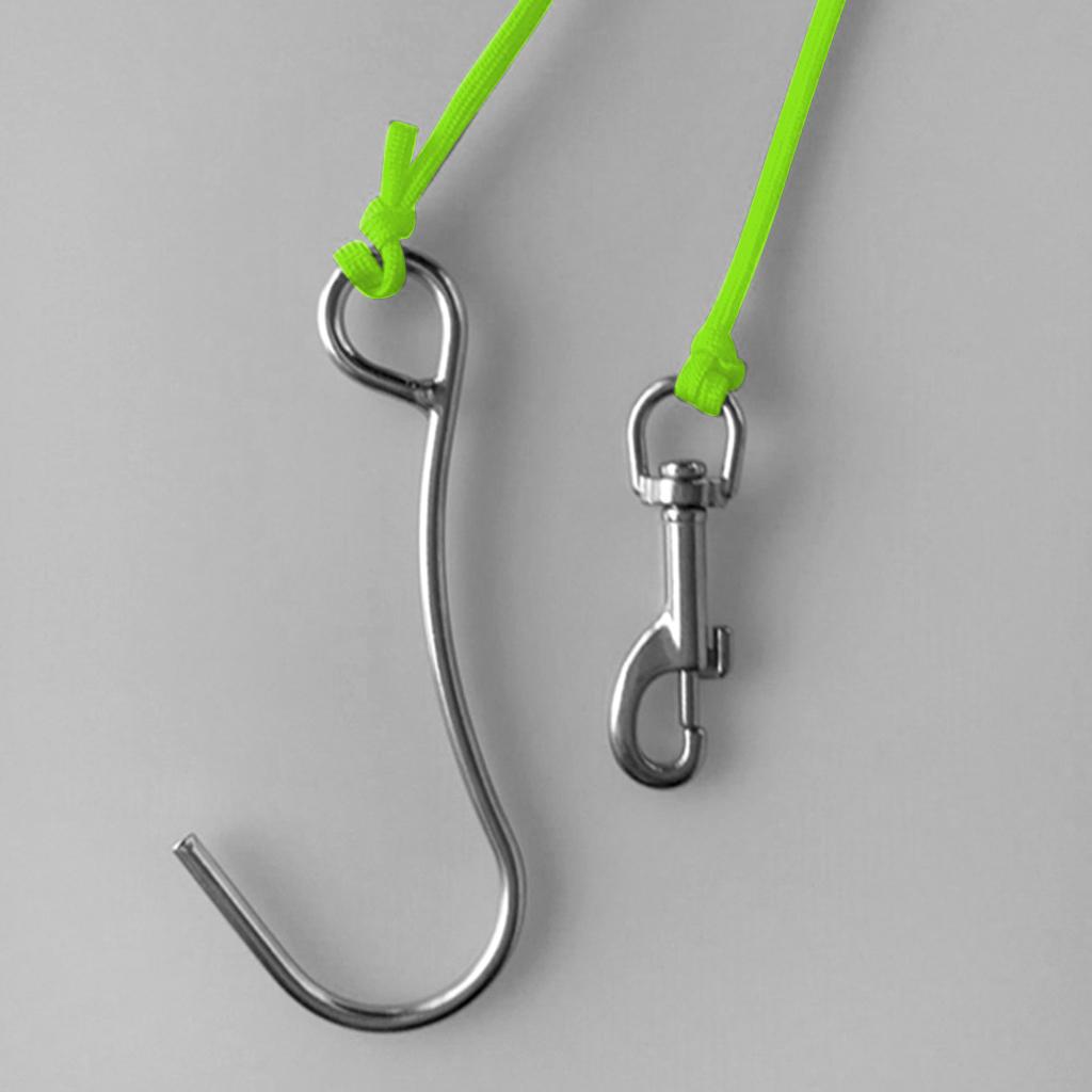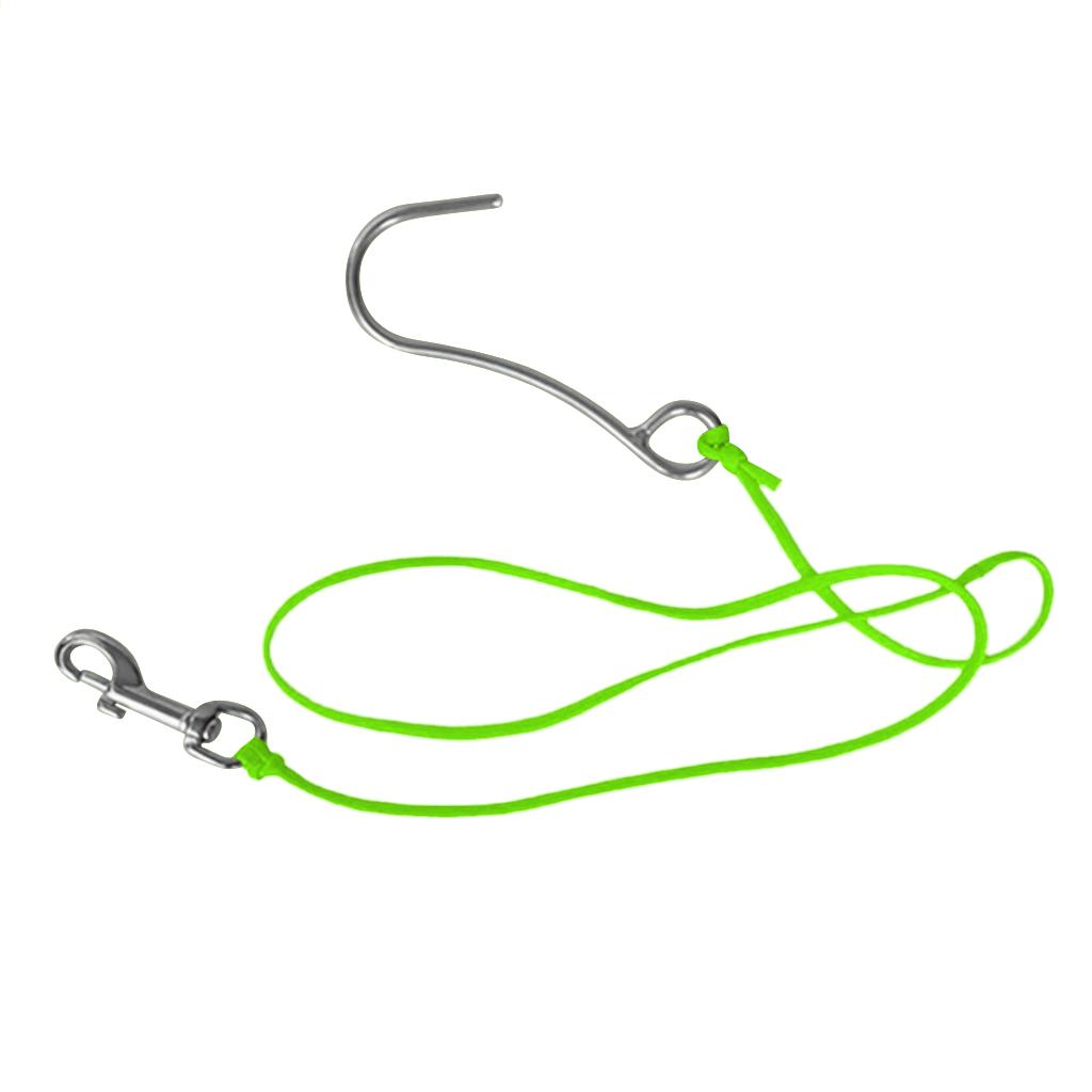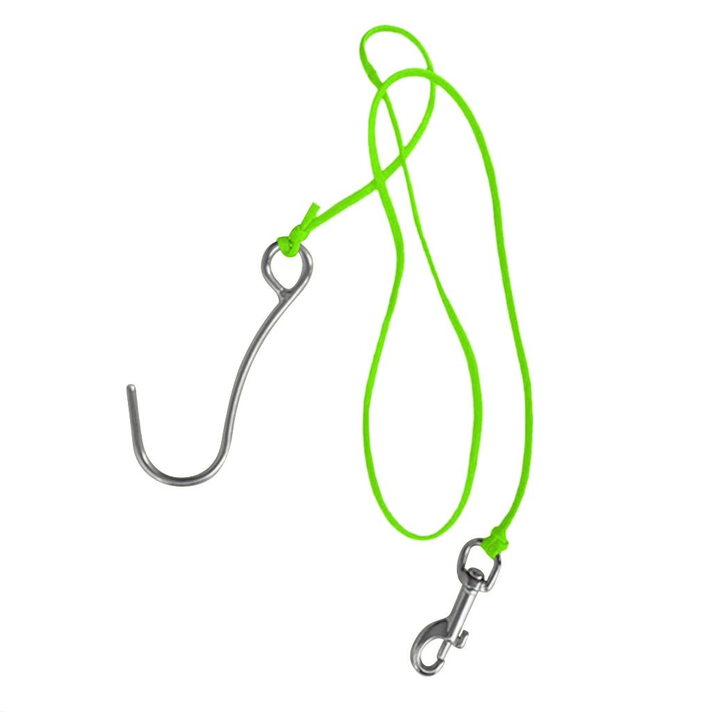 Scuba Diving Reef Drift Hook with 47" Line & Stainless Steel Clip Fluo Green