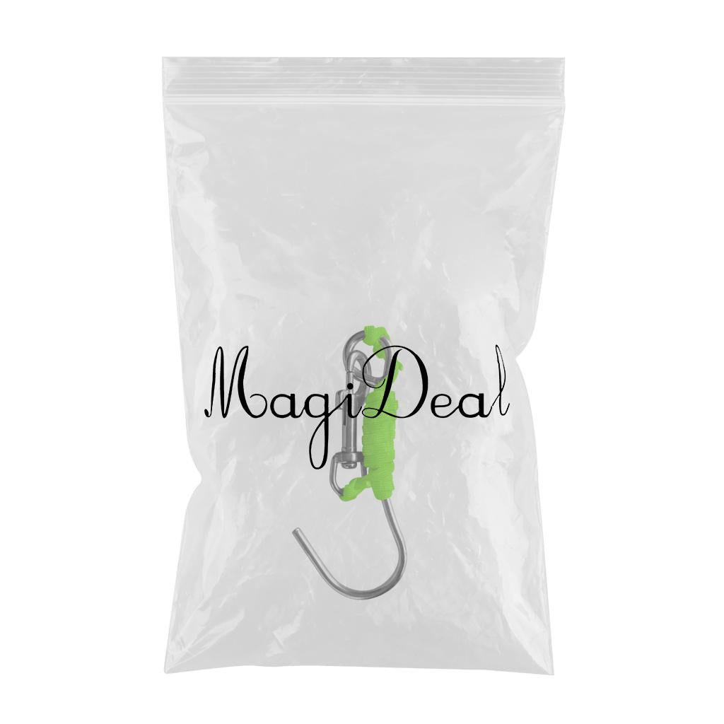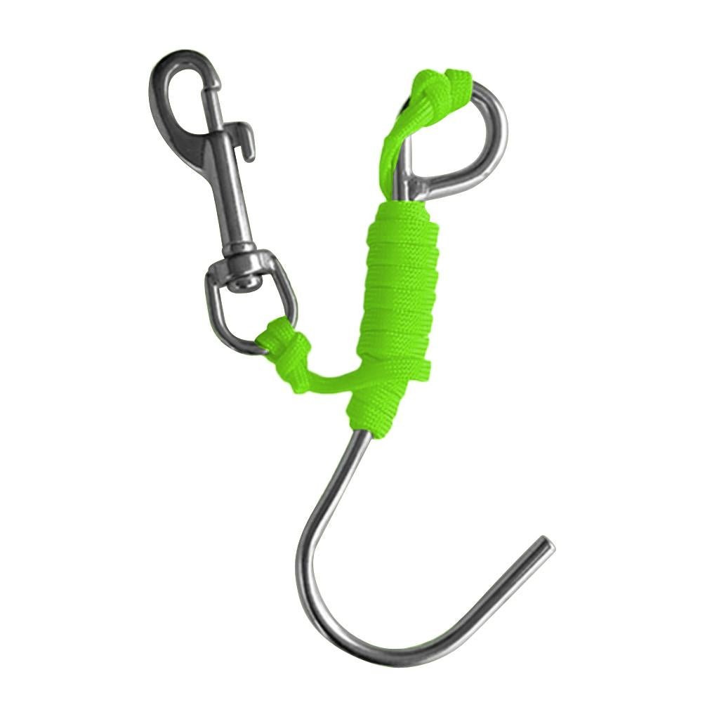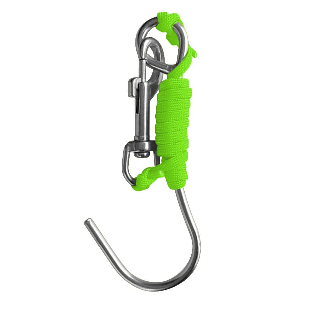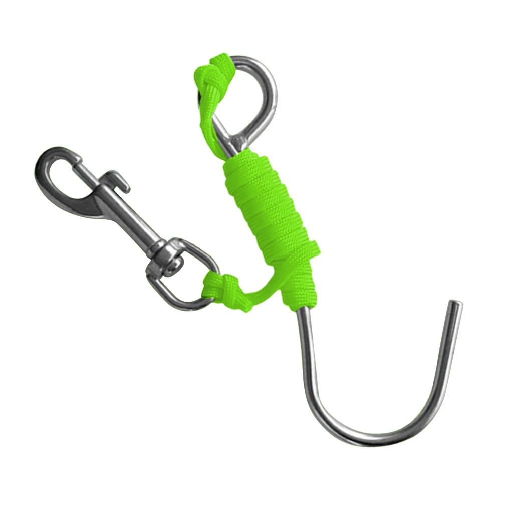 Scuba Diving Reef Drift Hook with 47" Line & Stainless Steel Clip Fluo Green