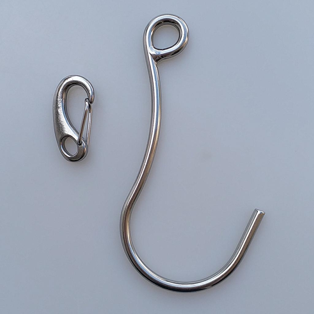 Premium 316 stainless steel scuba diving drift reef single hook with spring snap clip, high strength, corrosion-resistant & durable