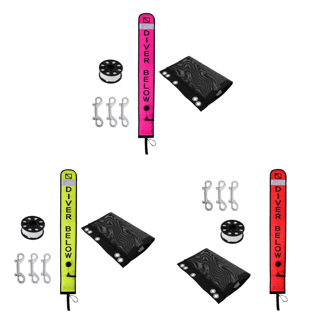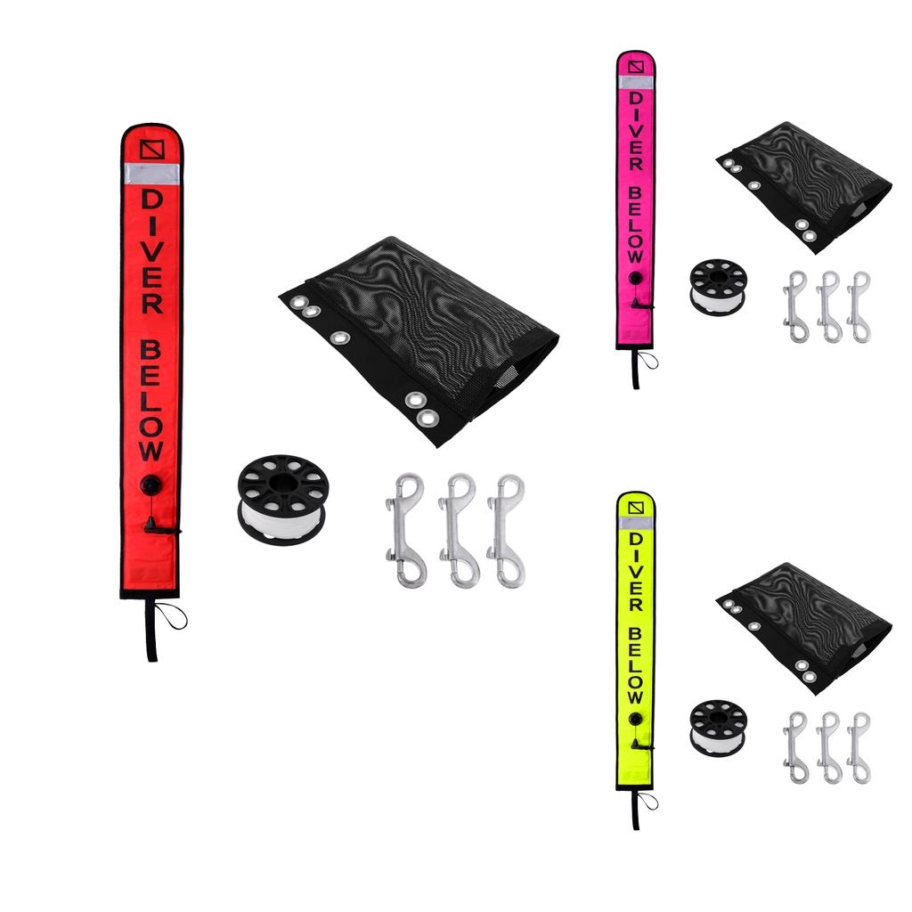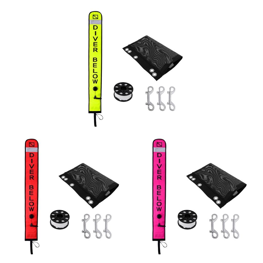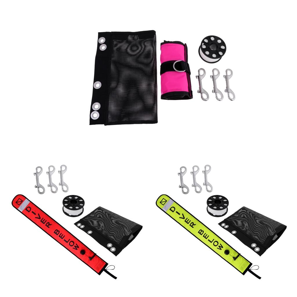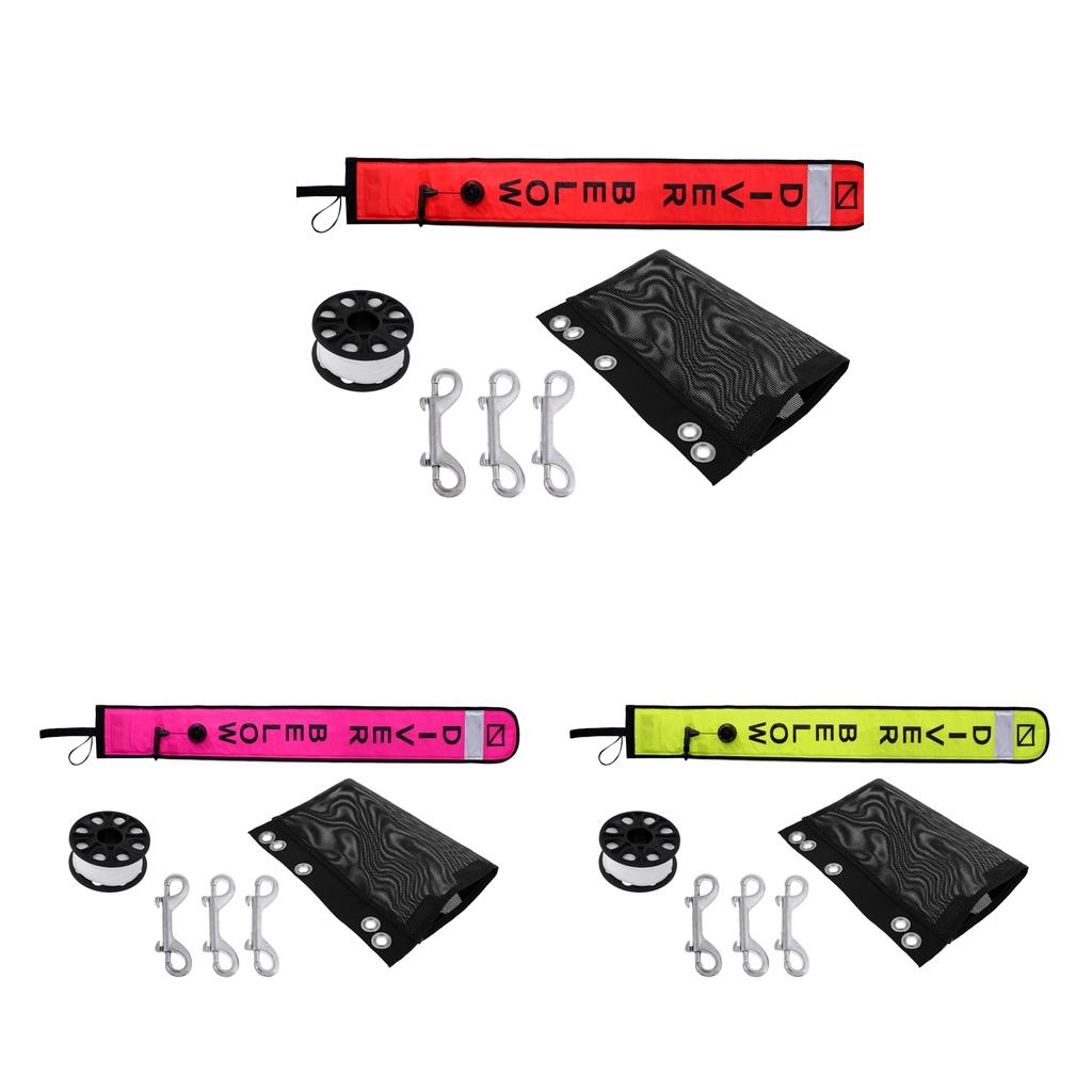 Scuba Diving Surface Marker Buoy Dive Spool Safety Gear Kit Set Fluo Red