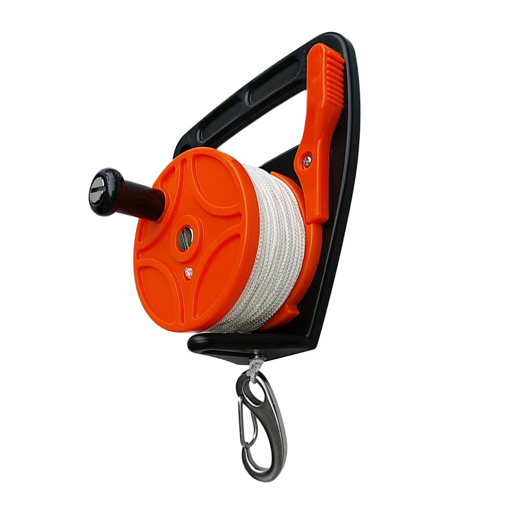 Multi purpose scuba diving wreck SMB dive reel with 46m/150ft strong white nylon line and 316 stainless steel snap hook