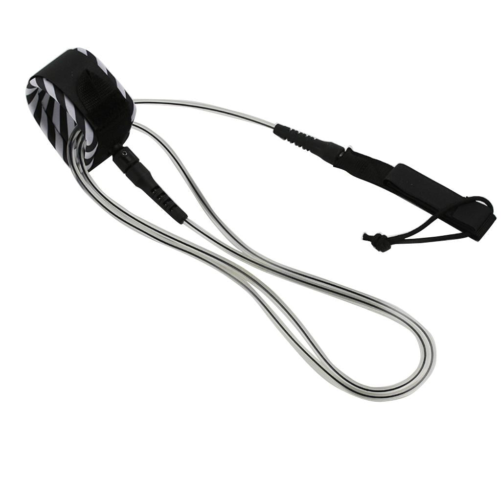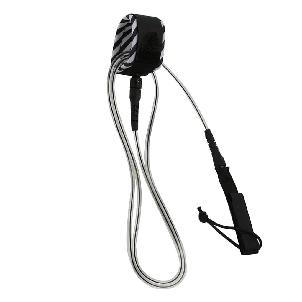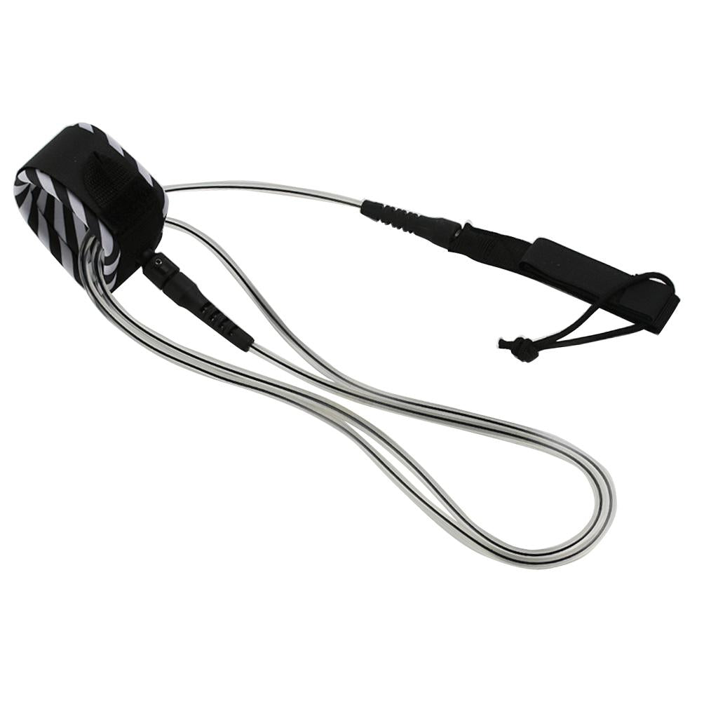 Surfboard Leash Leg Rope Double Stainless Steel Swivels Clear Black 10 ft