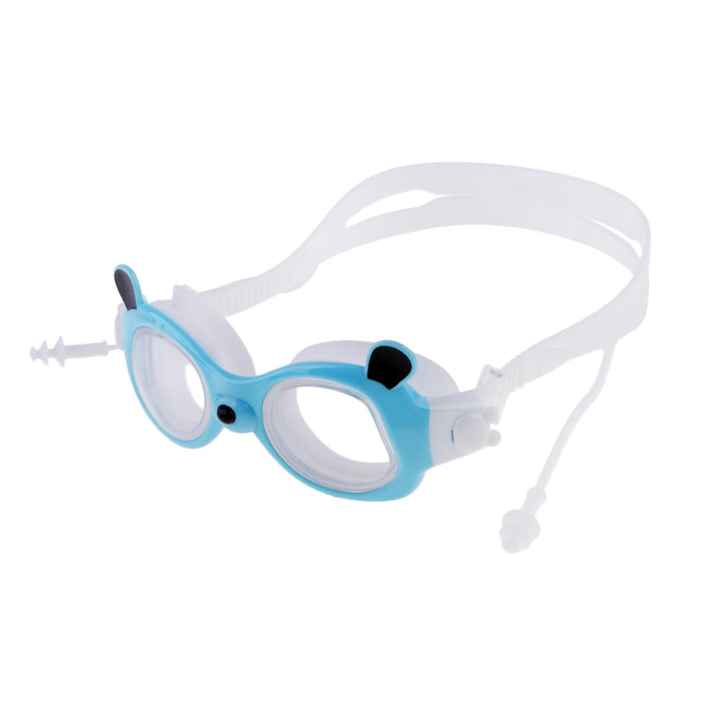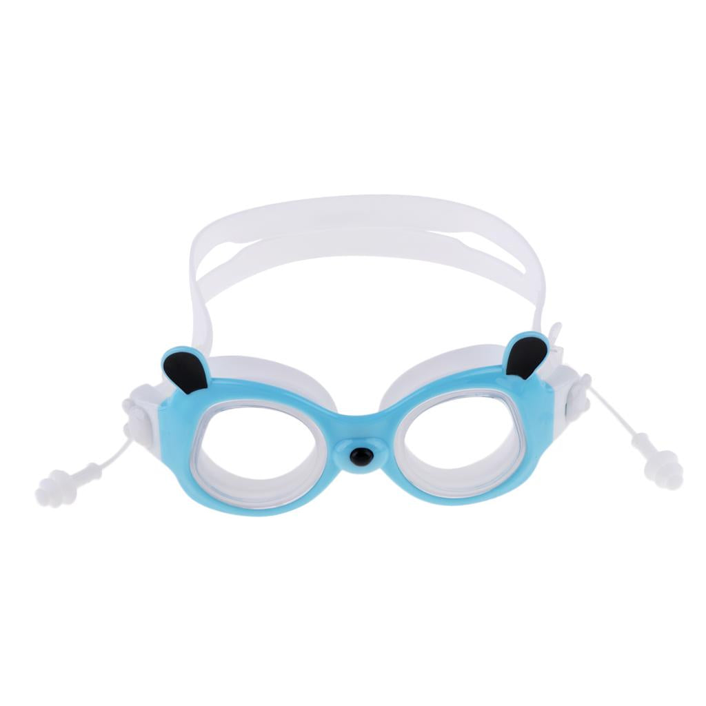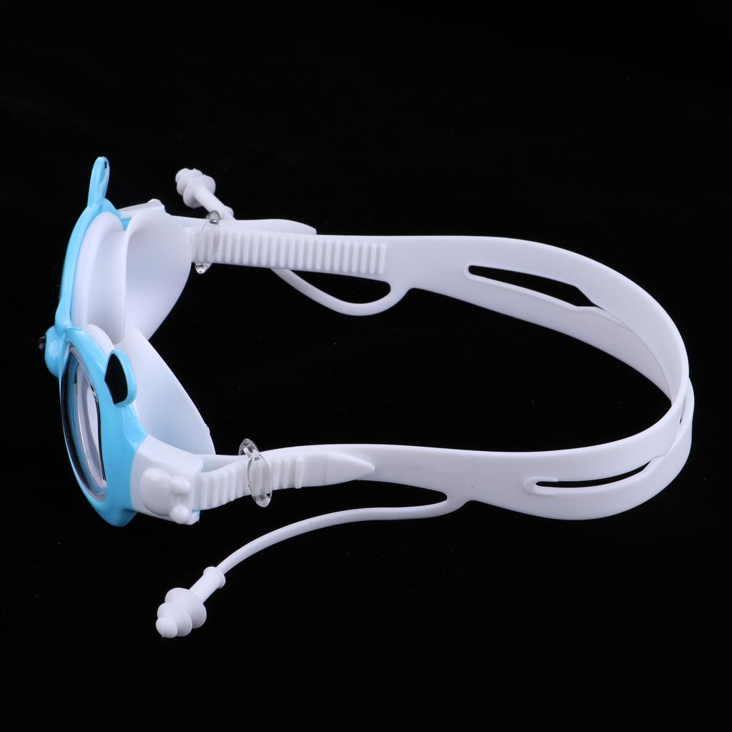 Silicone head strap is adjustable to fit most kids; the connected earplugs prevent water from leaking into the ear canals