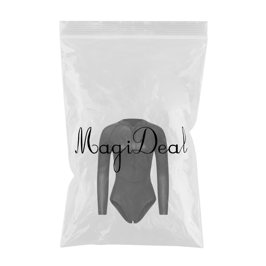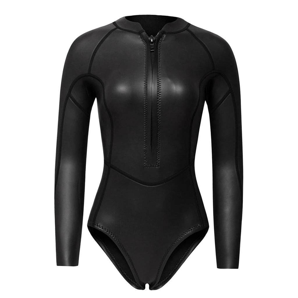 Women Neoprene Sleeve Wetsuit Front Zip Diving Bikini Suit Black Glossy S