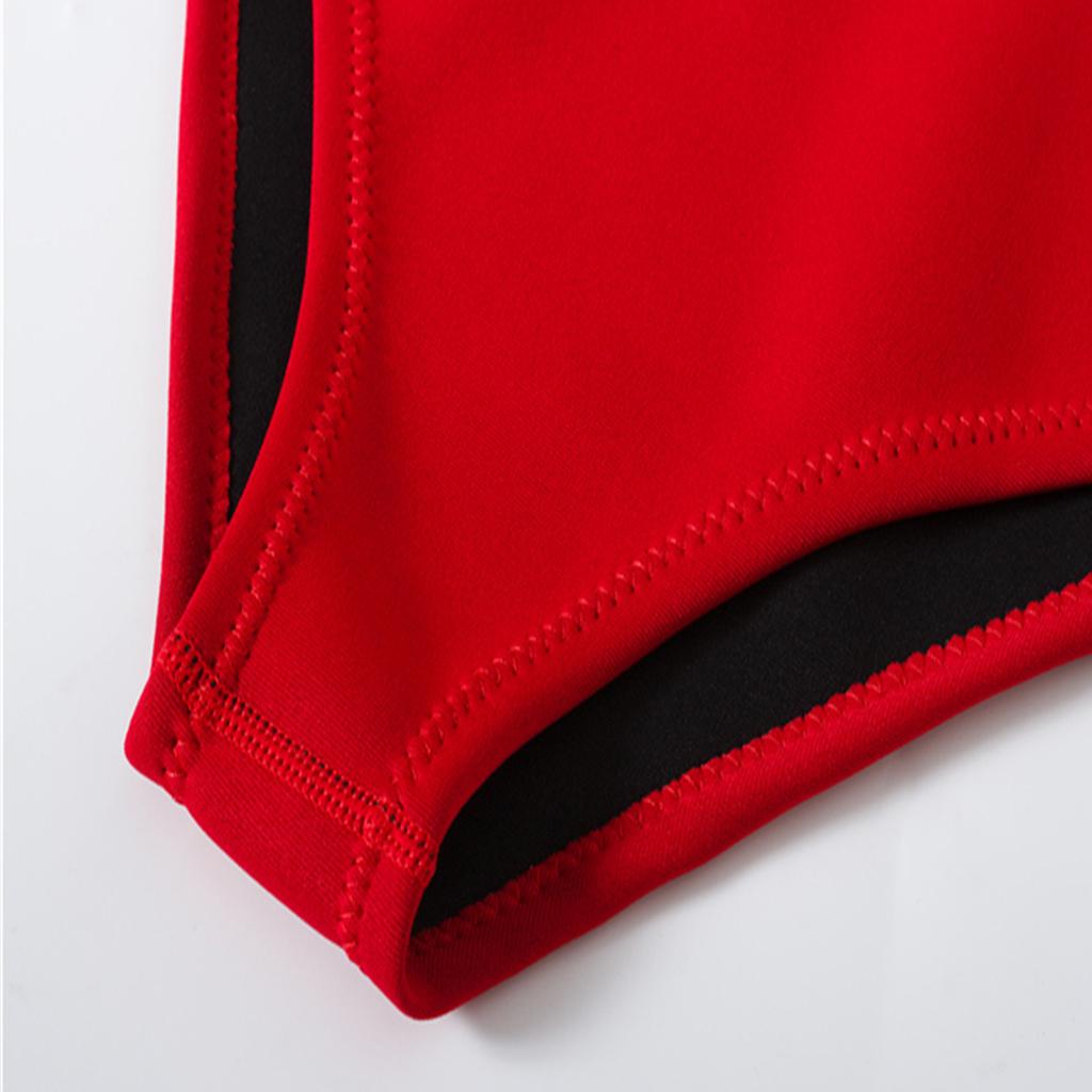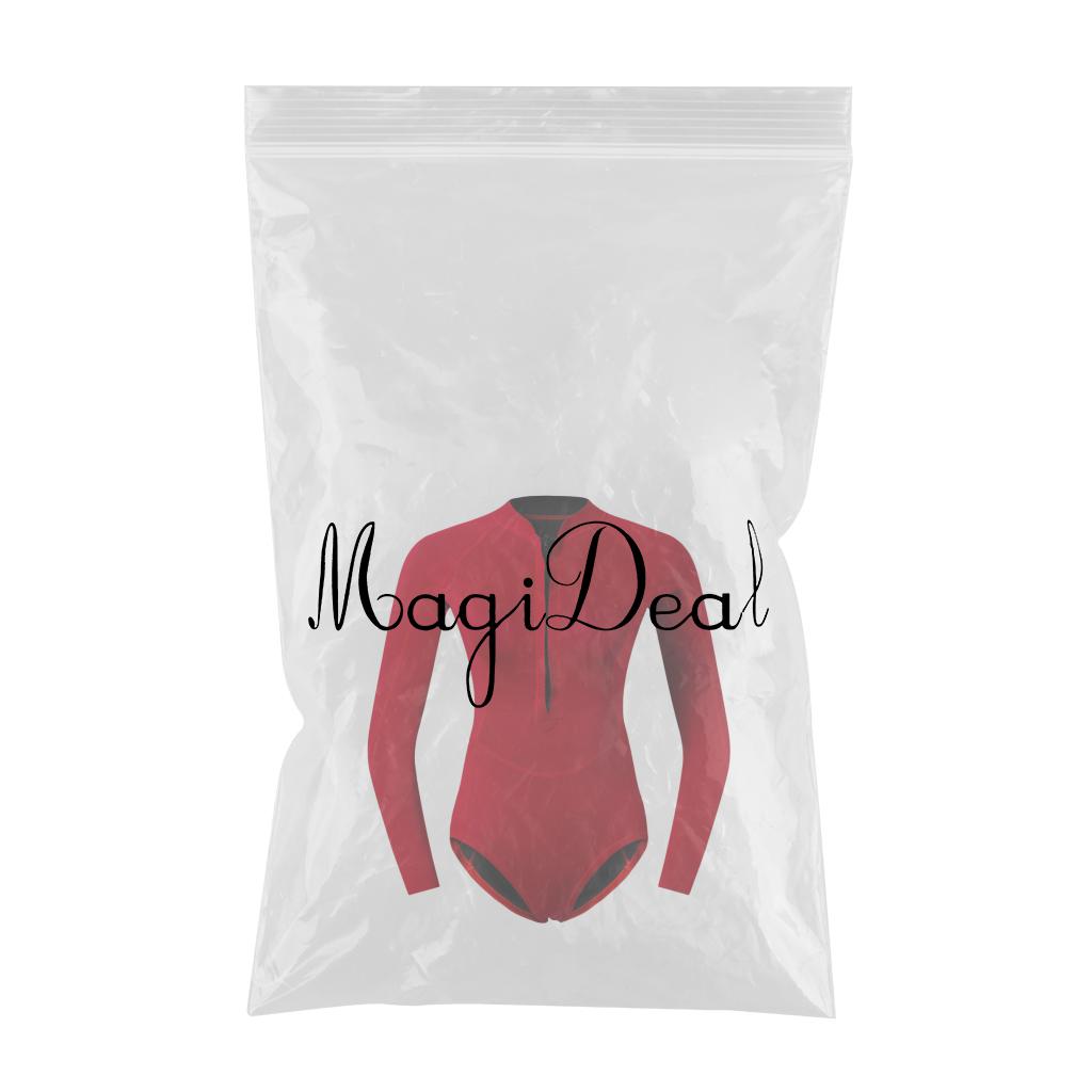 Women Neoprene Sleeve Wetsuit Front Zip Diving Bikini Suit Red L
