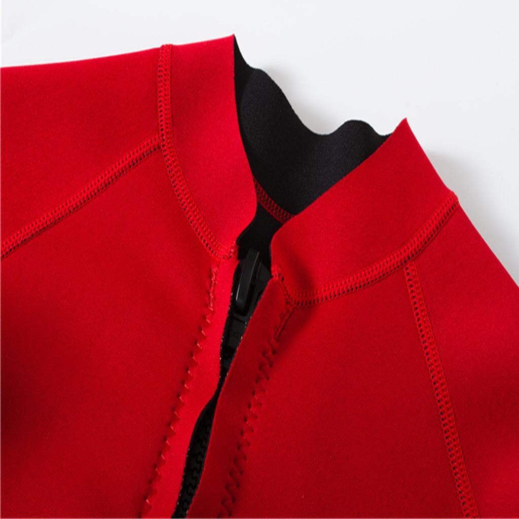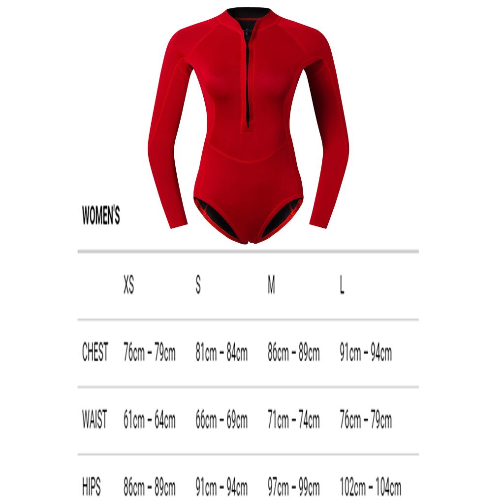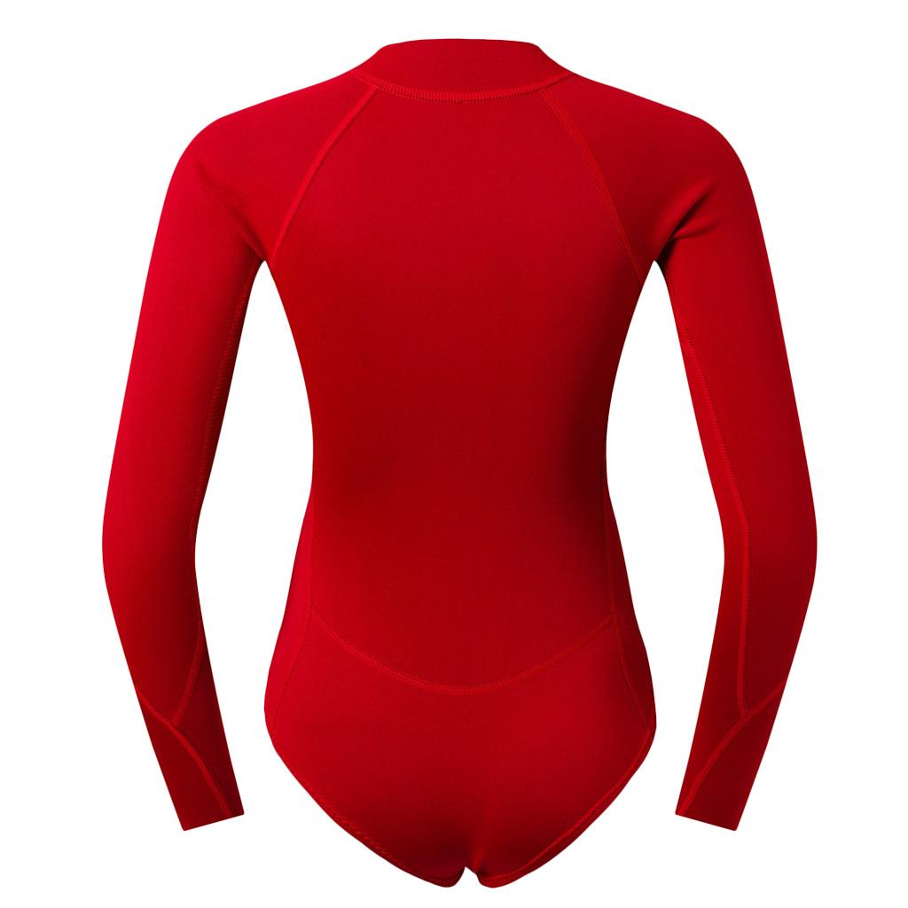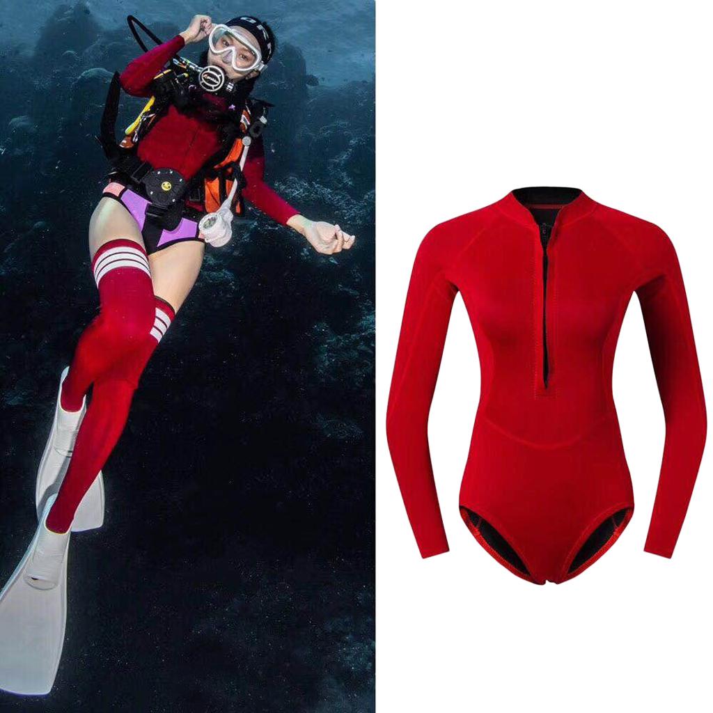 Women Neoprene Sleeve Wetsuit Front Zip Diving Bikini Suit Red S
