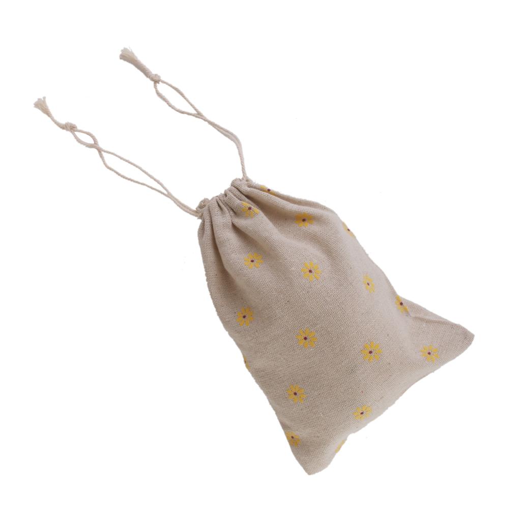 10 Linen Jute Sack Jewelry Drawstring Gift Bags Wedding Favor - Yellow Daisy
