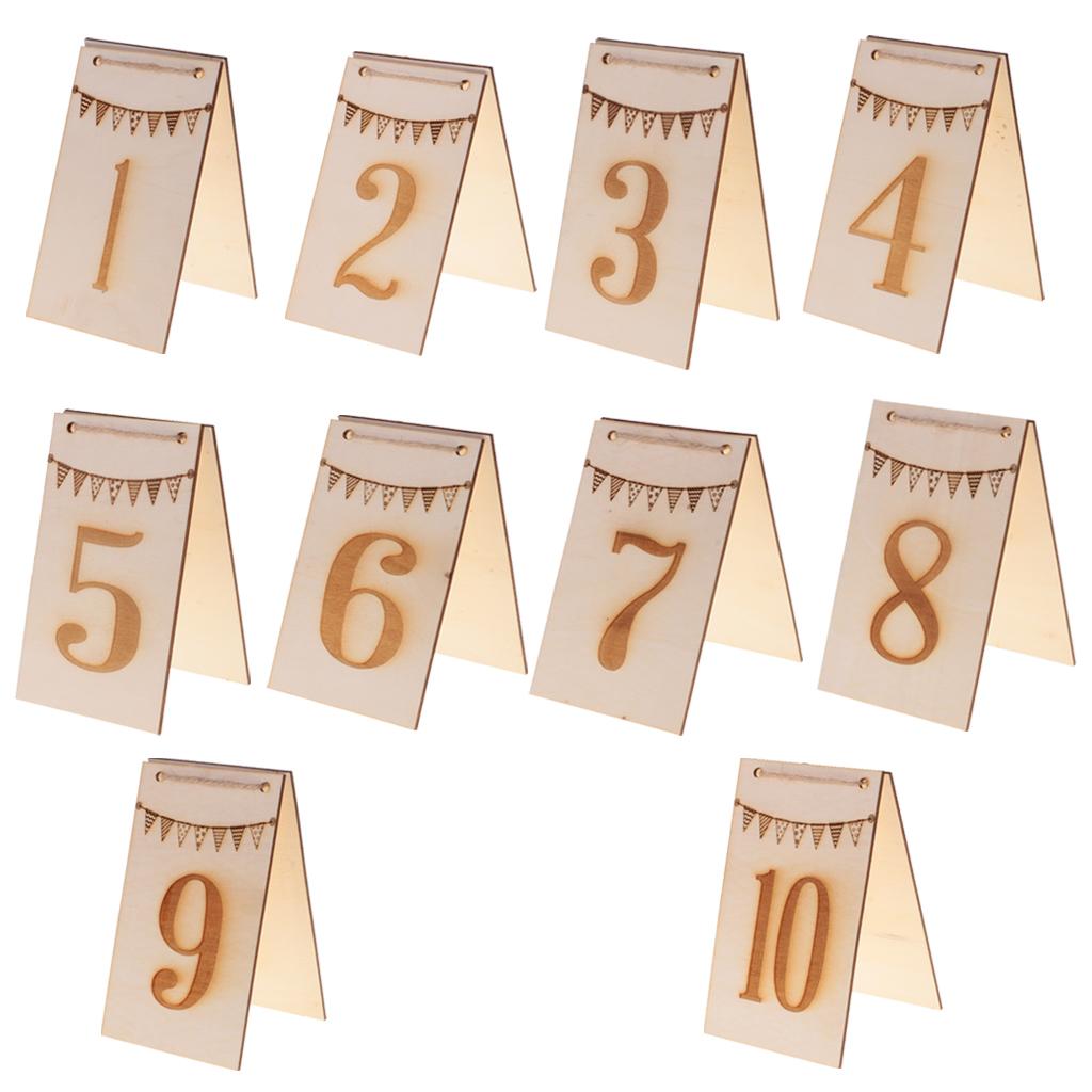 Vintage Wooden pennant engraved table number for rustic wedding party