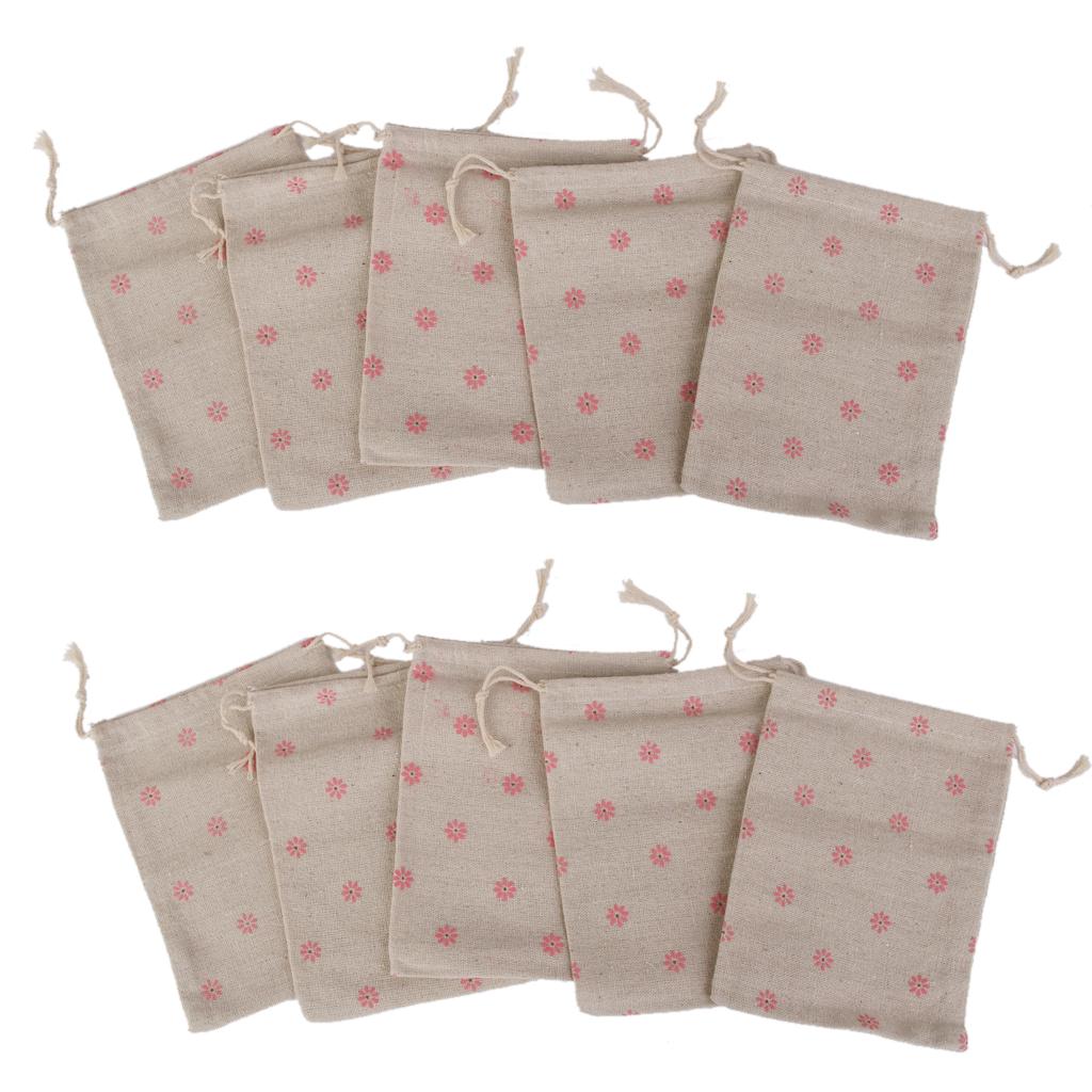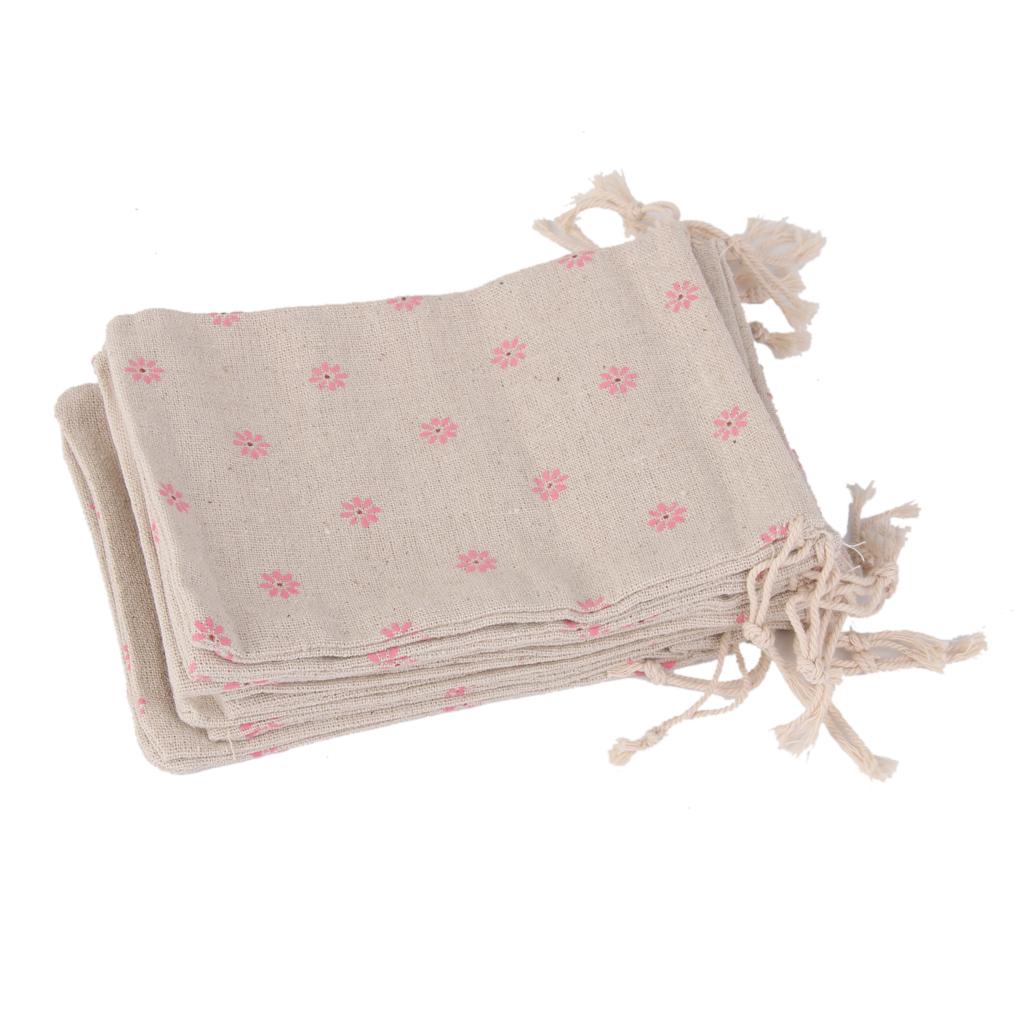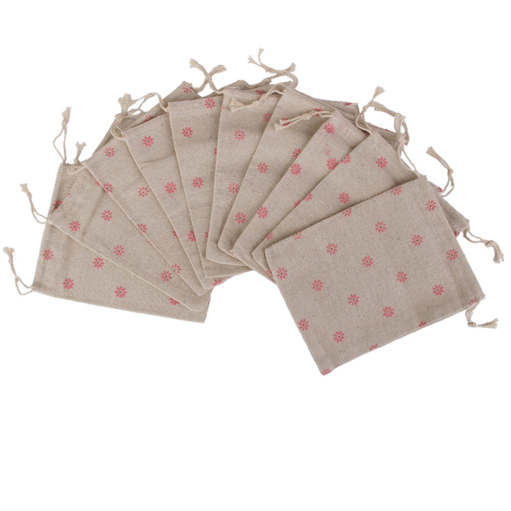 10 x Linen Jute Sack Jewelry Daisy Pouch Drawstring Gift Bags Wedding Favour