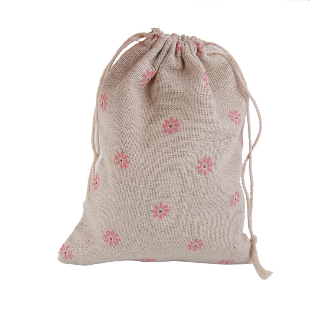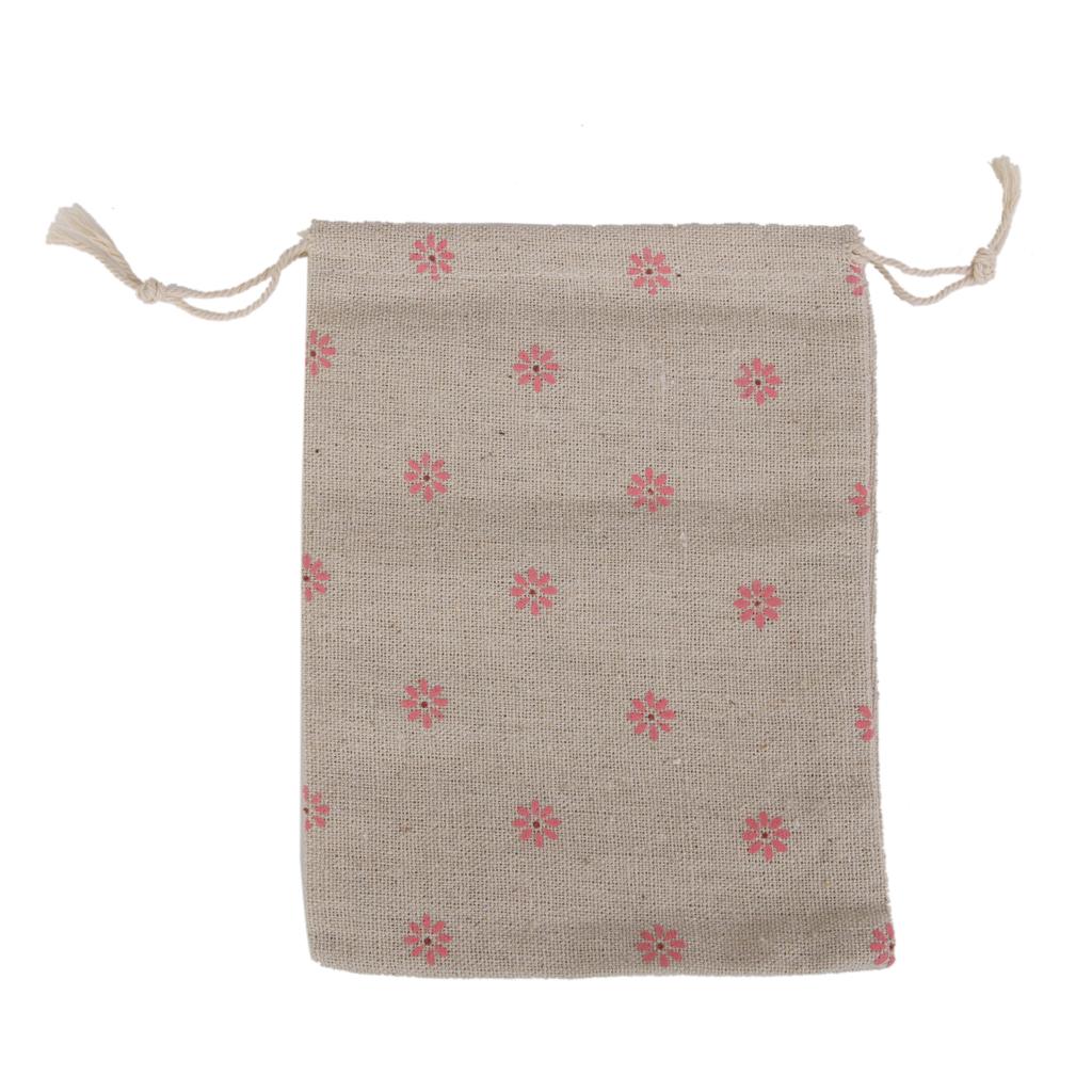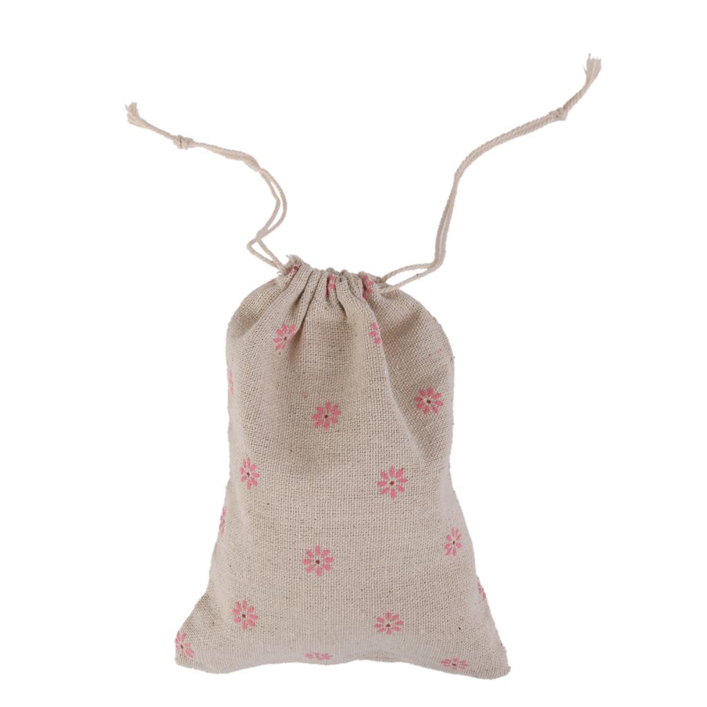 10 x Linen Jute Sack Jewelry Daisy Pouch Drawstring Gift Bags Wedding Favour