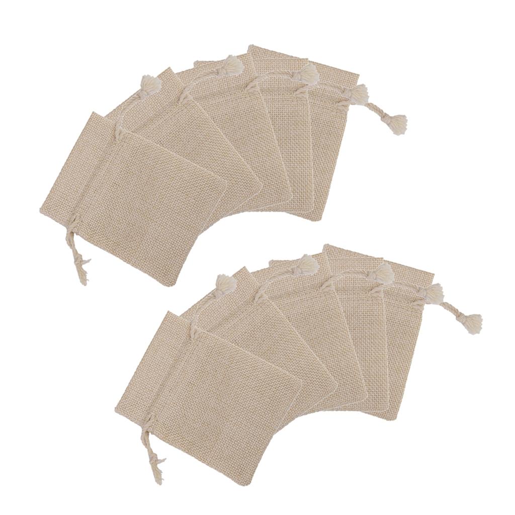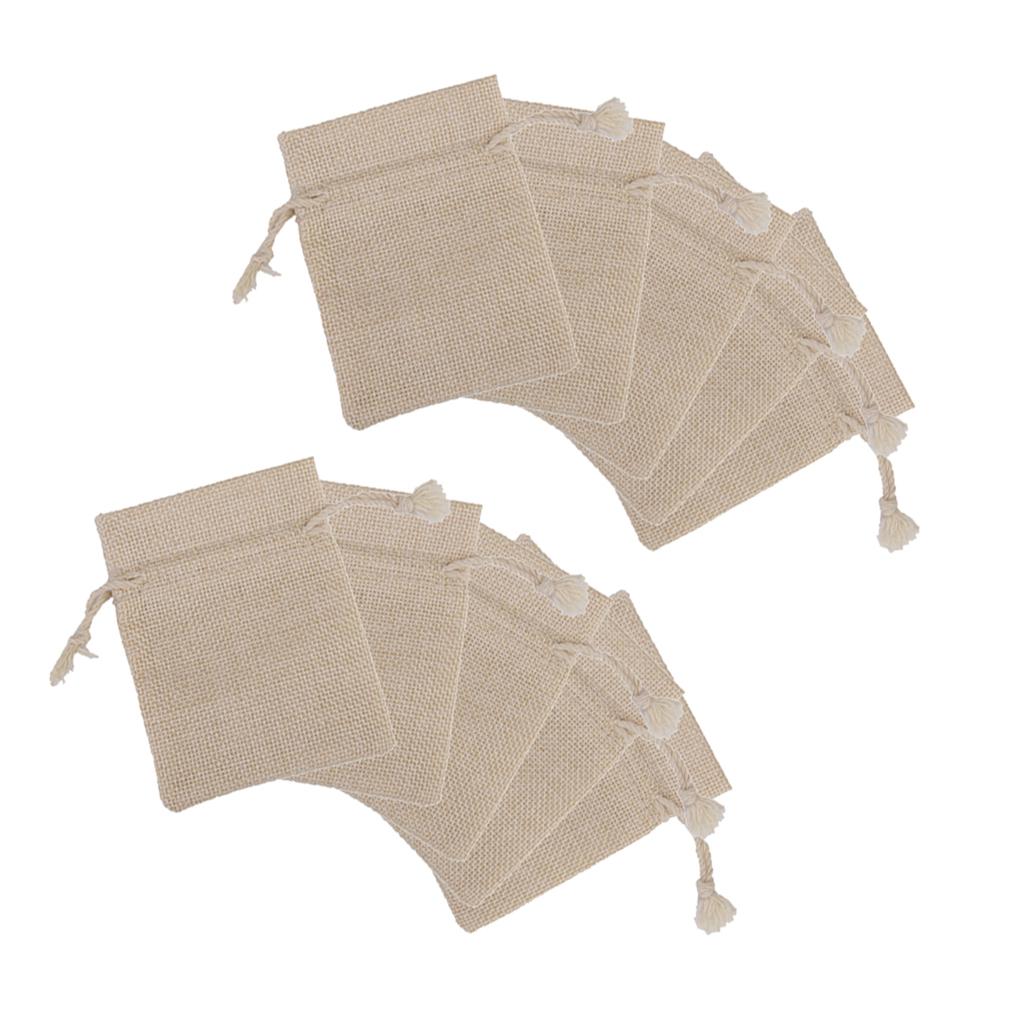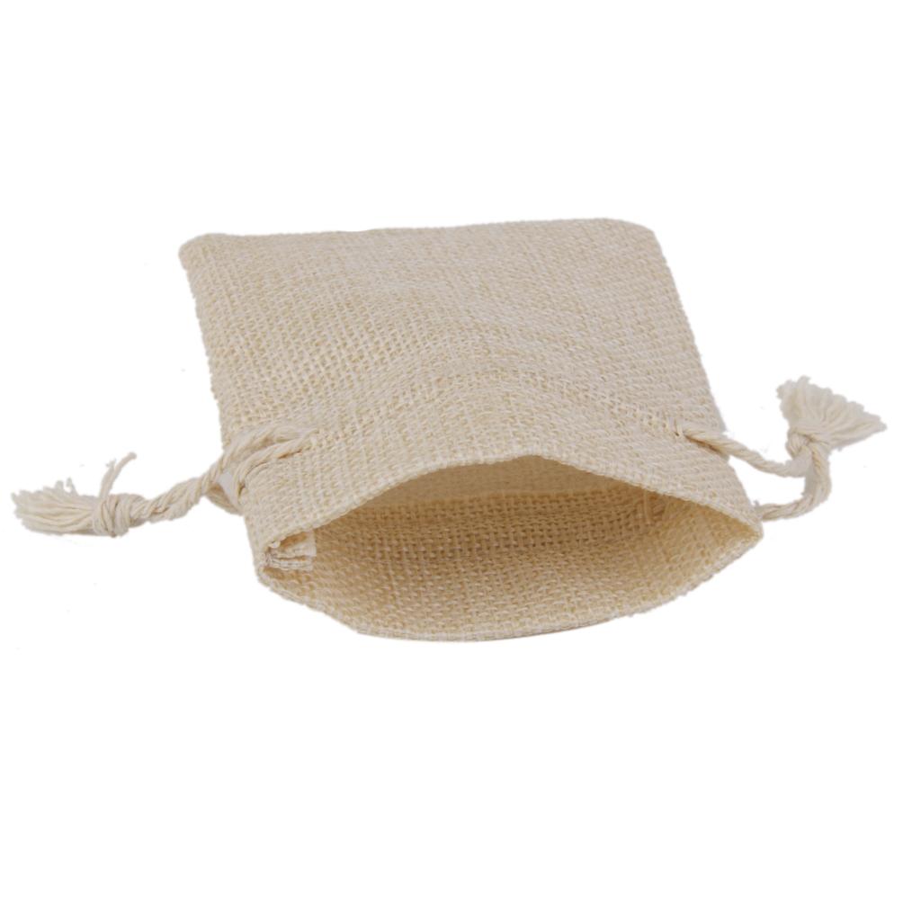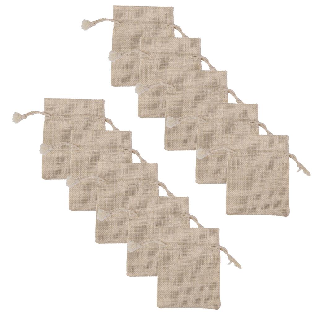 10 x Linen Jute Sack Jewelry Pouch Drawstring Gift Bags Favor Wedding Khaki