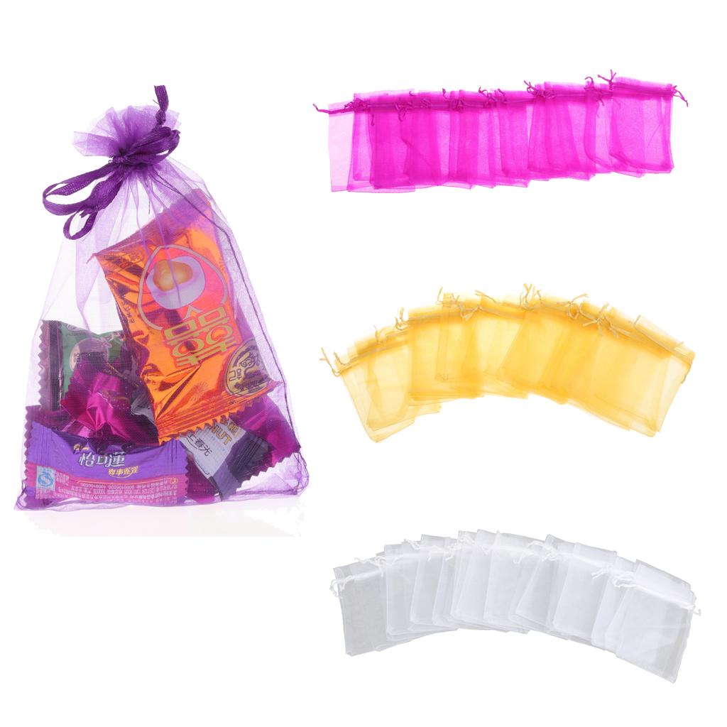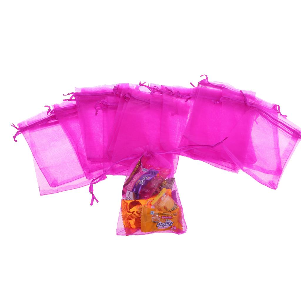 100pcs Sheer Candy Gift Drawstring Mesh Bags Wedding Party Favors-Rose