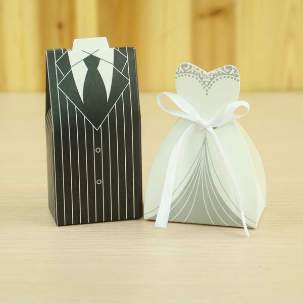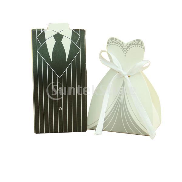 100pcs Tuxedo Groom Bridal Ribbon Candy Boxes Box Wedding Party Favour Gift