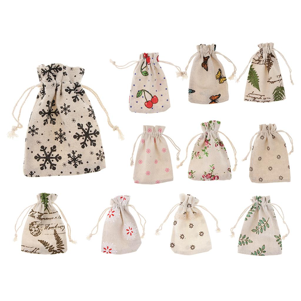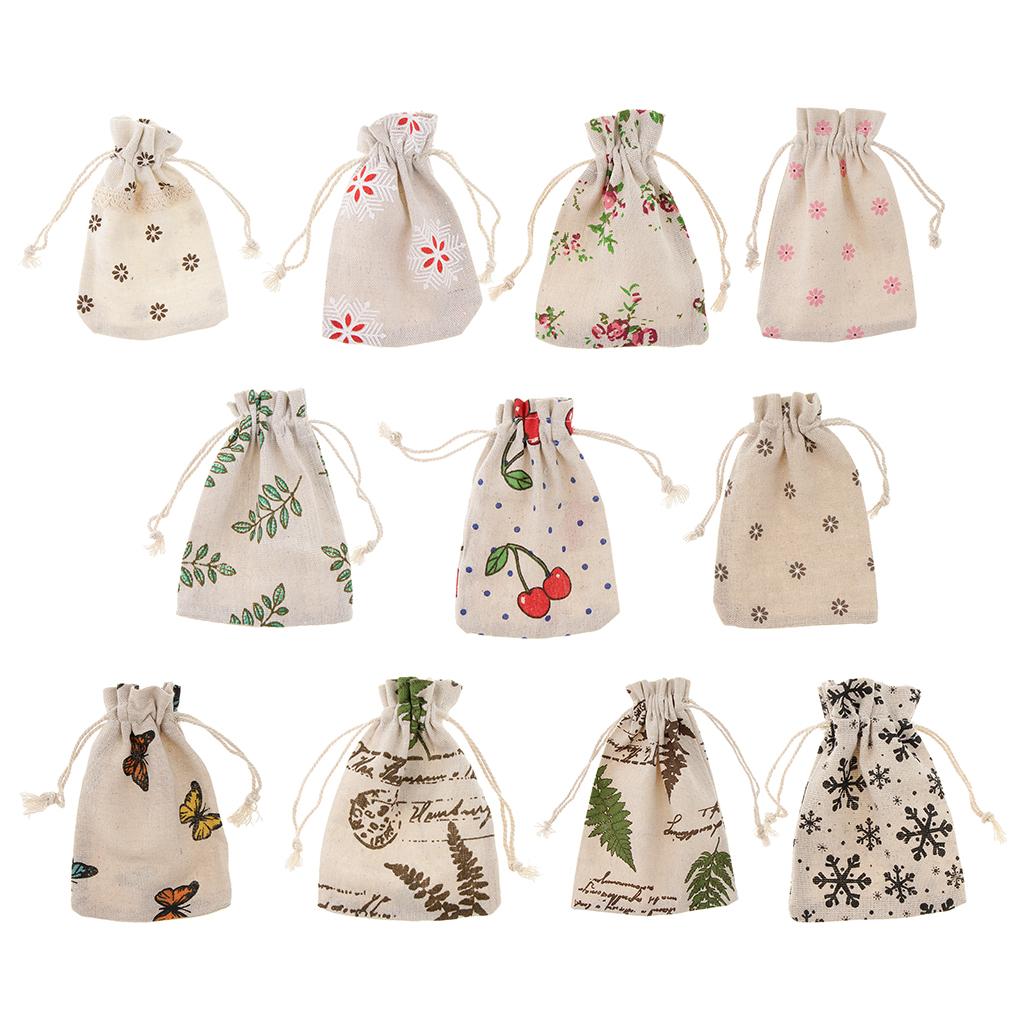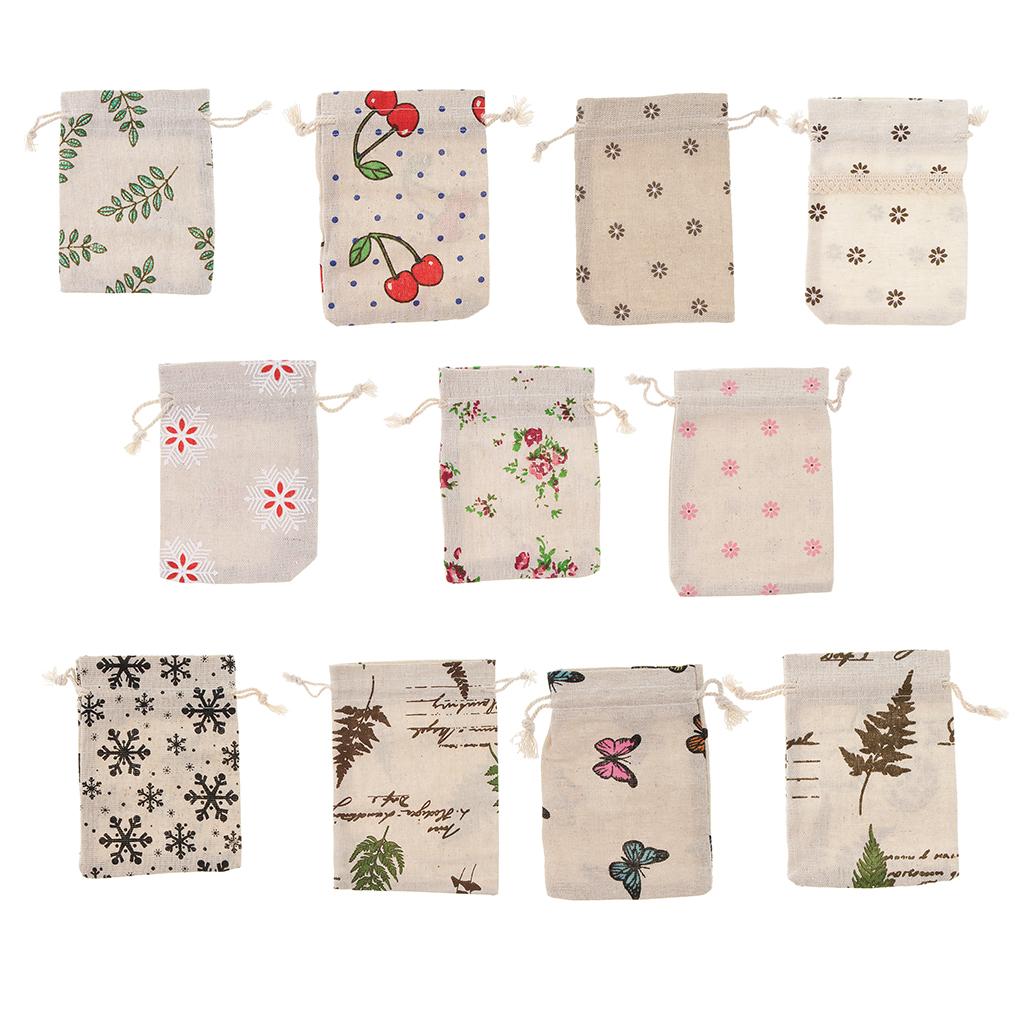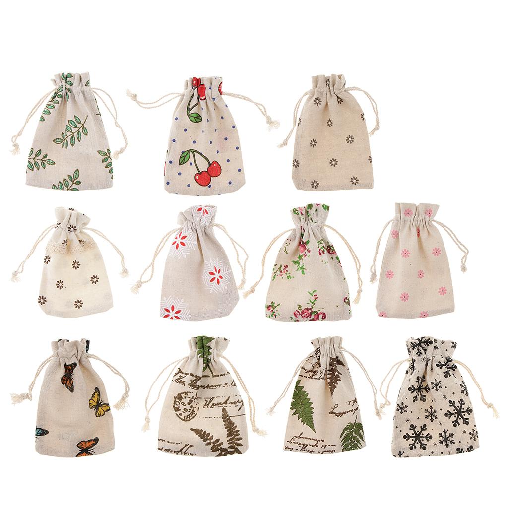 Rustic cotton linen drawstring pouch gift bags jewely bags