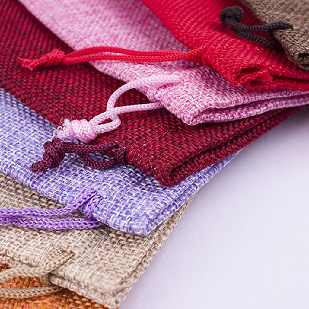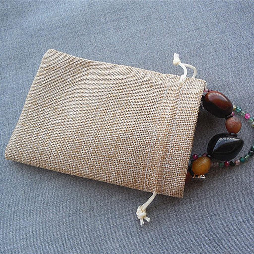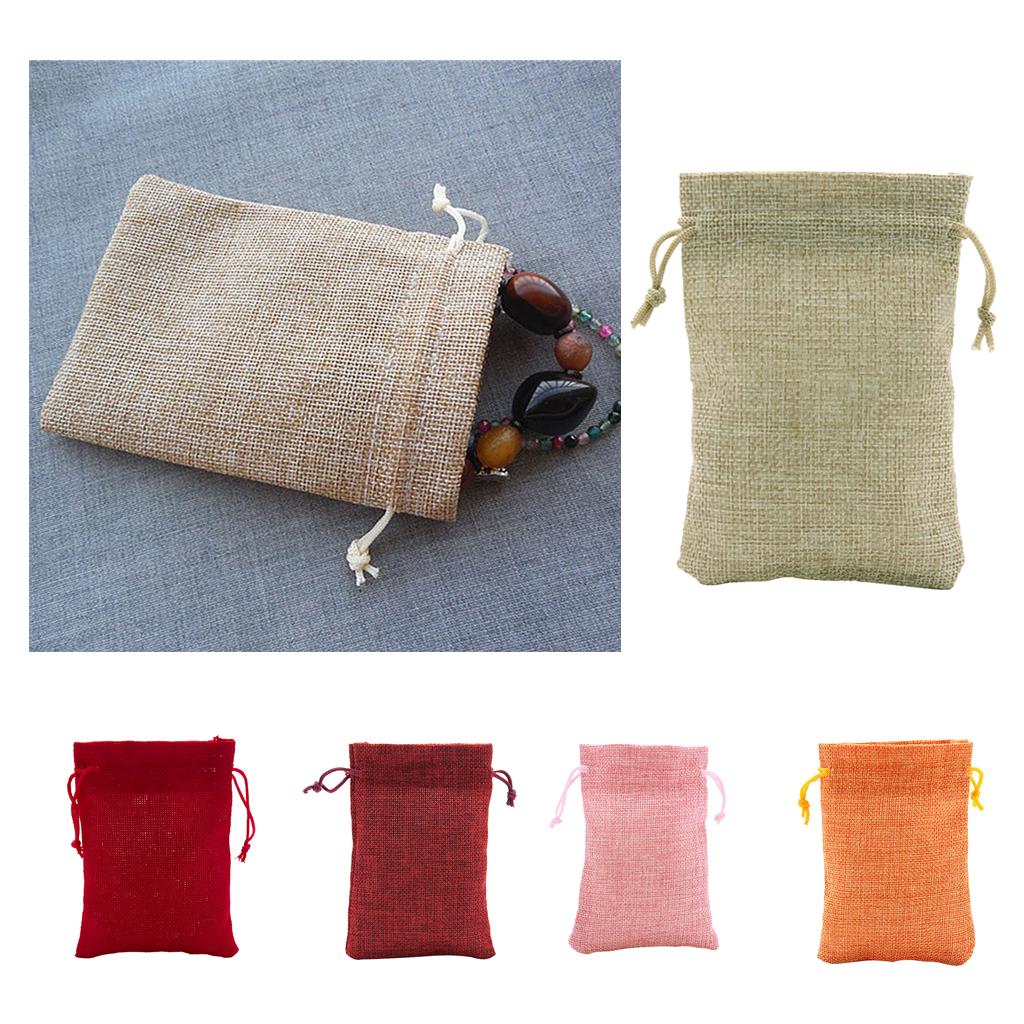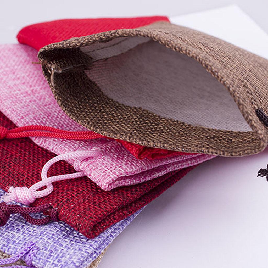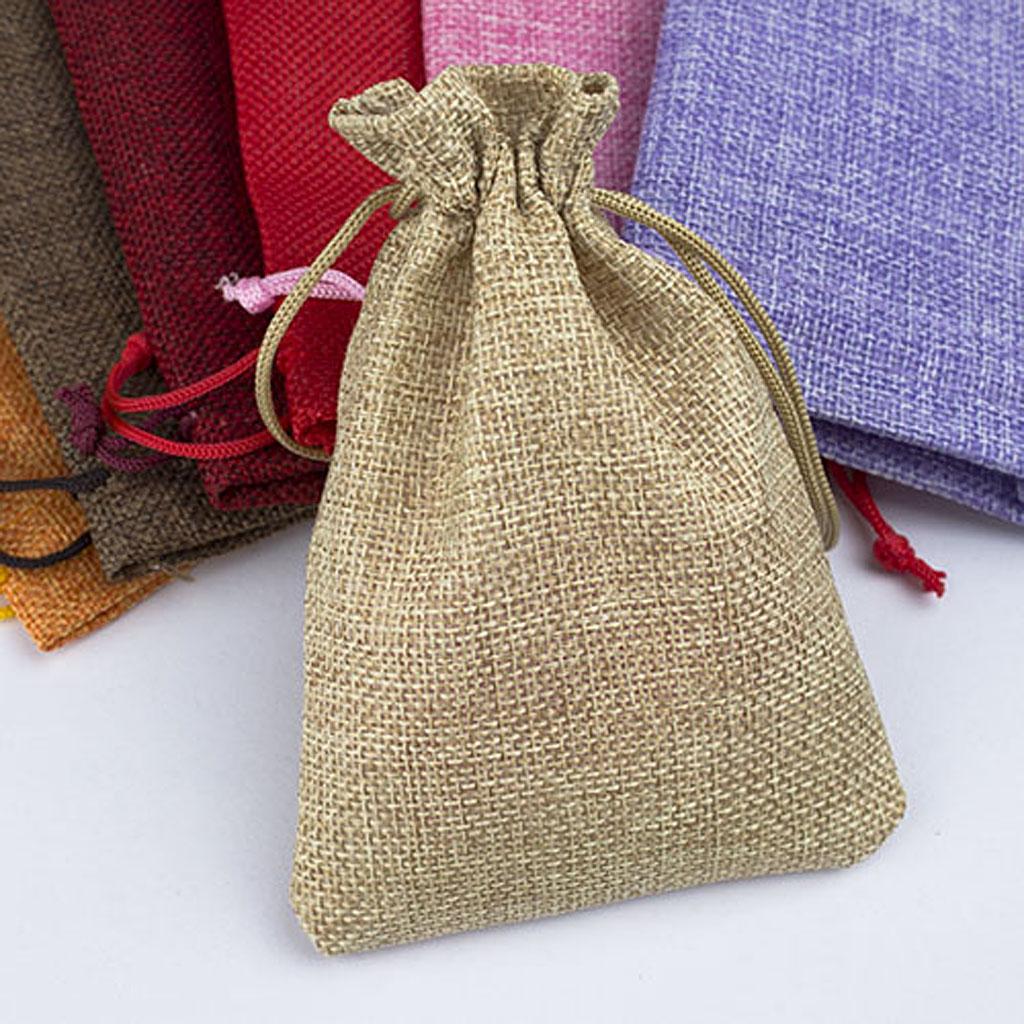 10pcs Drawstring Burlap Bags Wedding Gift Bags Jewelry Bags 9*13cm Beige