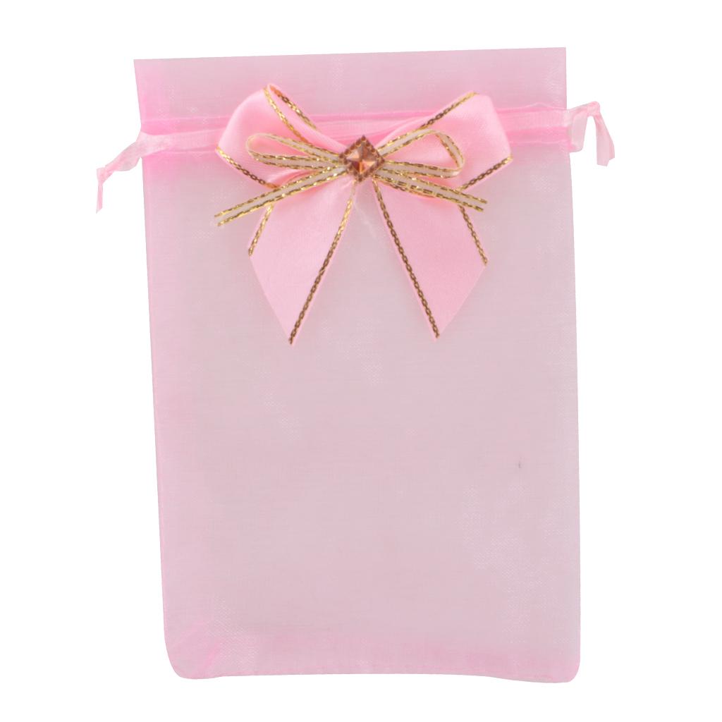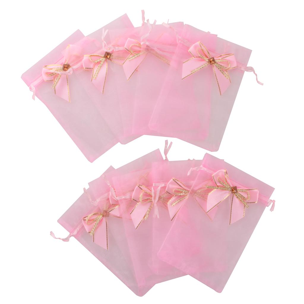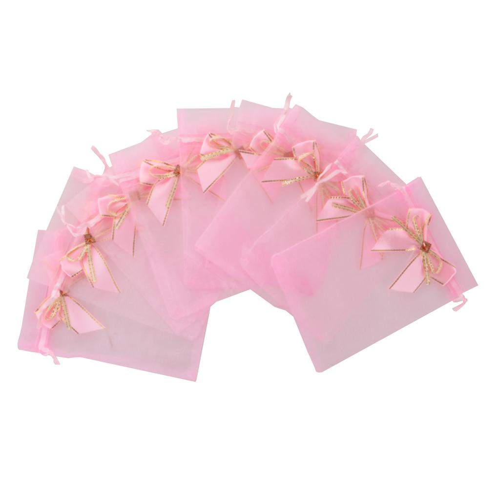 10pcs Drawstring Organza Bowknot Gift Bags Wedding Favor 10 x 15cm Pink
