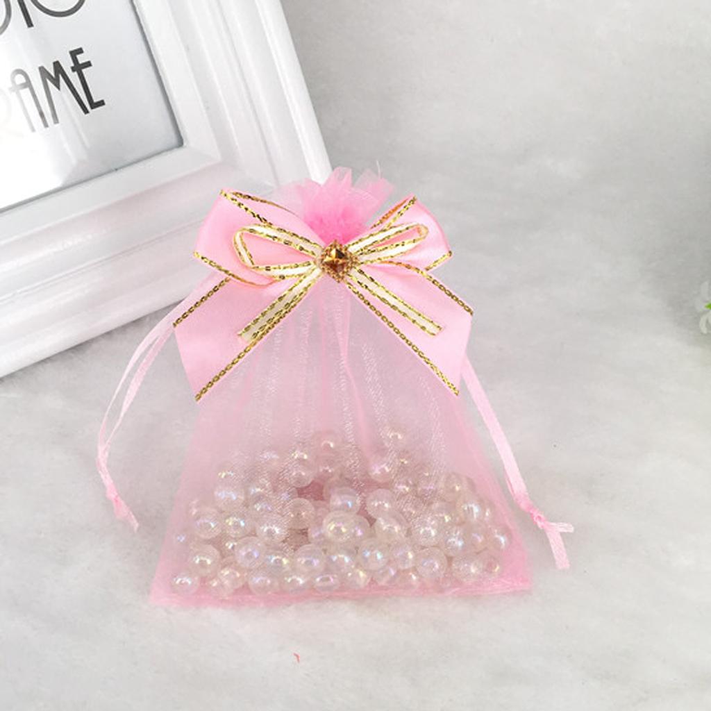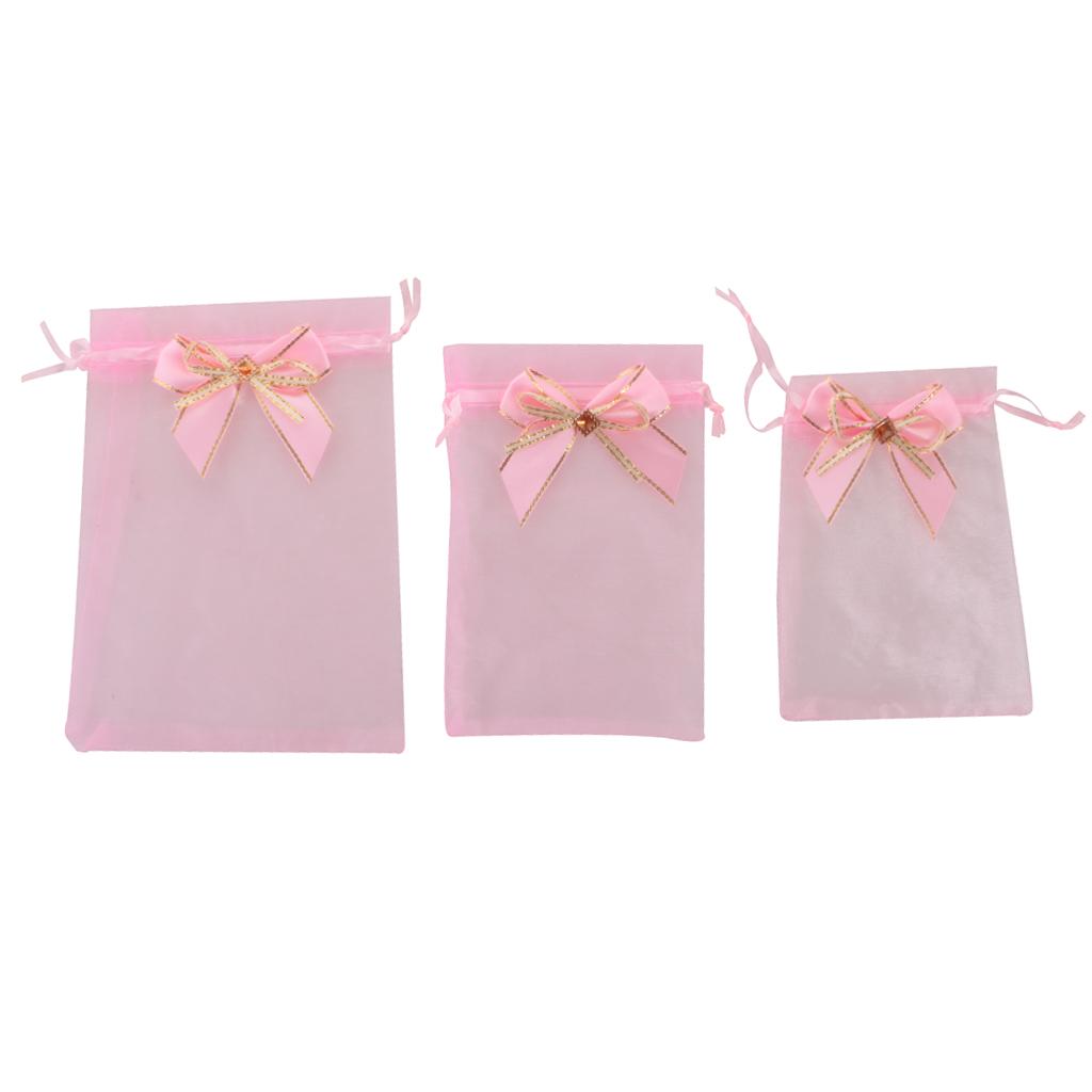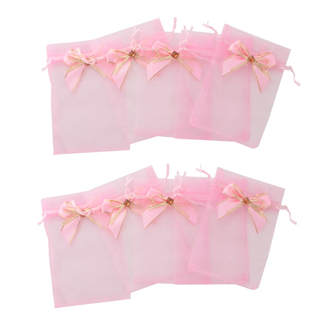 10pcs Drawstring Organza Bowknot Gift Bags Wedding Favor 10 x 15cm Pink