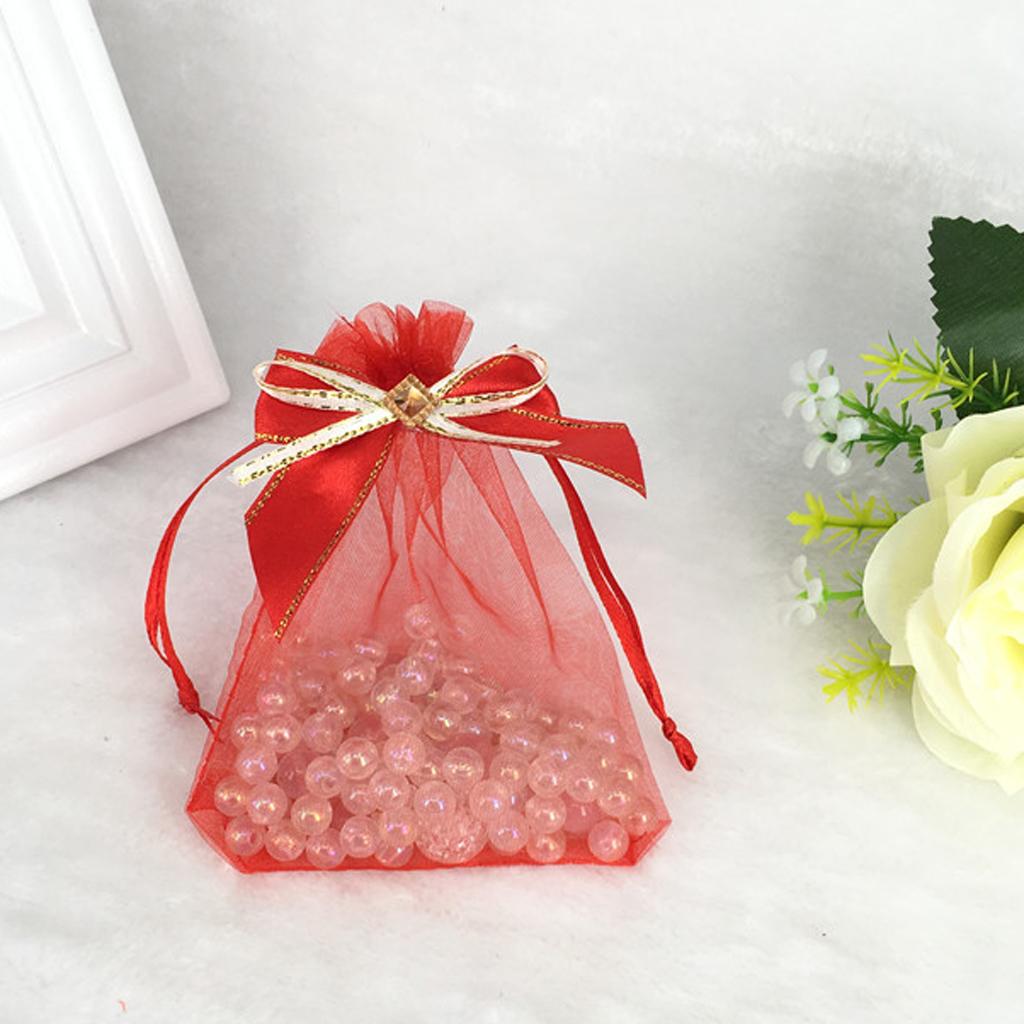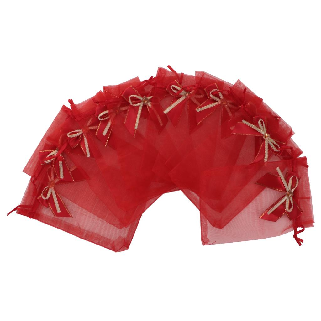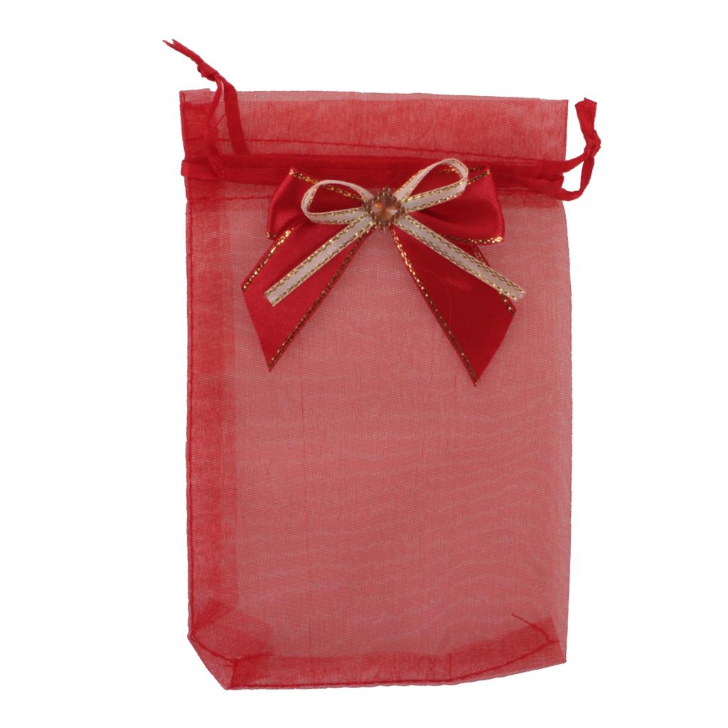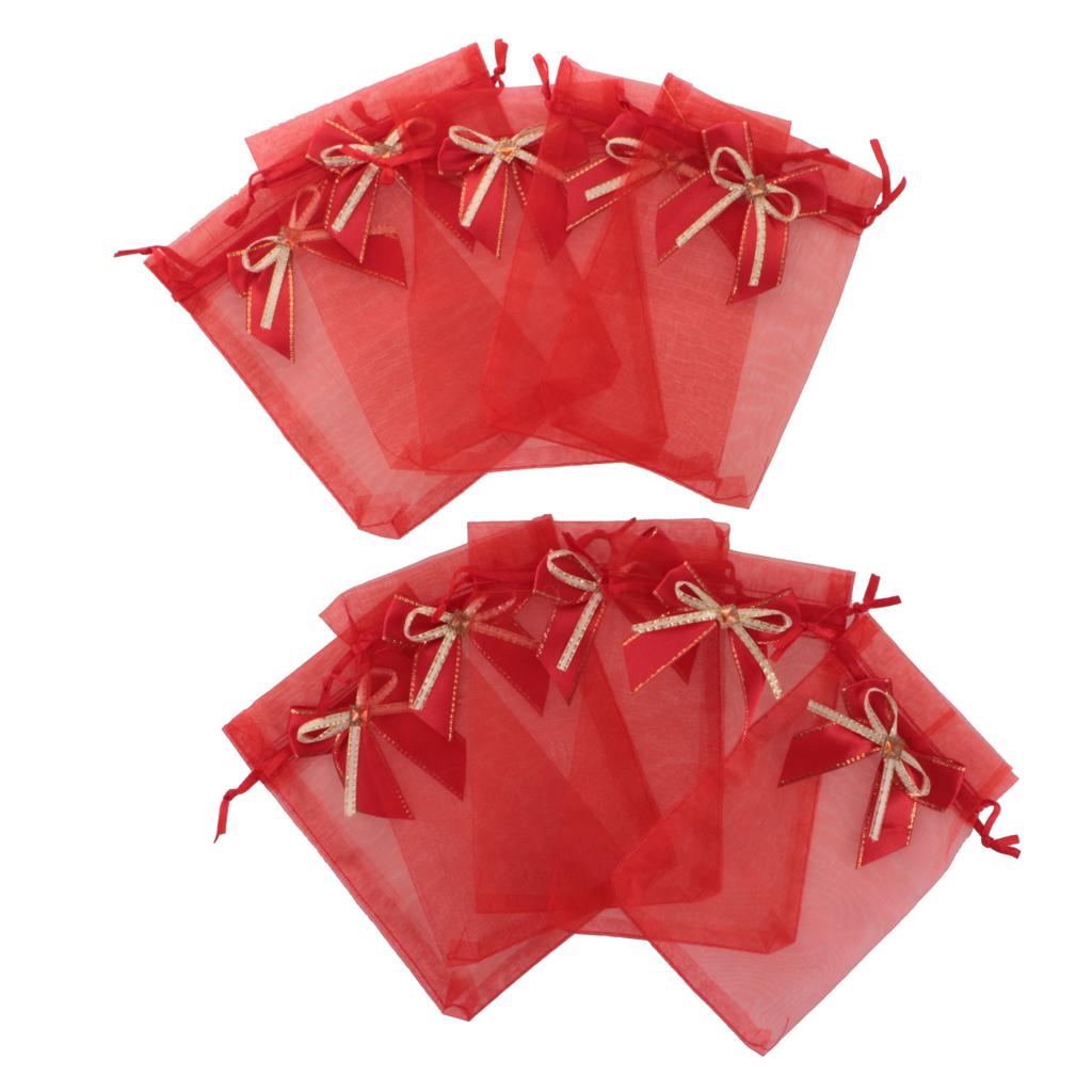 10pcs Drawstring Organza Bowknot Gift Bags Wedding Favor 10 x 15cm Red