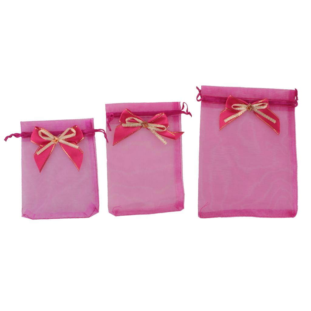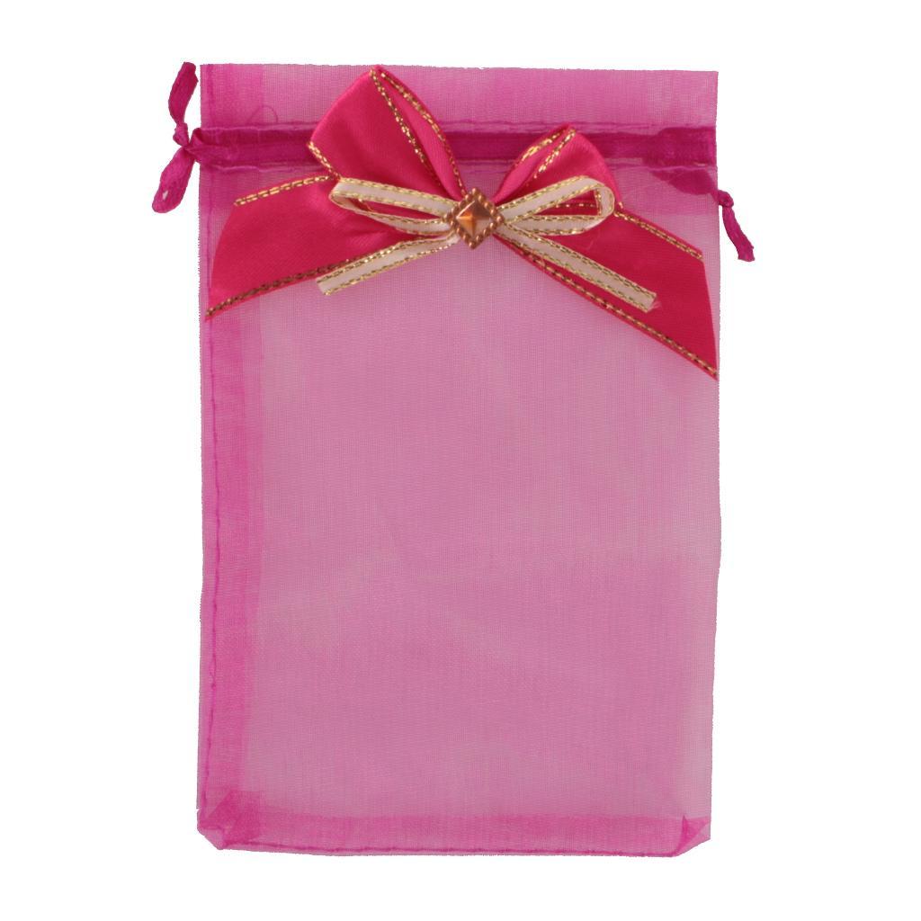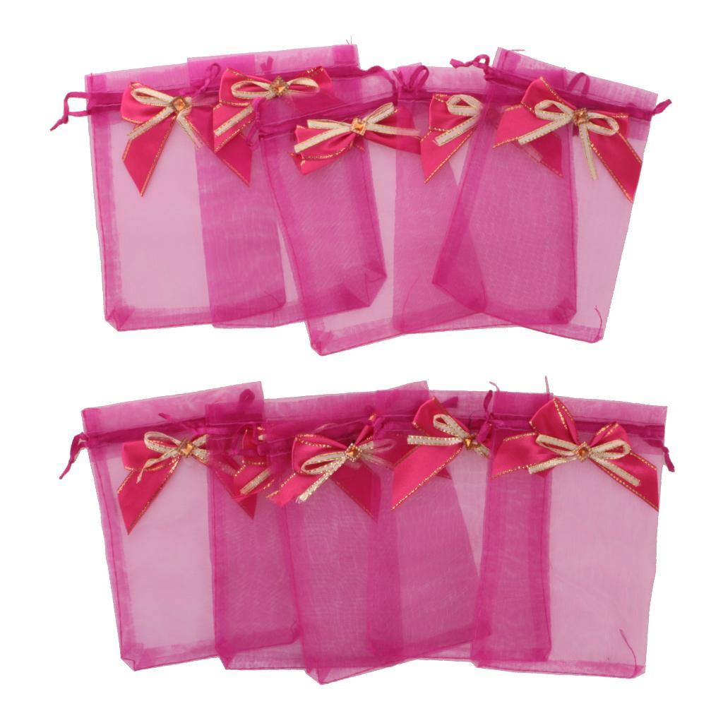 10pcs Drawstring Organza Bowknot Gift Bags Wedding Favor 13 x 18cm Rose red
