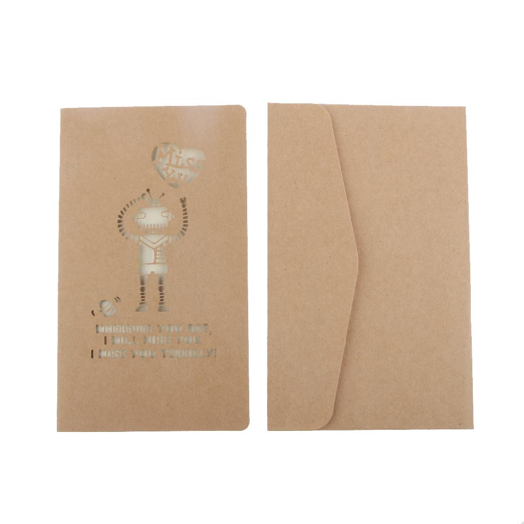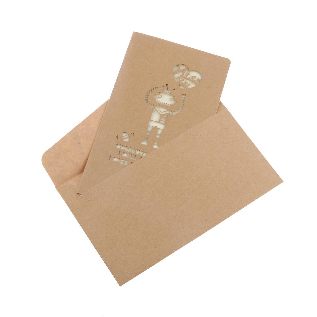 10Pcs Kraft Paper Robot Greeting Card Wish for Wedding Thanks Message Gift