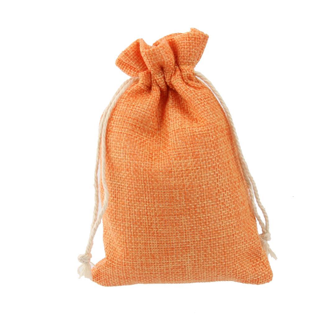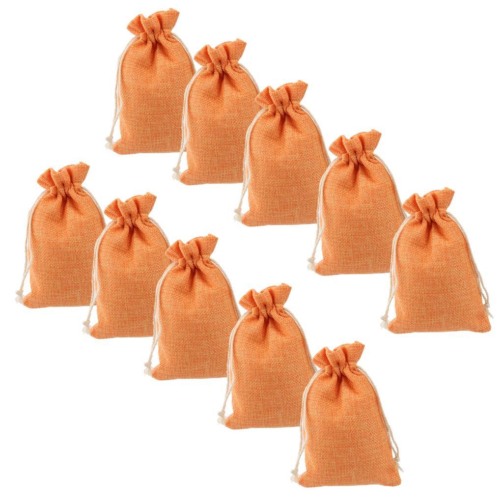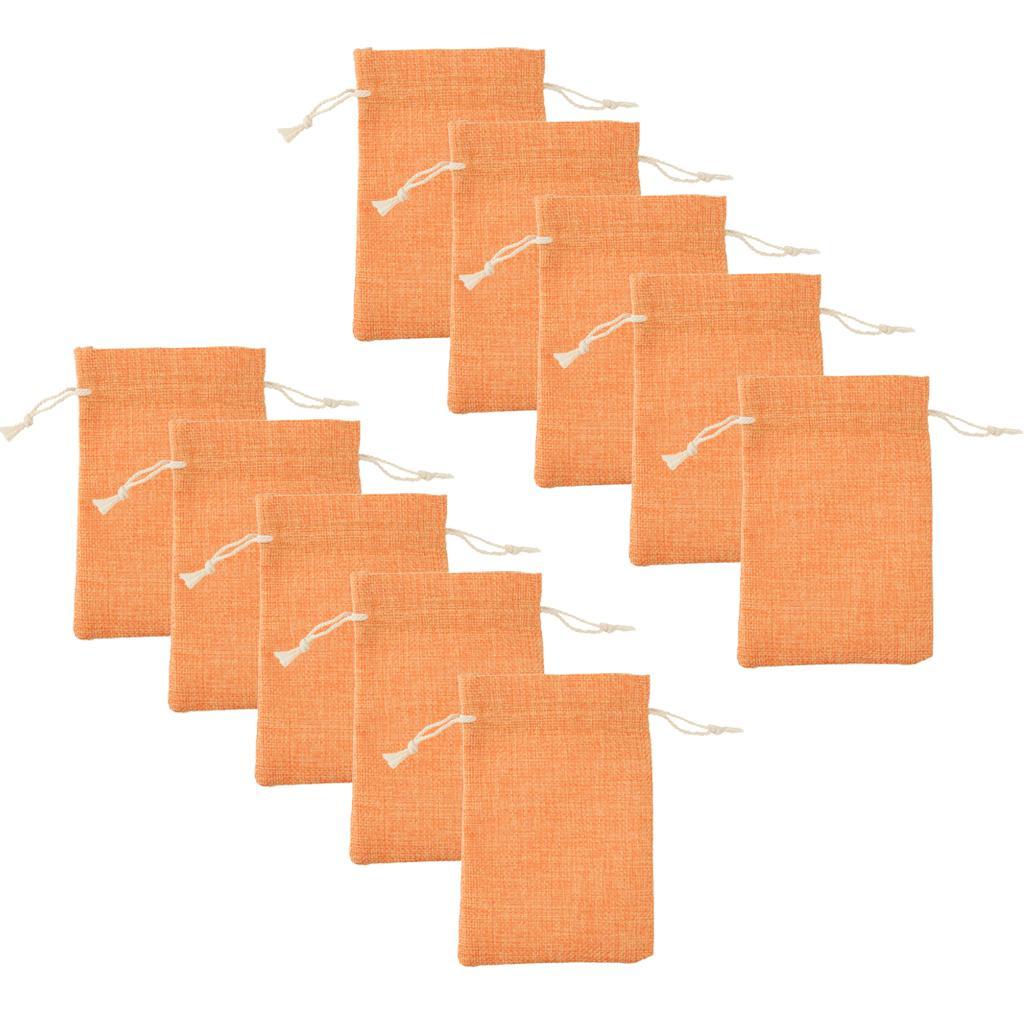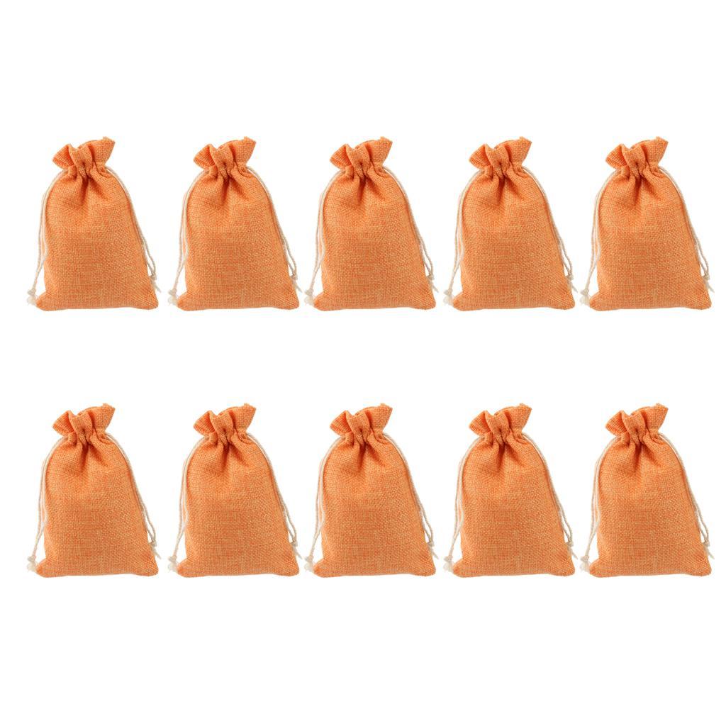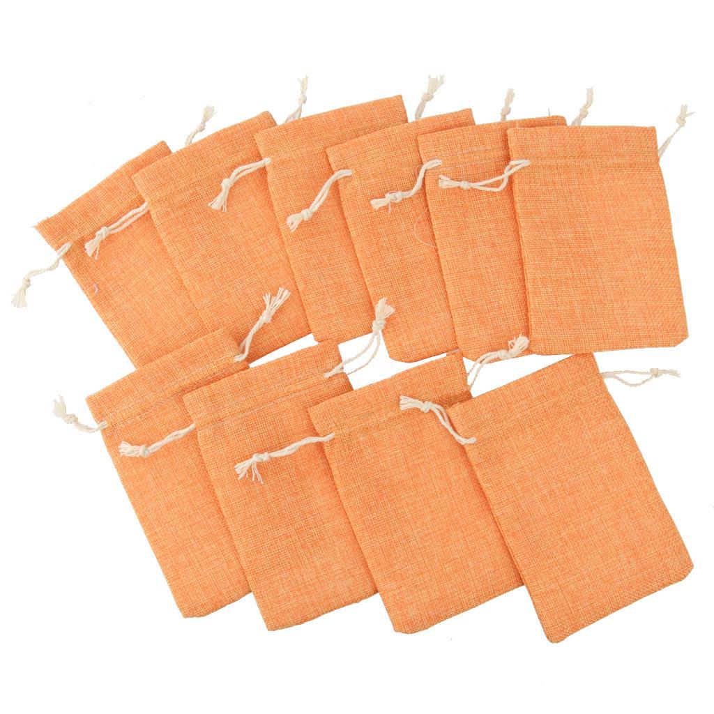 10pcs Linen Drawstring Bags Wedding Party Gift Bag Pouches Orange,10x14cm