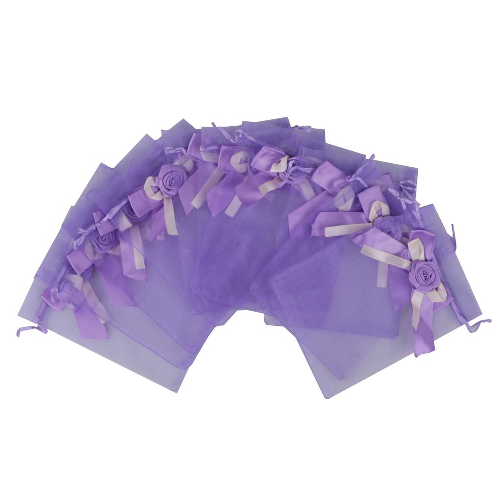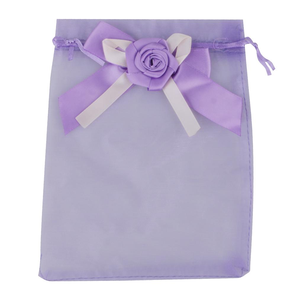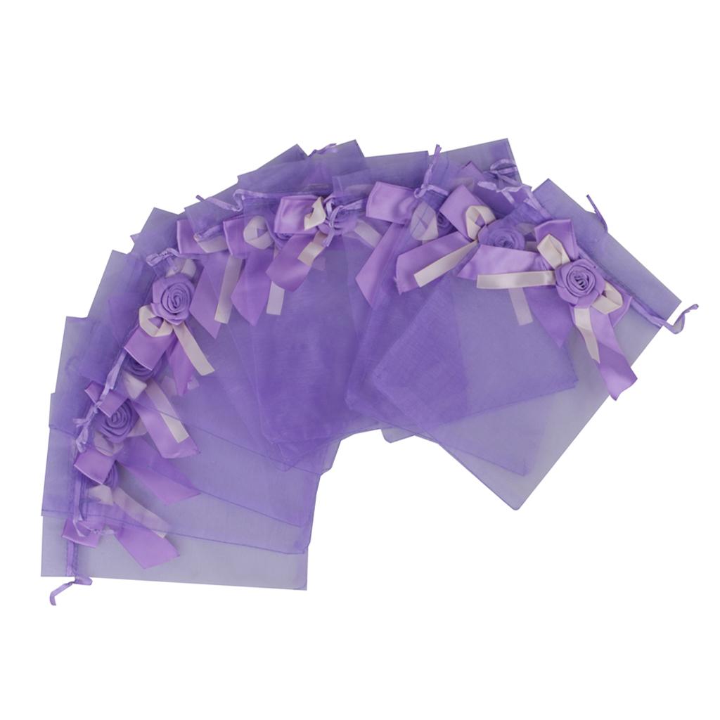 10pcs Organza Tulip Bowknot Drawstring Gift Pouch Bag 13 x 18cm Purple
