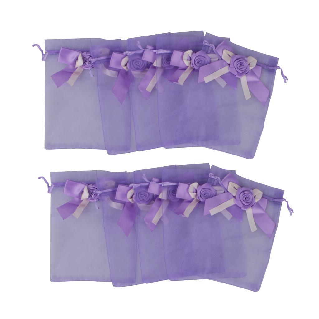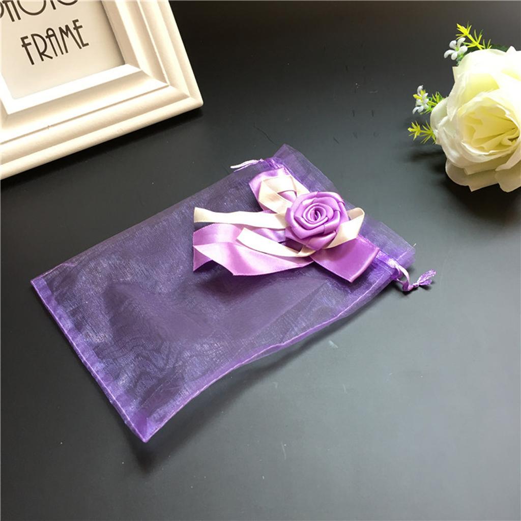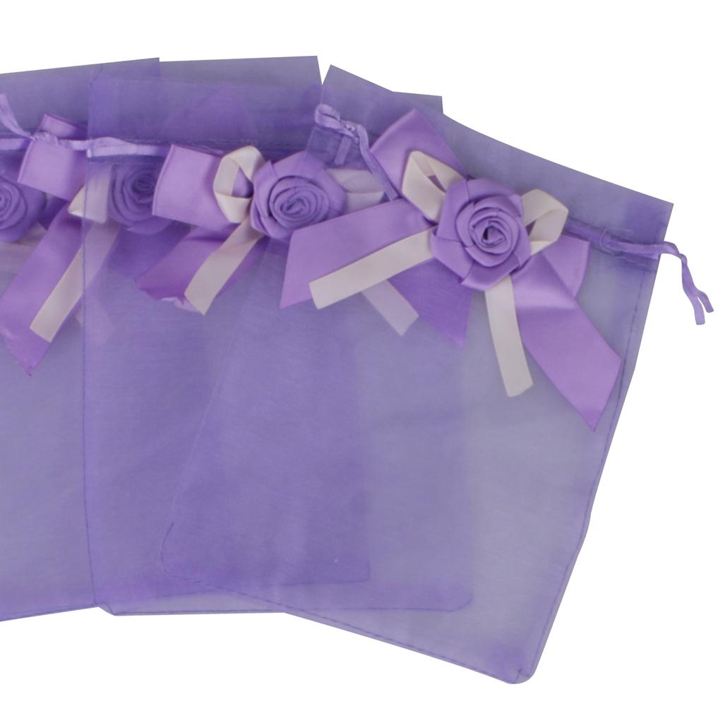 10pcs Organza Tulip Bowknot Drawstring Gift Pouch Bag 13 x 18cm Purple