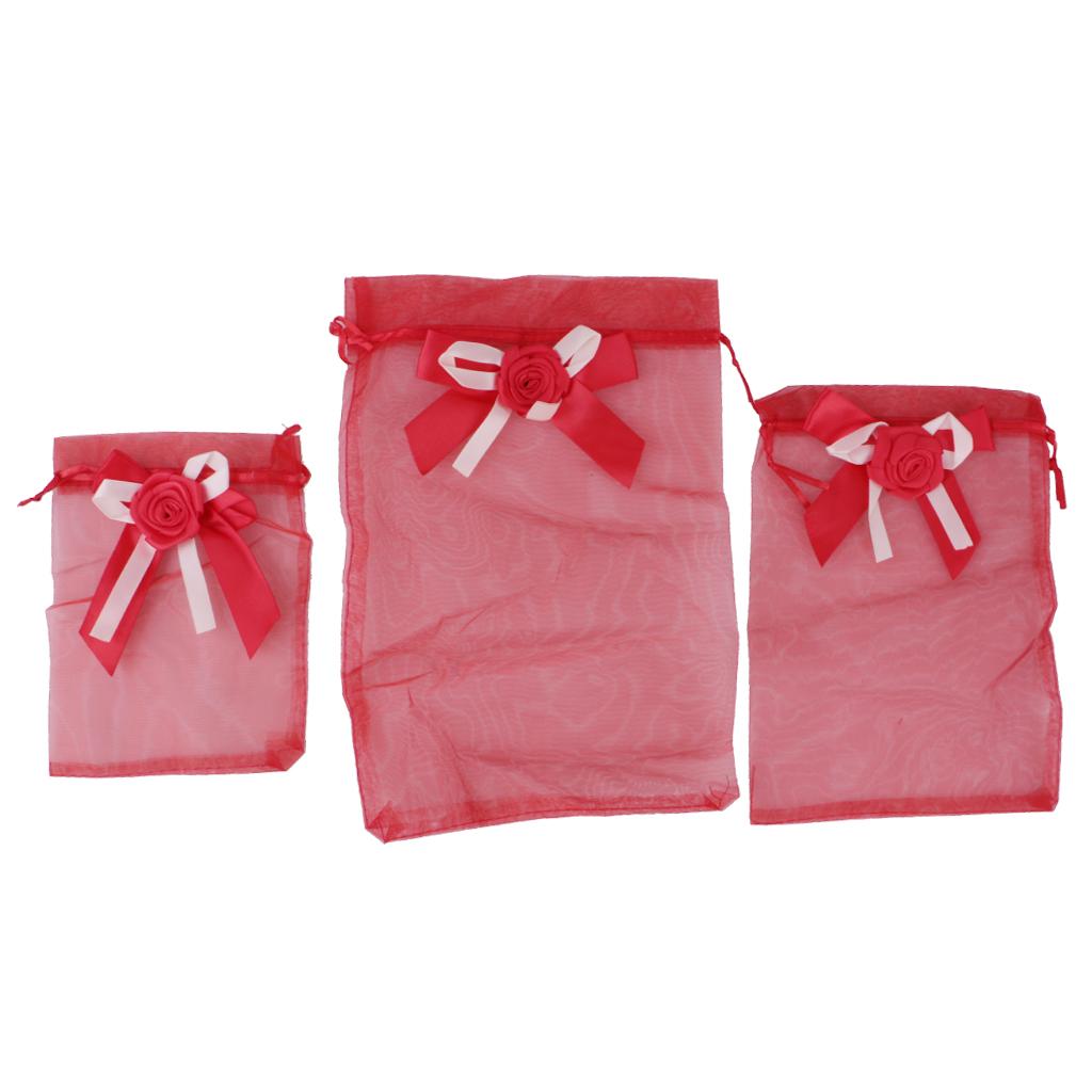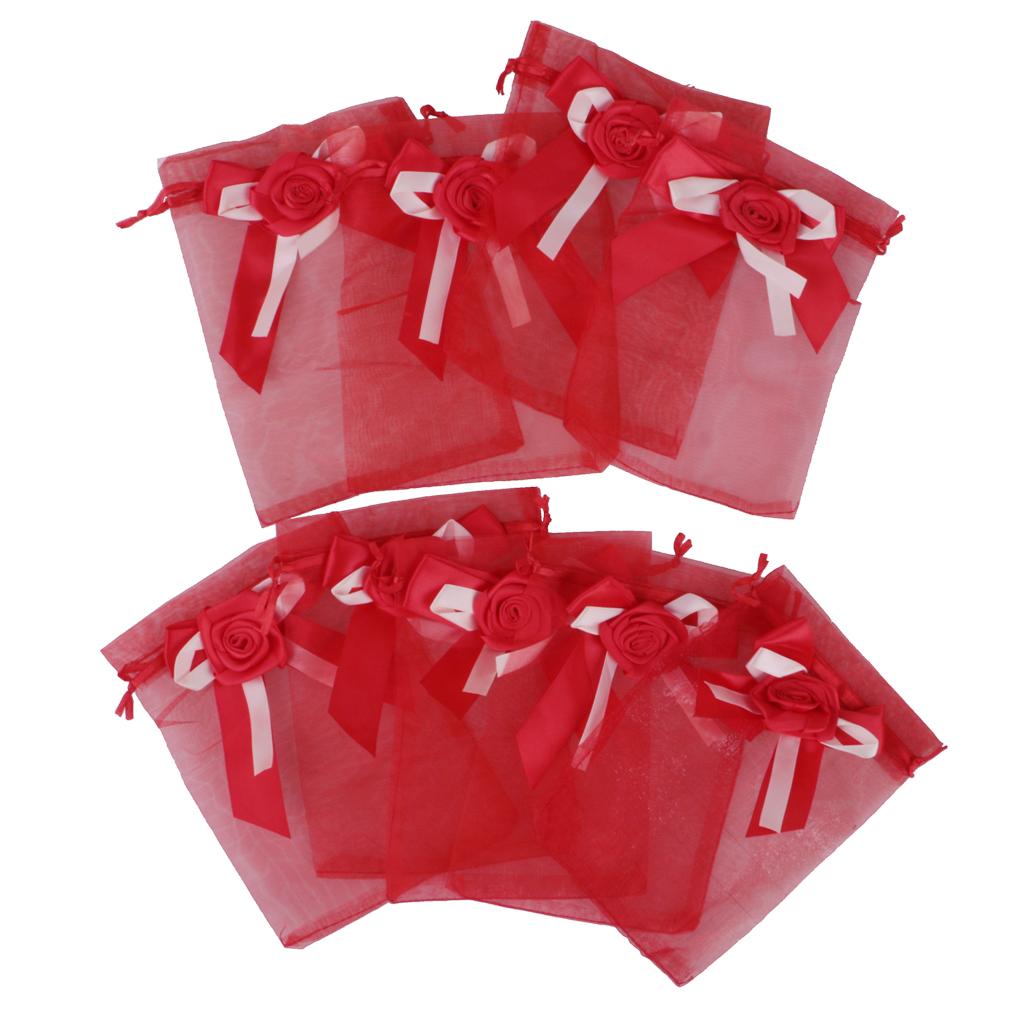 10pcs Organza Tulip Bowknot Drawstring Gift Pouch Bag 15 x 20cm Red