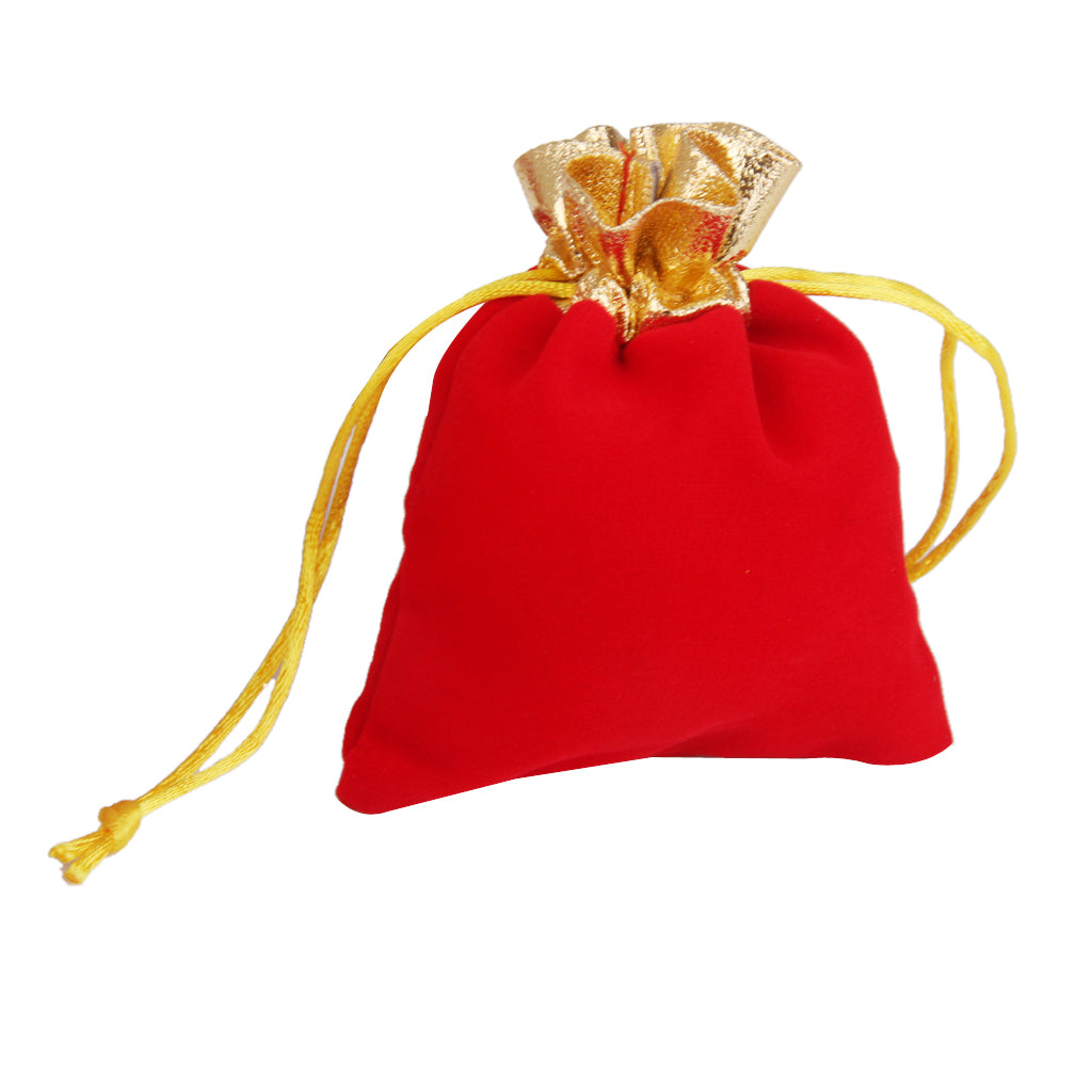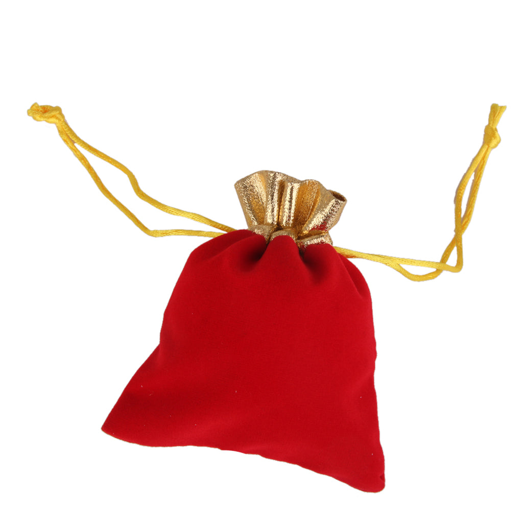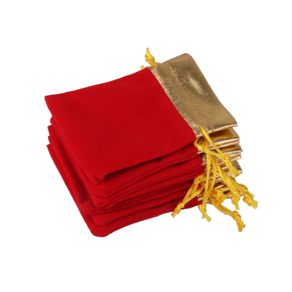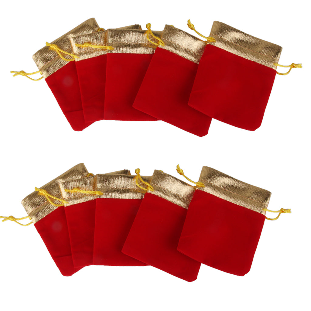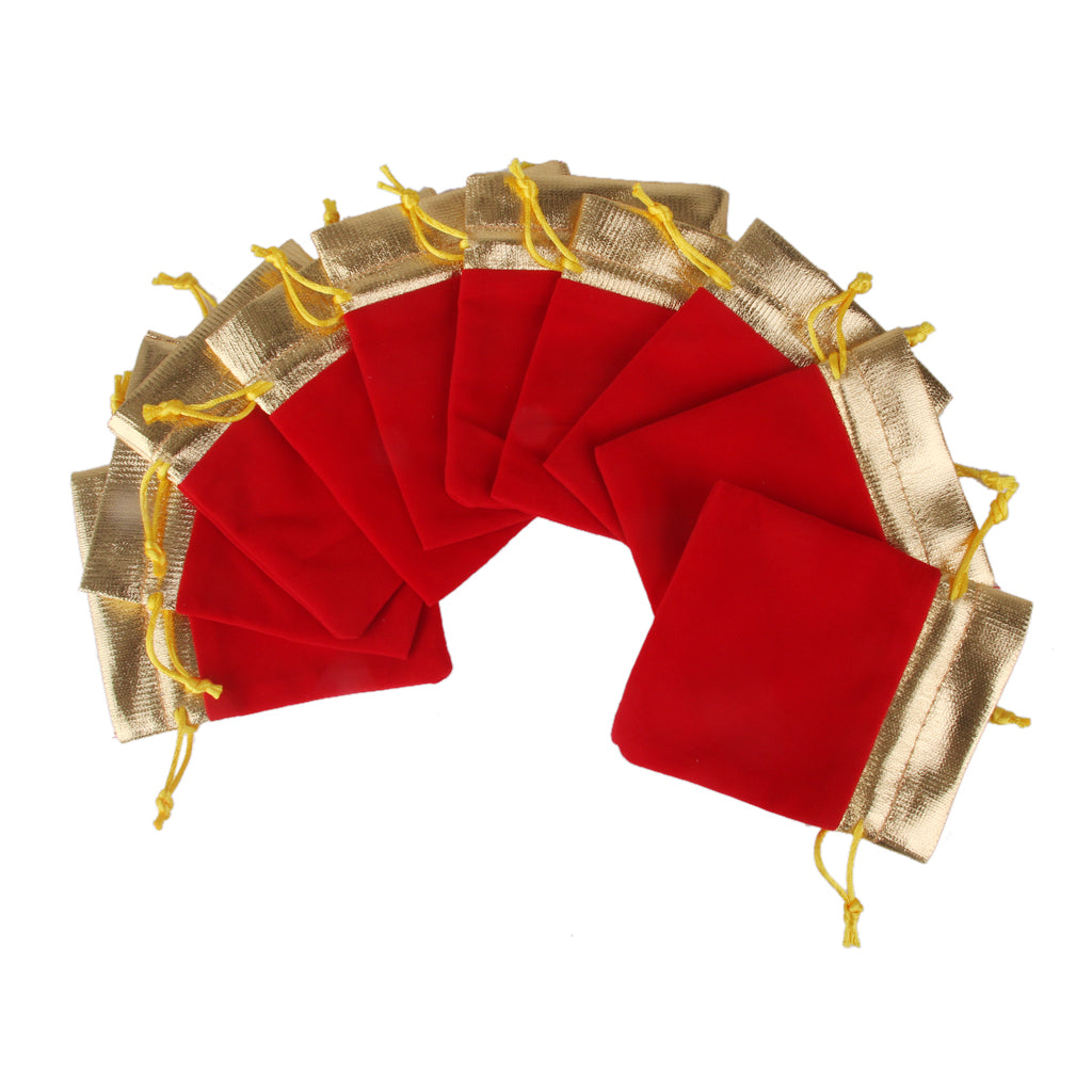 10Pcs Red Jewelry Drawstring Pouch Velvet Gift Bag Wedding Favor Gold Satin