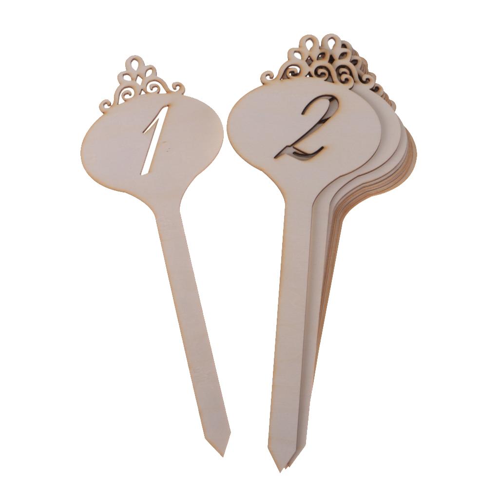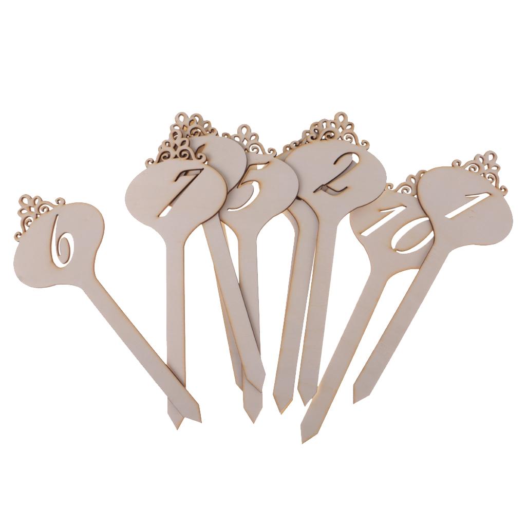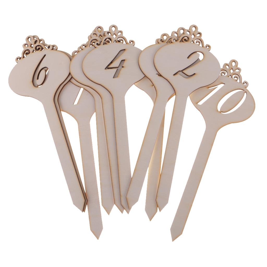 10pcs Wooden Crown Table Number On Sticks for Wedding Home Decoration 1-10