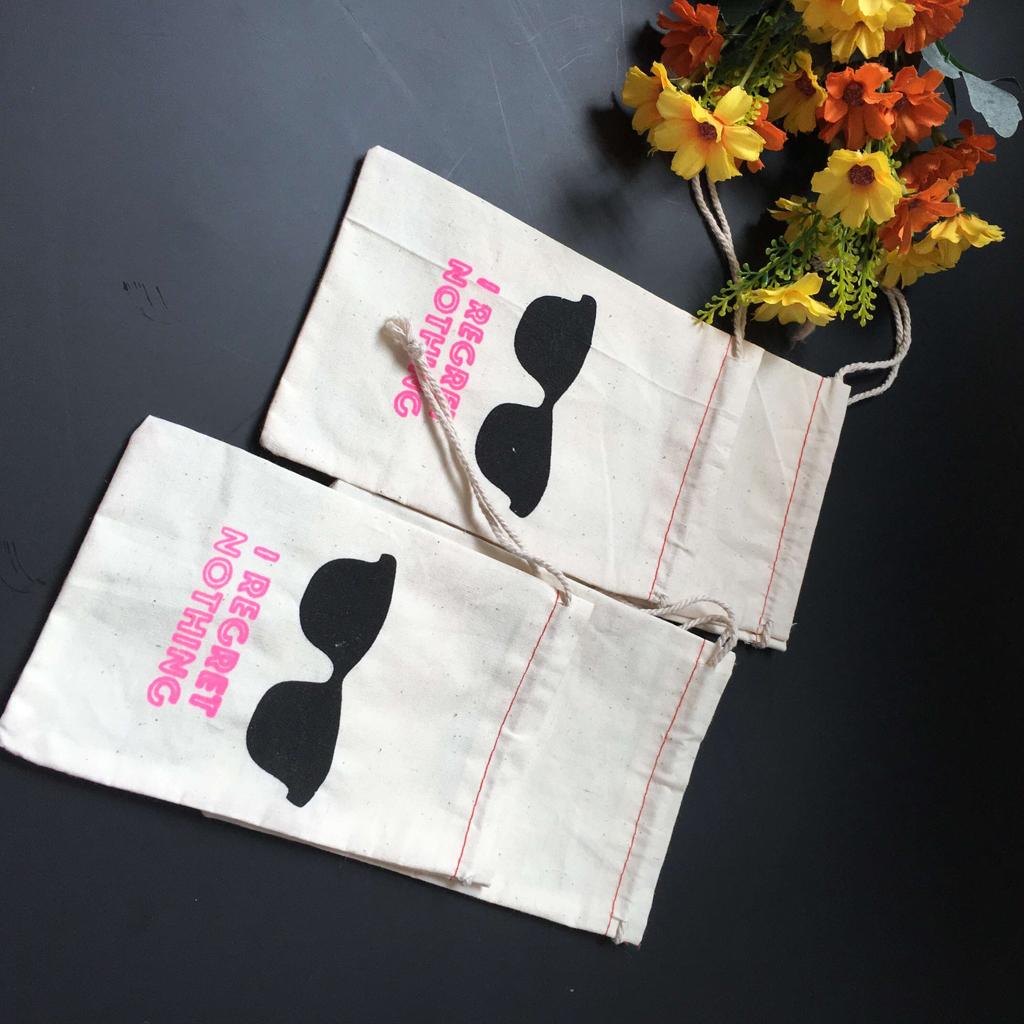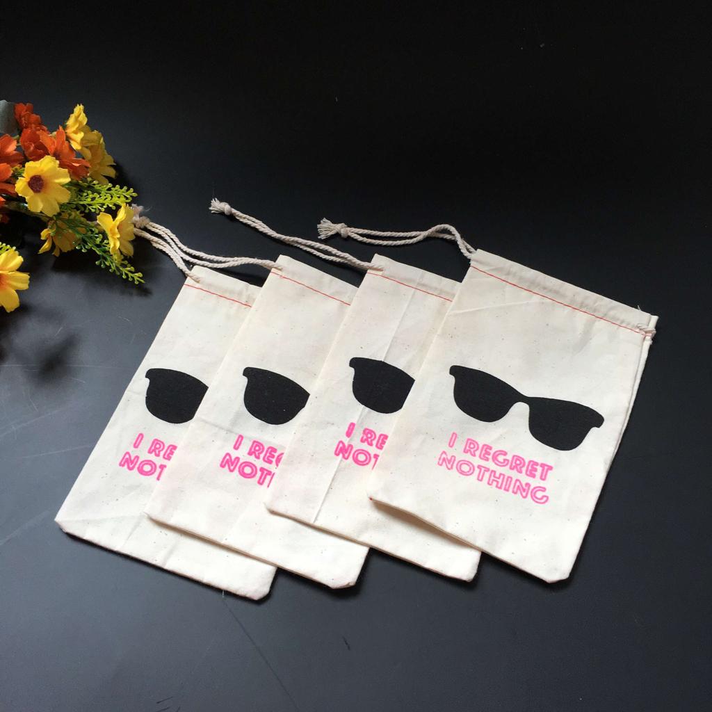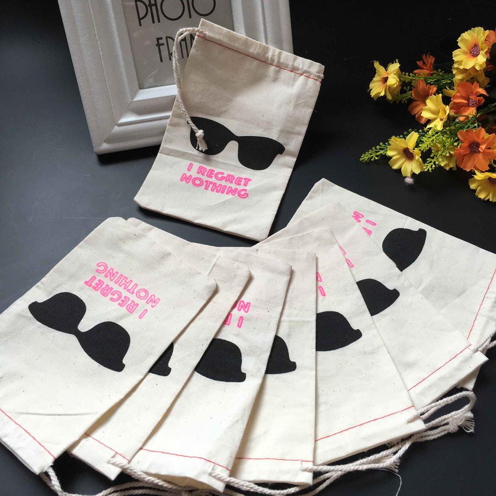 Vintage I Regret Nothing Cotton Muslin drawstring bag, durable and reusable