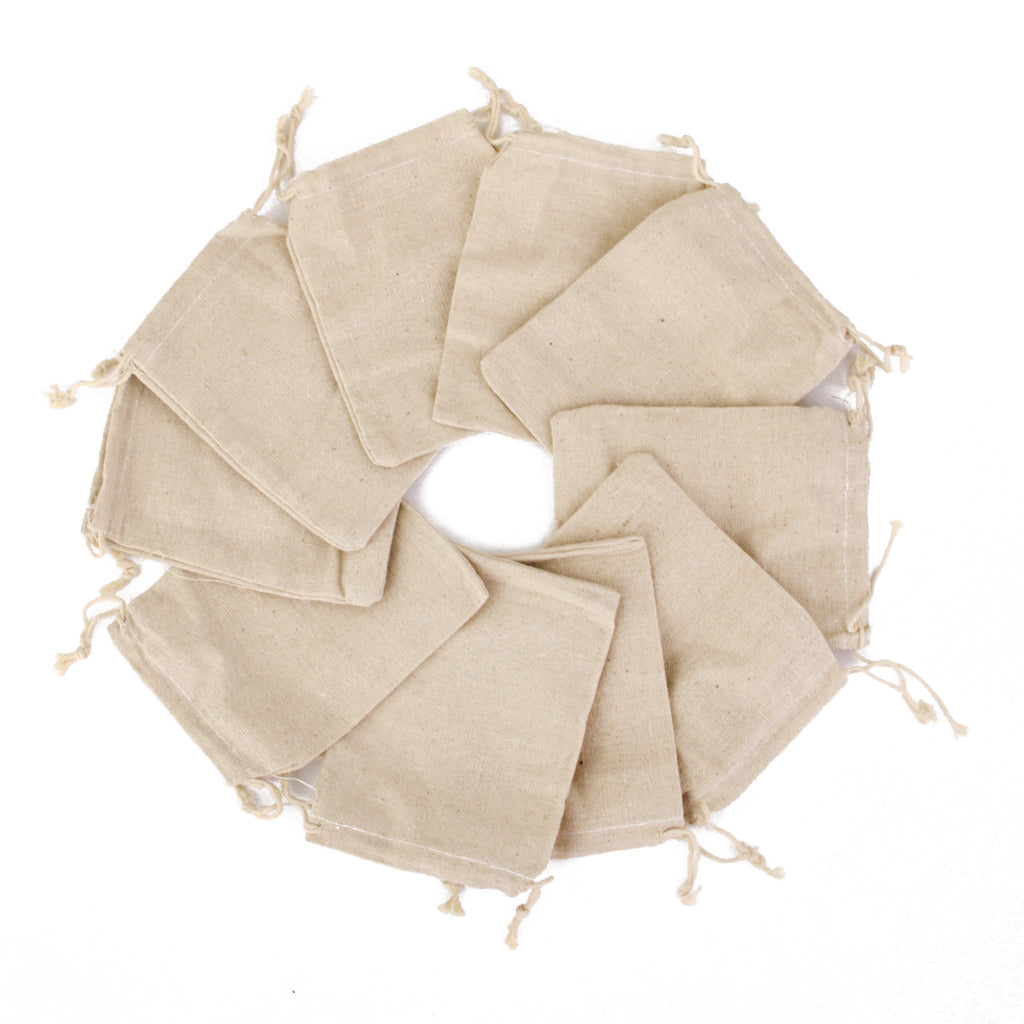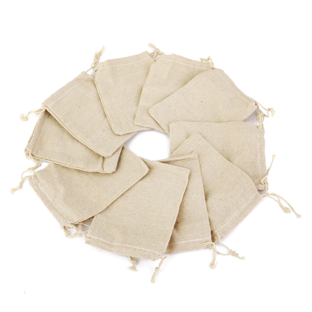 10x Small Linen Jute Sack Jewelry Pouch Drawstring Gift Bags Wedding Favour