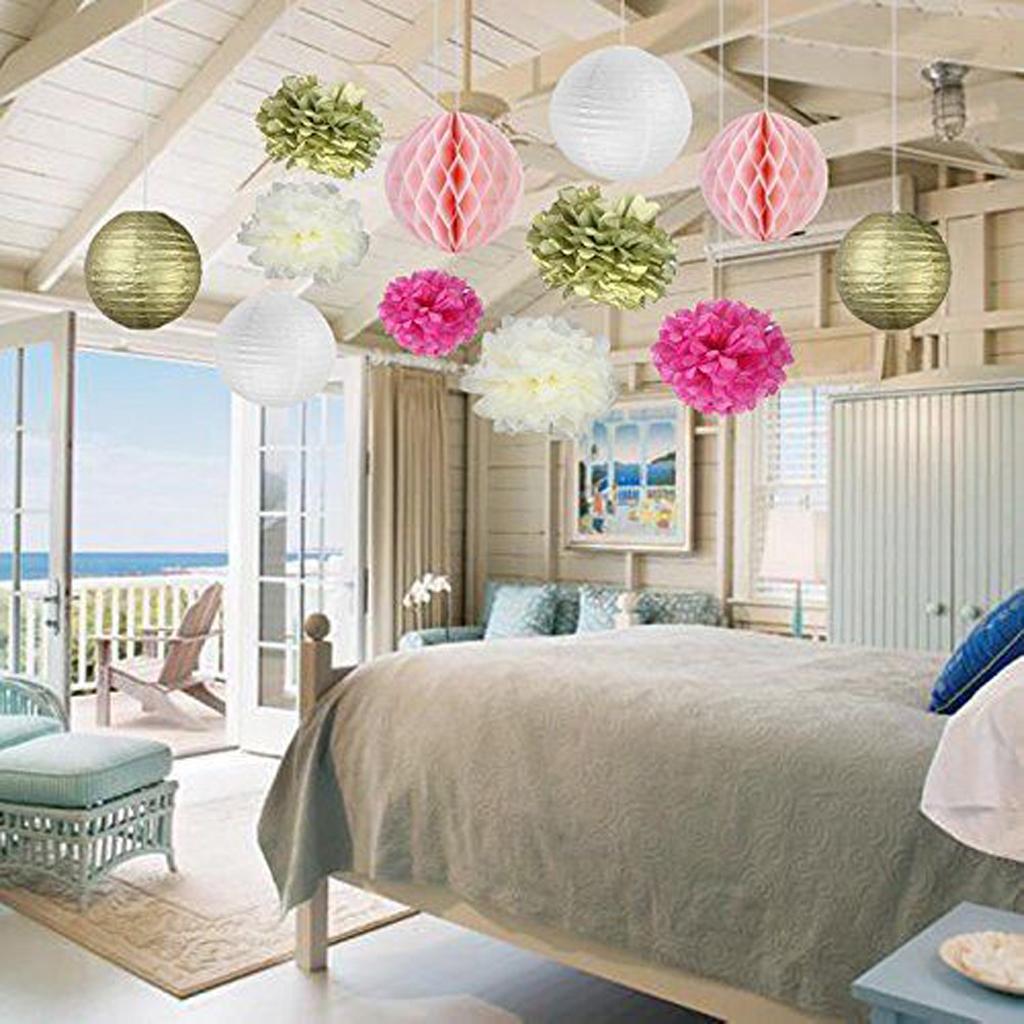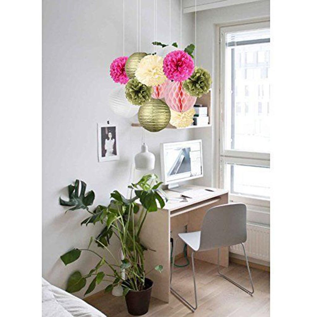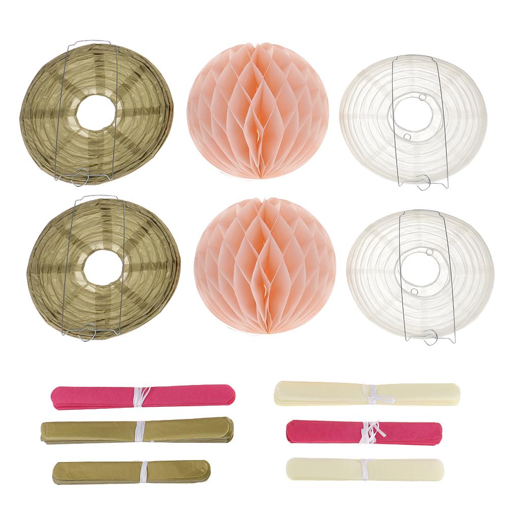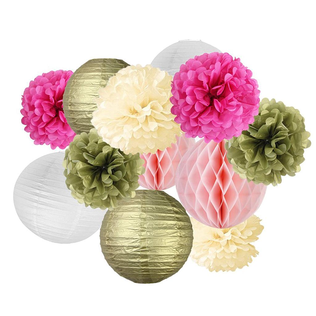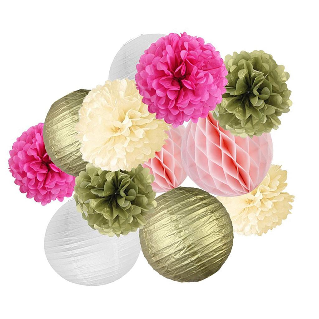 Mixed style tissue paper fowers balls honeycomb and paper lanterns