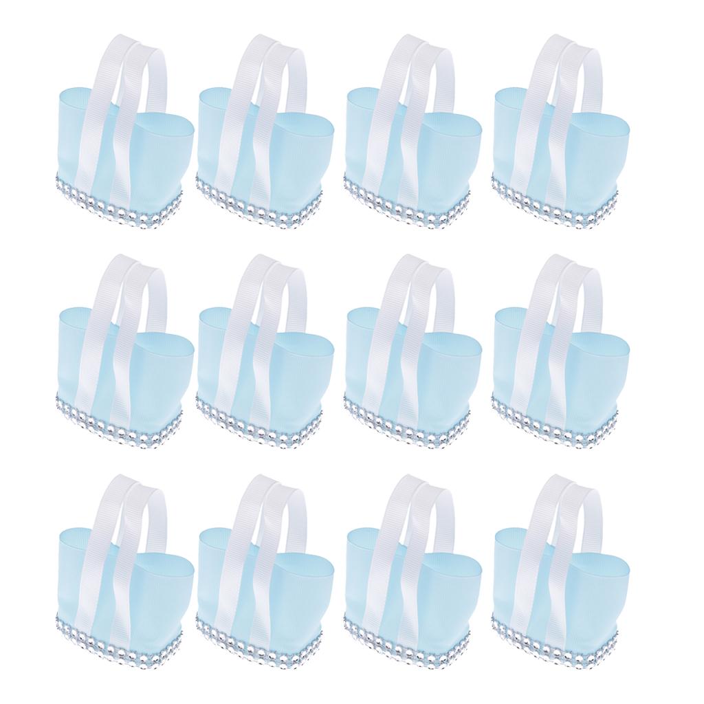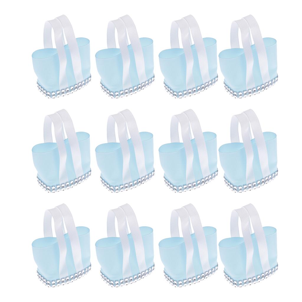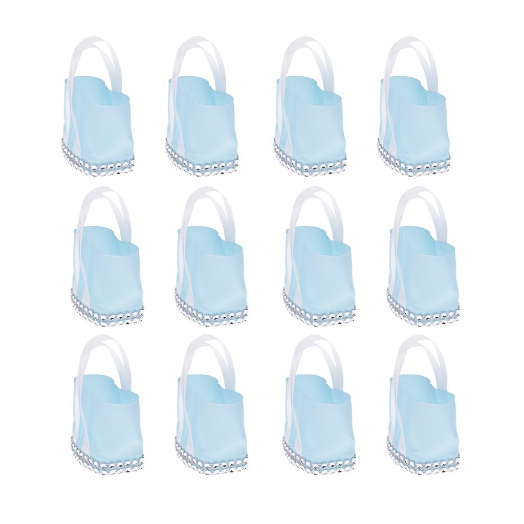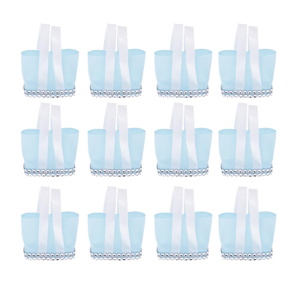 12pcs Blue Shiny Crystal Small Sweets Candy Bags with Handle Wedding Favor