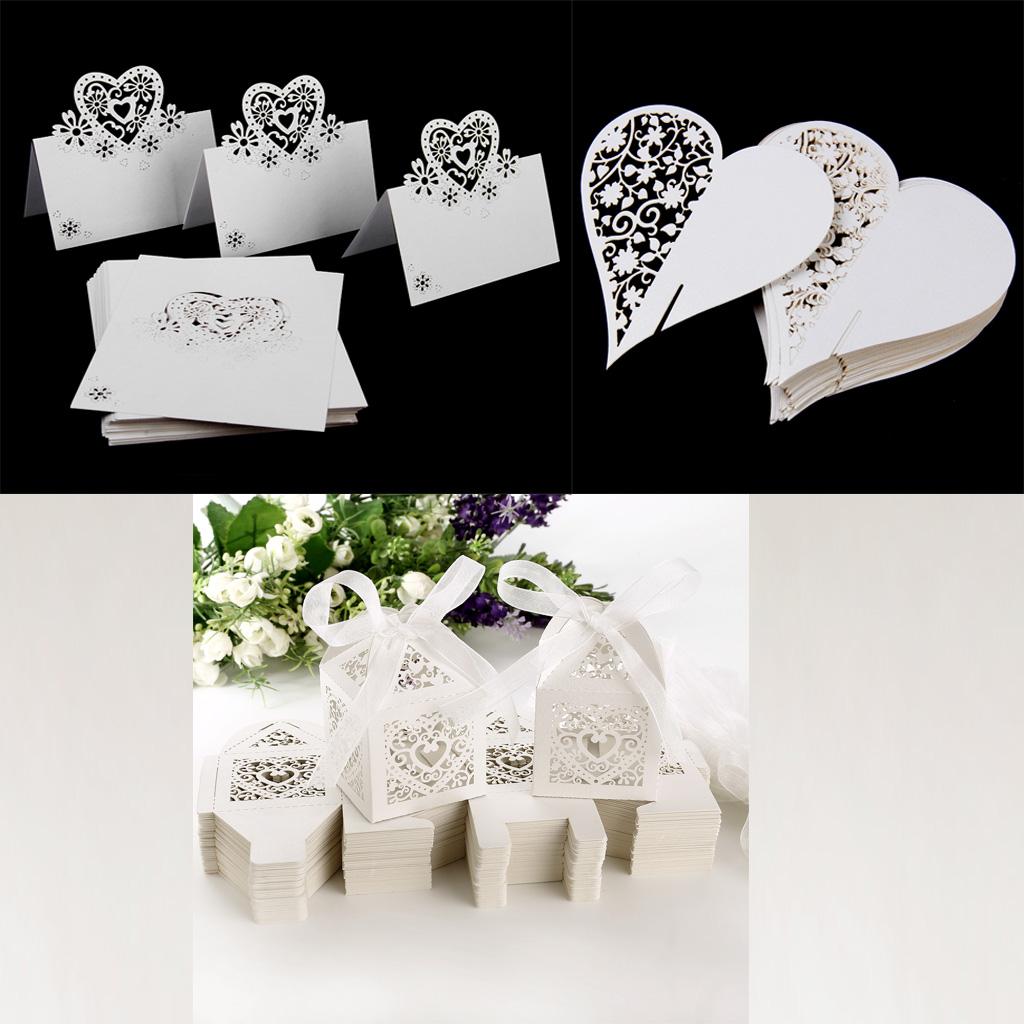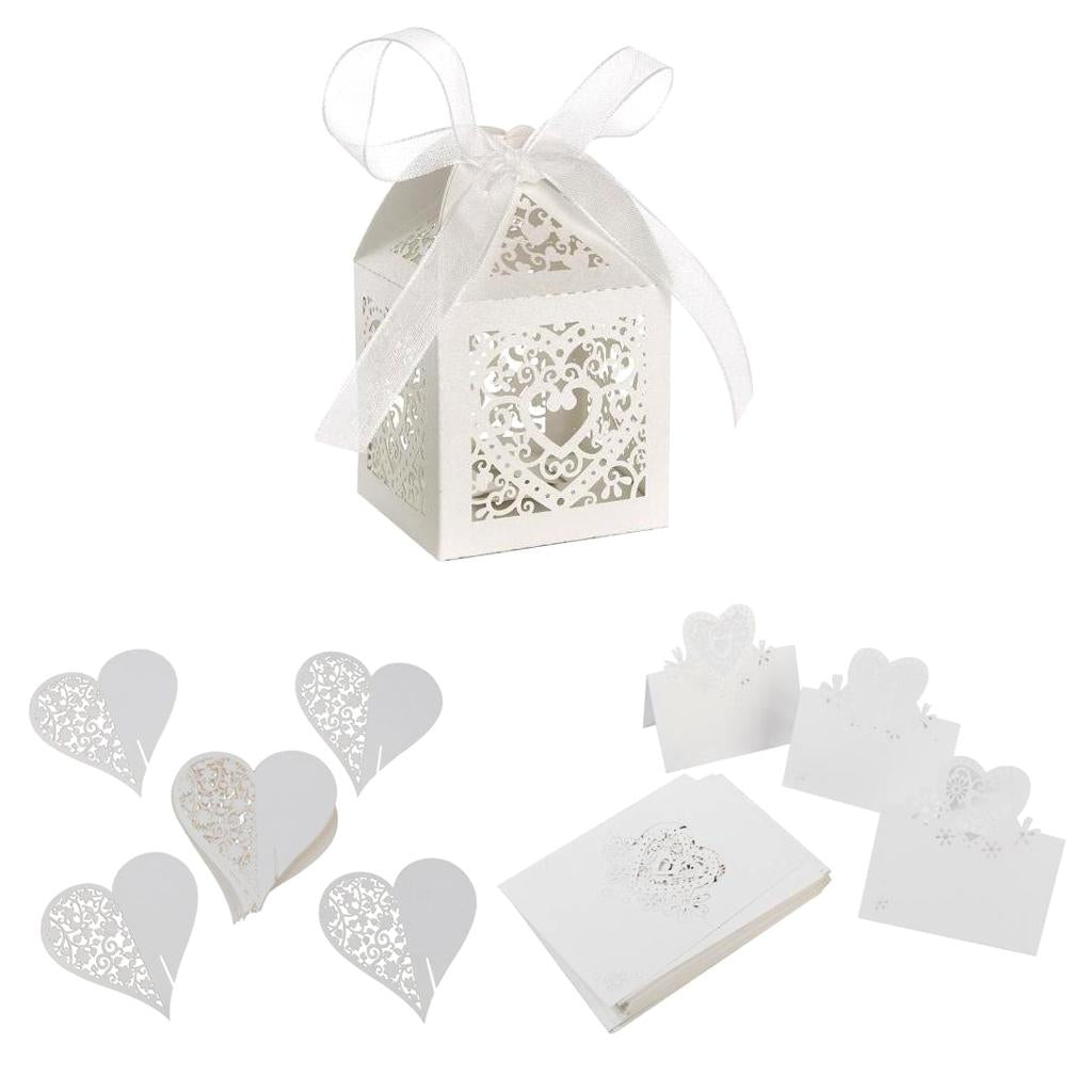 150pcs Heart Glass Place Cards+Name Cards+Candy Box Wedding Party Favor