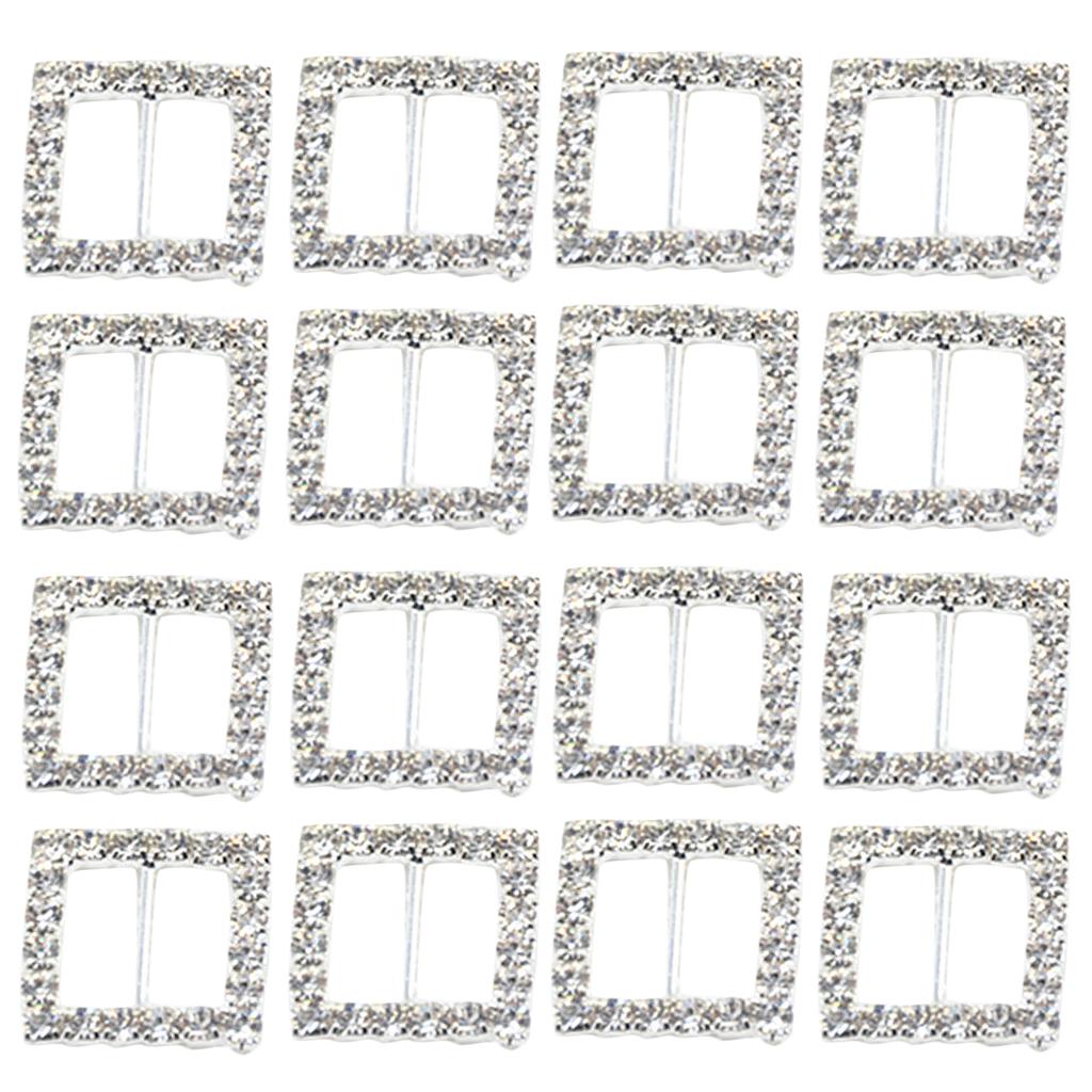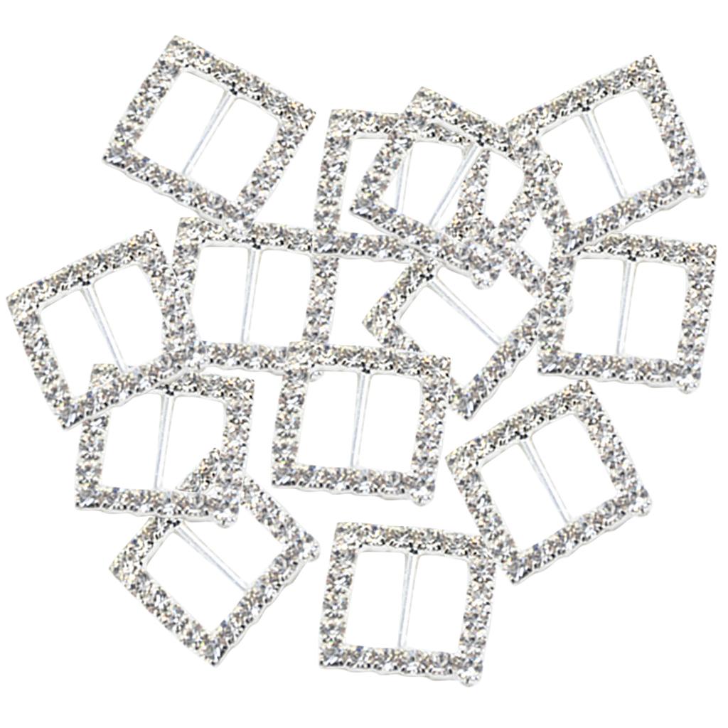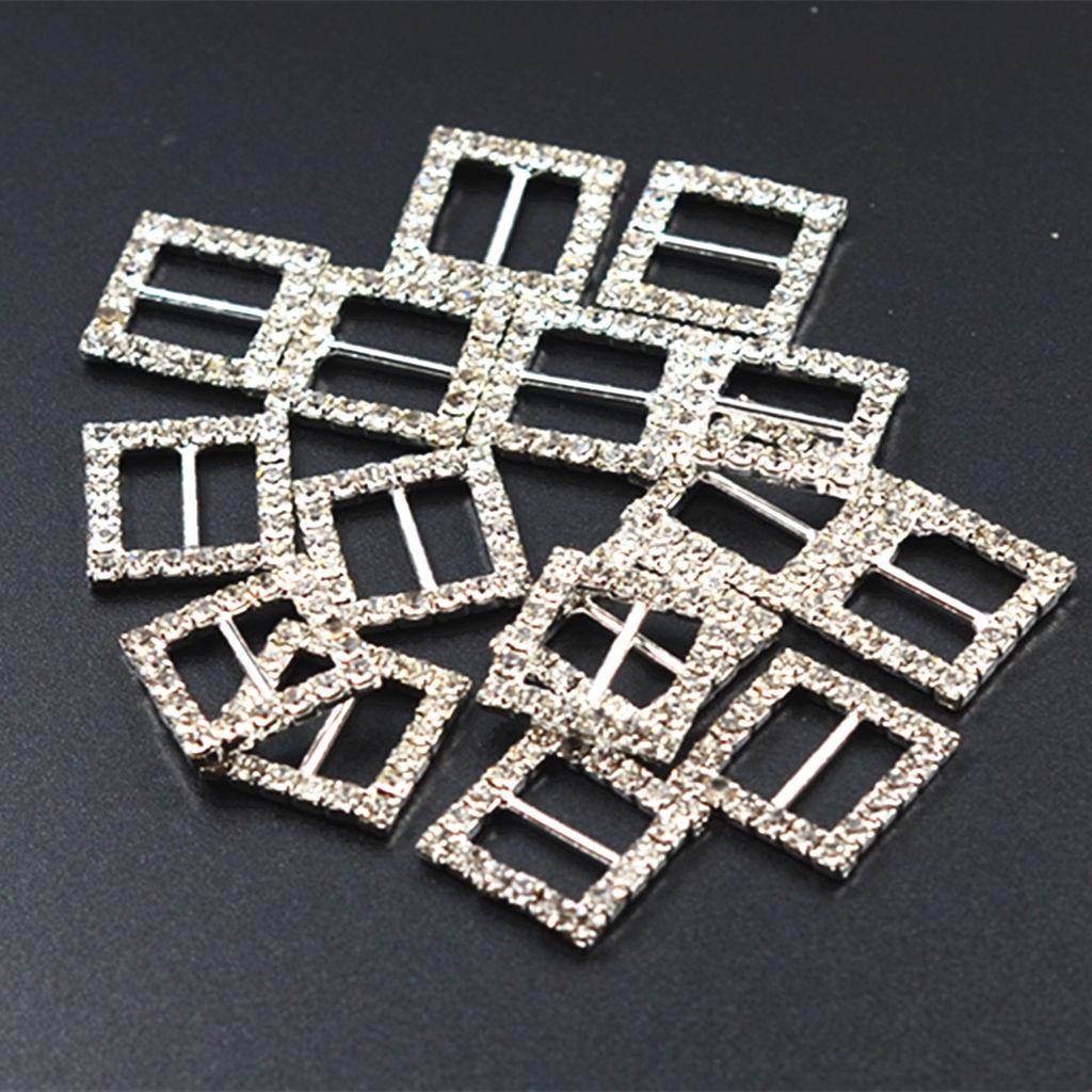 16 Pieces Square Shape Rhinestone Ribbon Buckles Sliders for Wedding Invitation Party Favor Silver 15mm