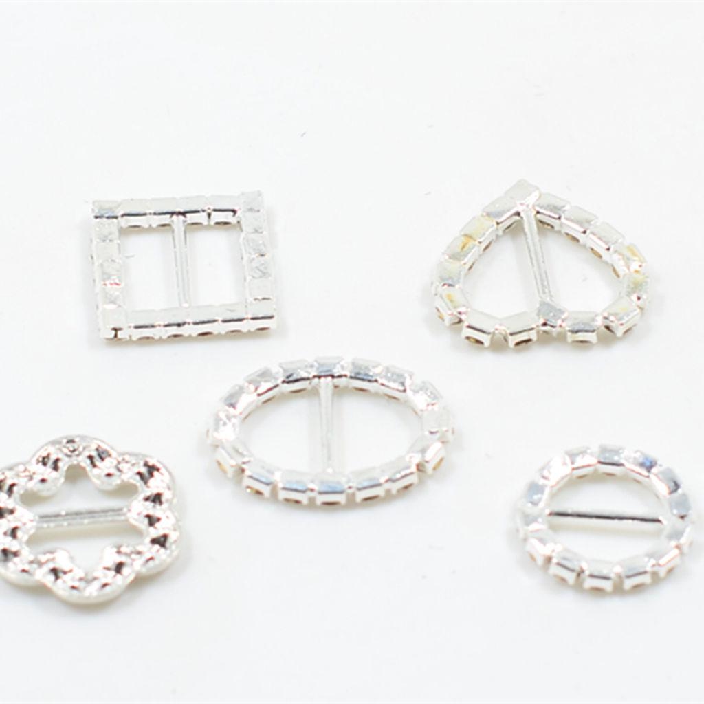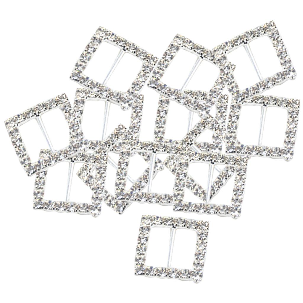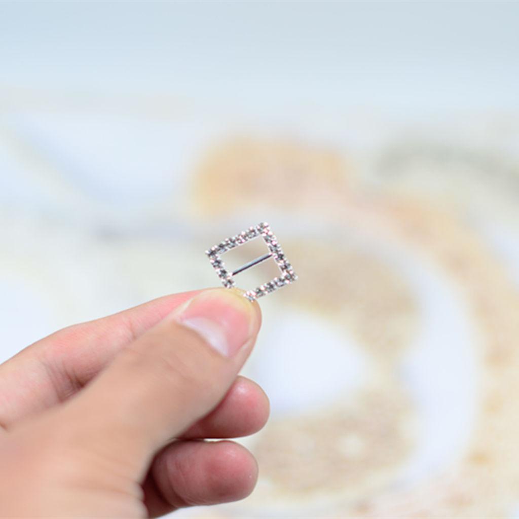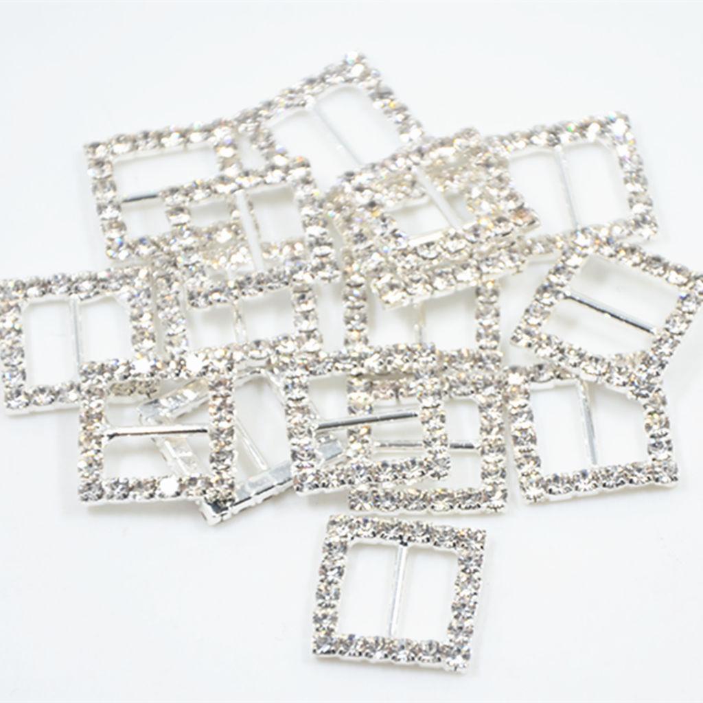 16 Pieces Square Shape Rhinestone Ribbon Buckles Sliders for Wedding Invitation Party Favor Silver 15mm