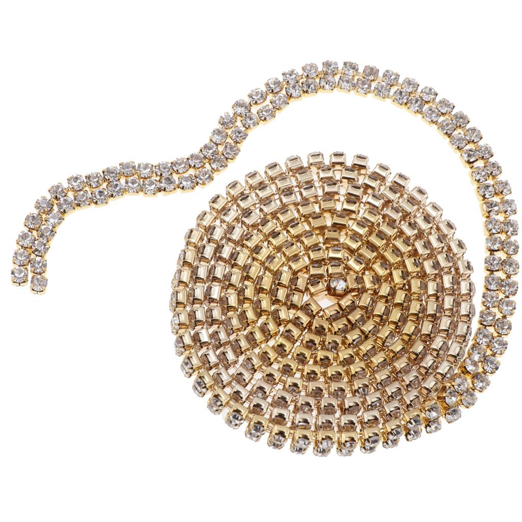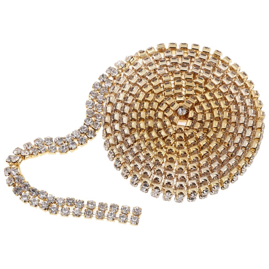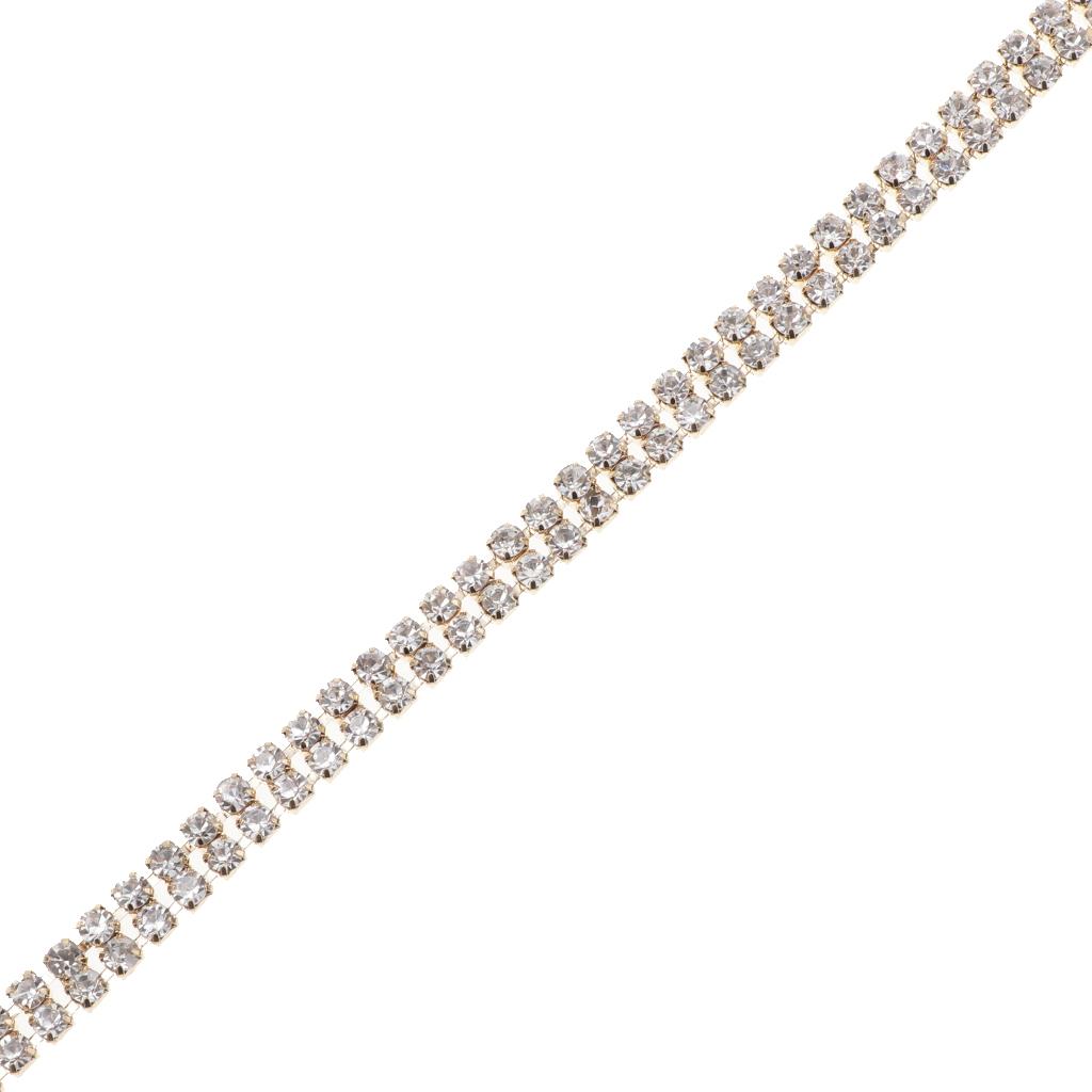 Sparkling 2-Row Crystal Rhinestone Close Chain Diamond Mesh Ribbon Wrap.