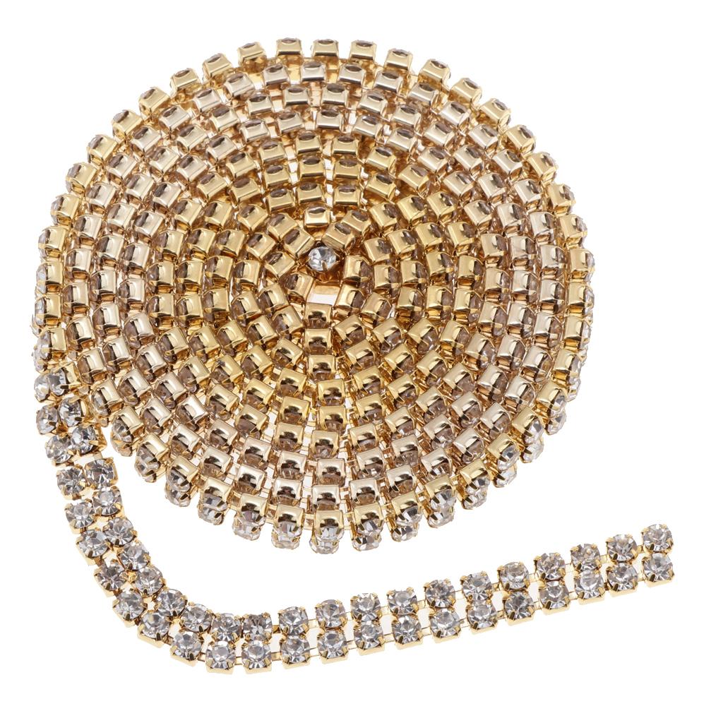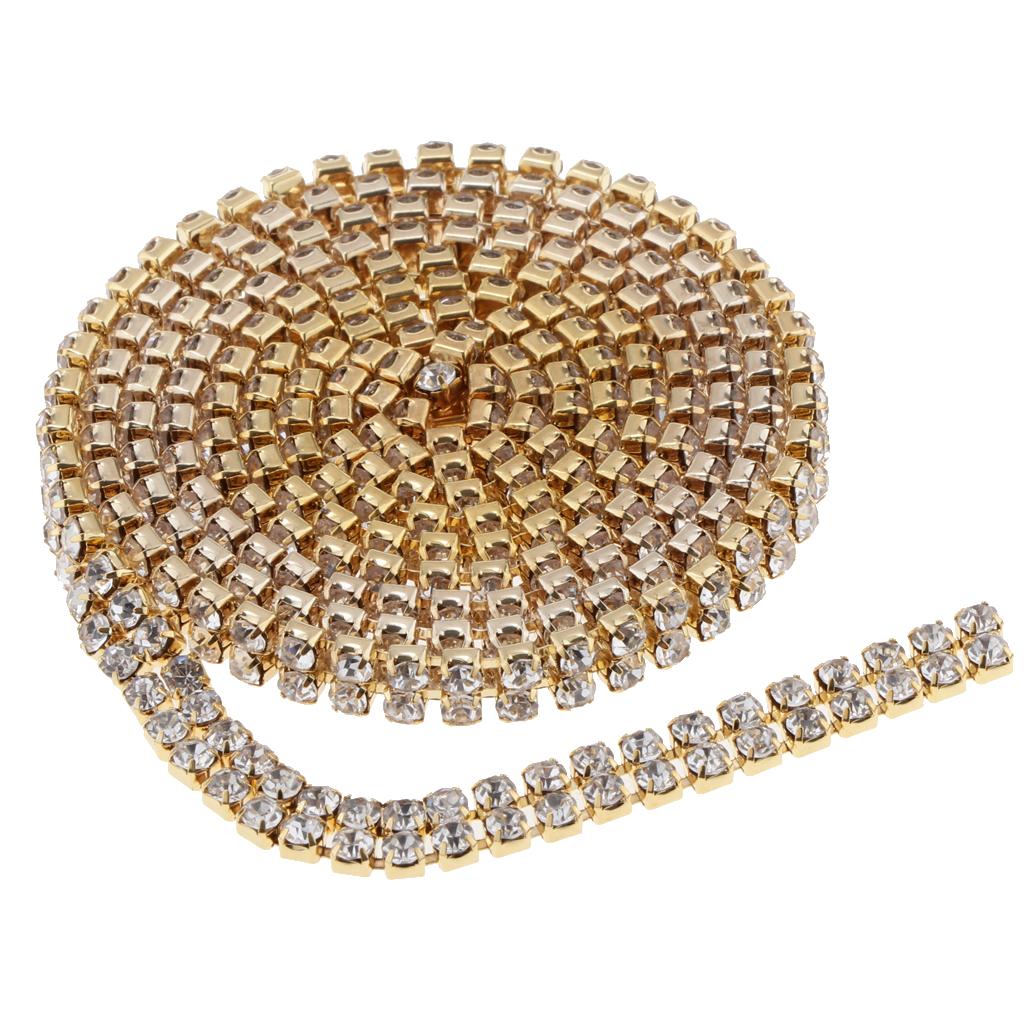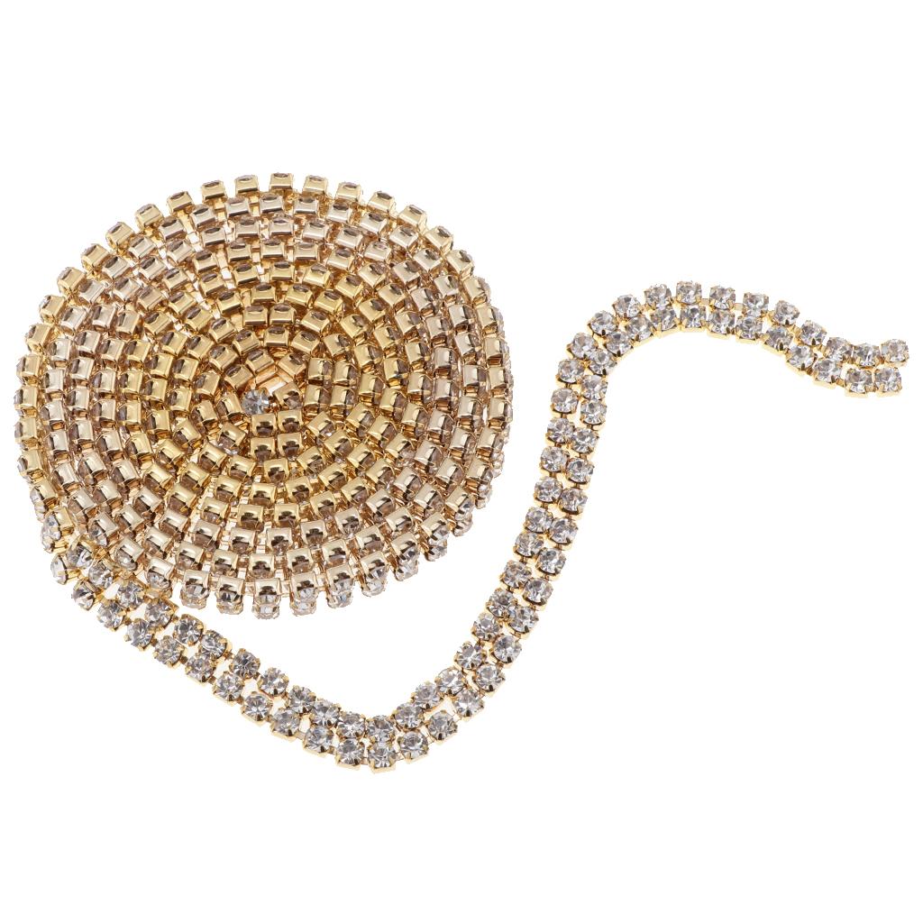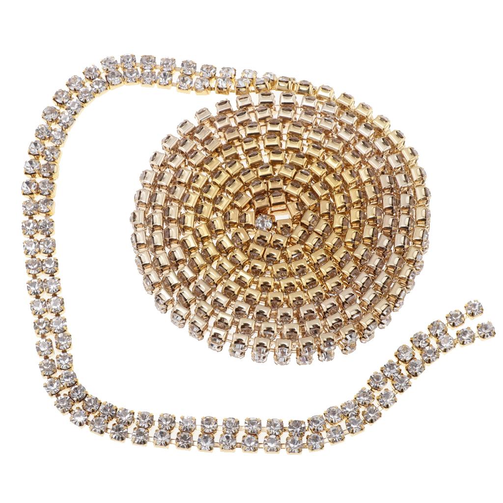 Sparkling 2-Row Crystal Rhinestone Close Chain Diamond Mesh Ribbon Wrap.