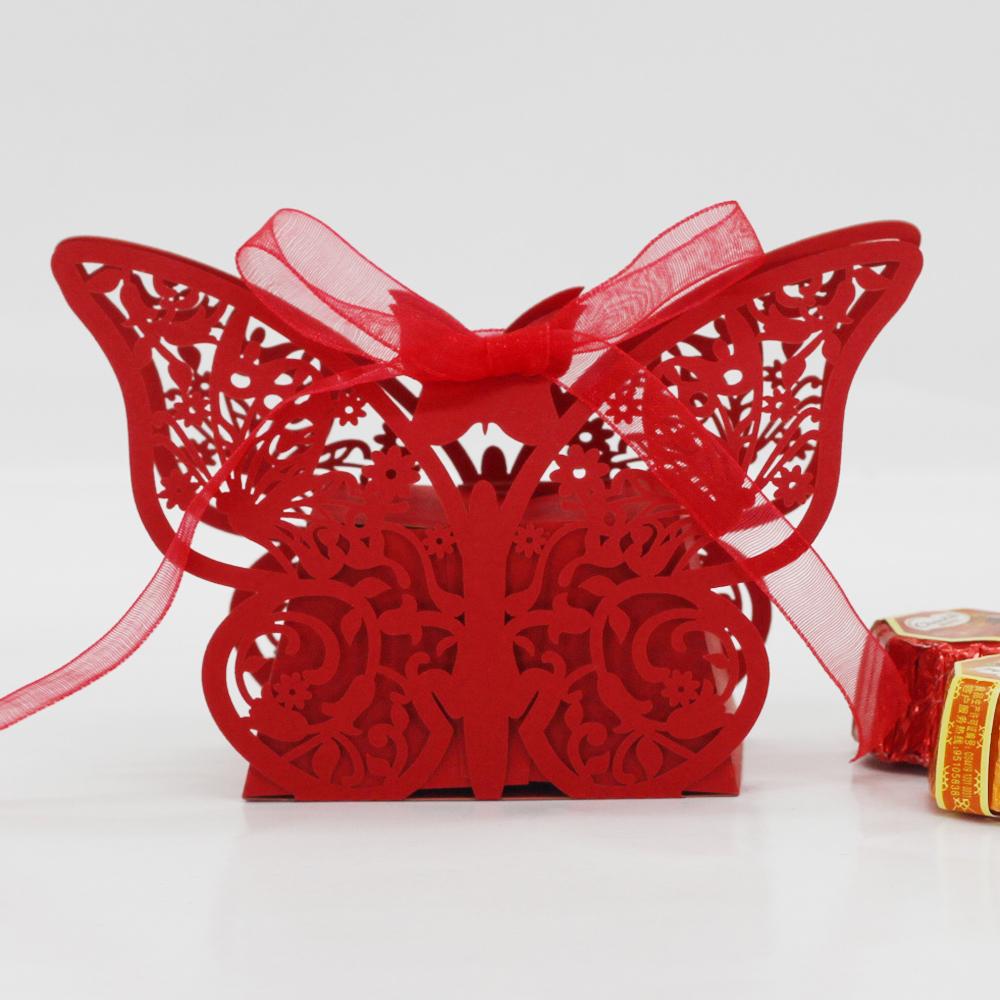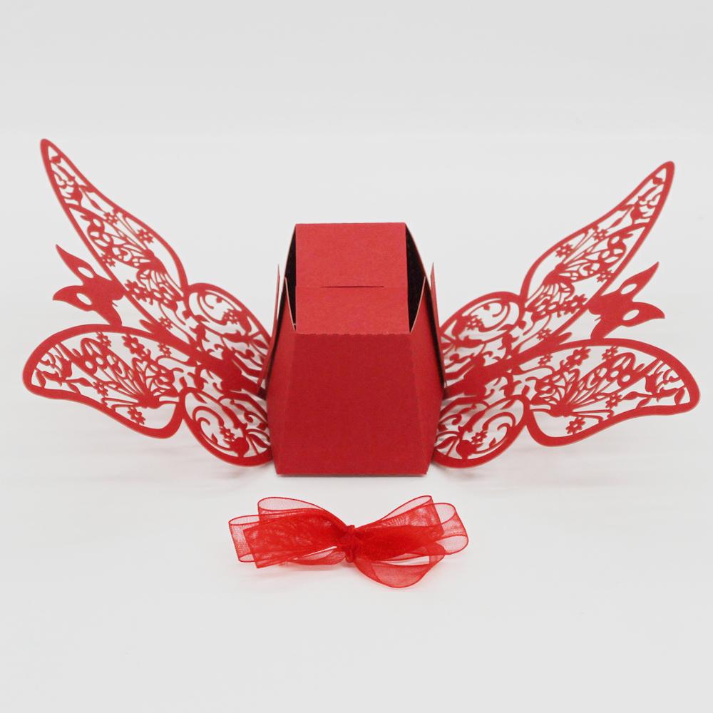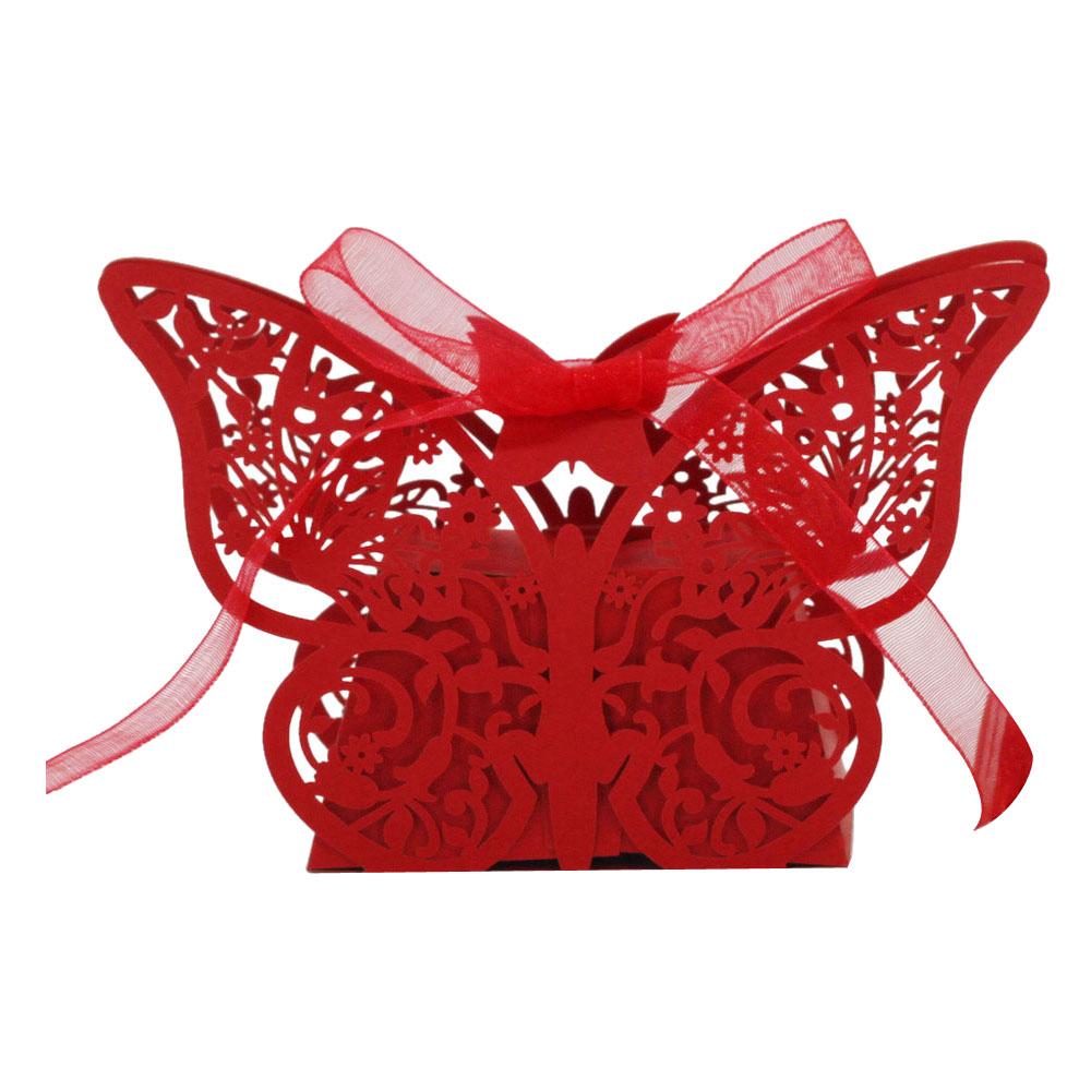 20Pcs Butterfly Sweets Candy Gift Boxes with Ribbon Wedding Party favor Red