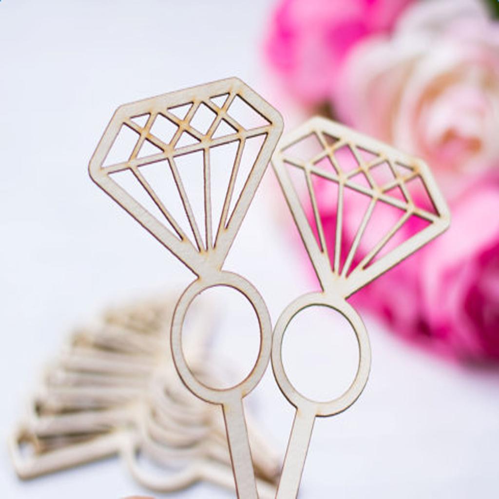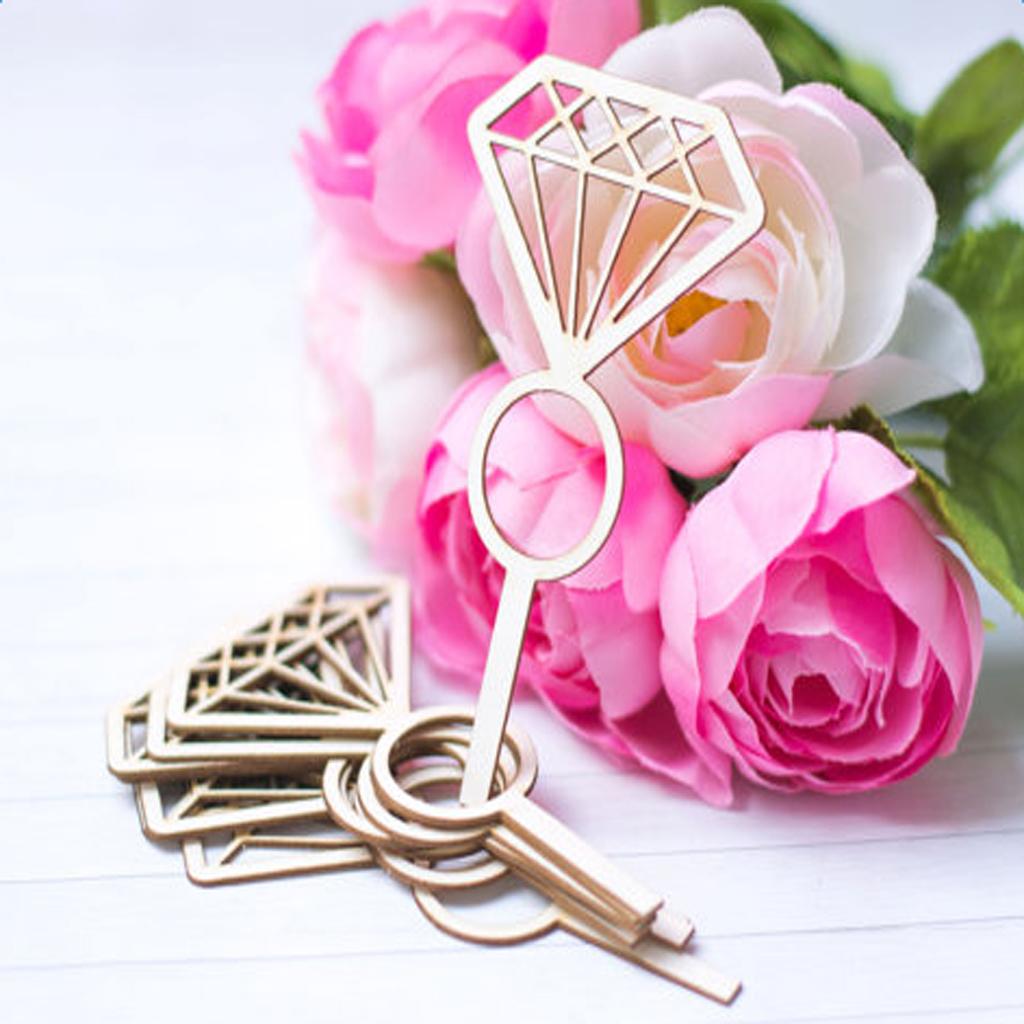 Novelty wooden Diamond ring cake toppers bridal shower party decor