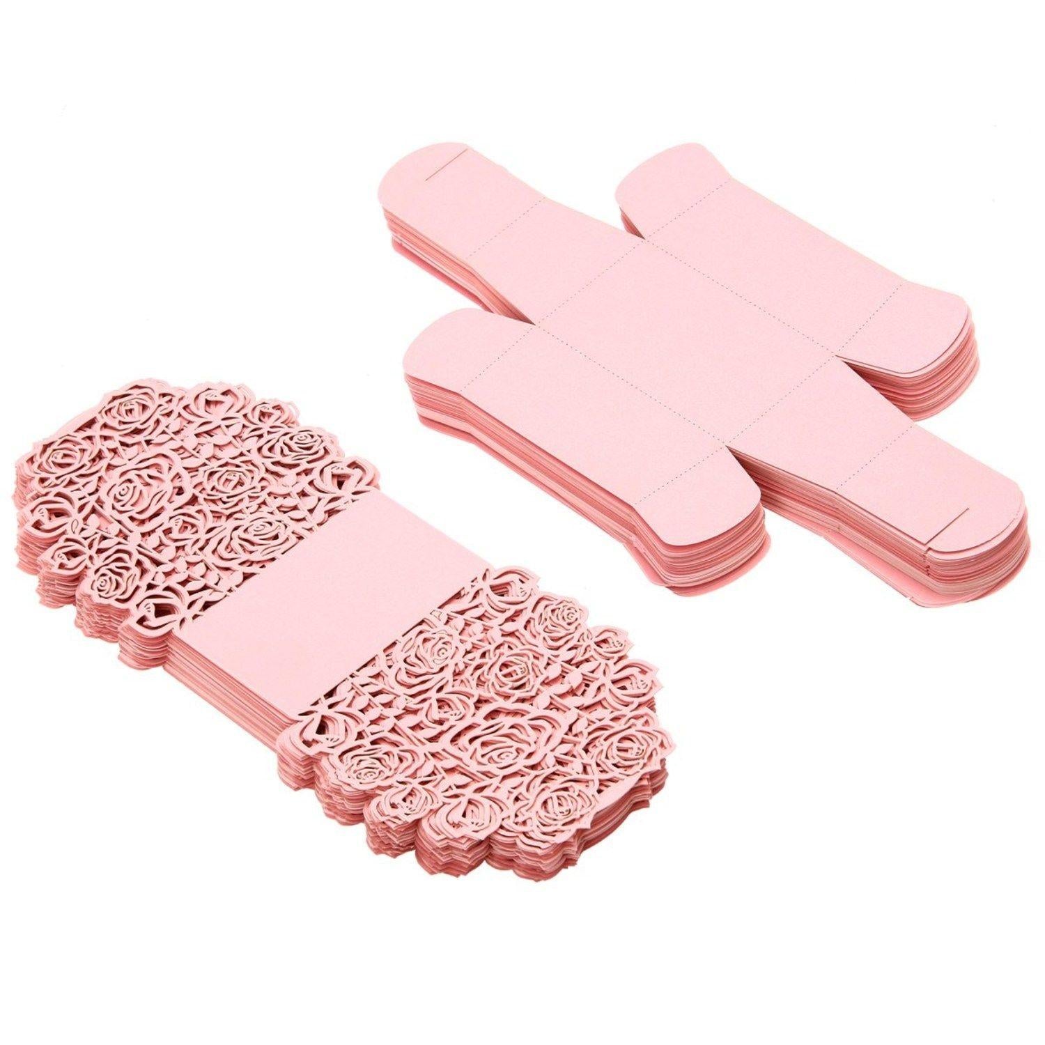 25pcs Pink Rose Design Candy Gift Box with Ribbon Wedding Favors Decoration