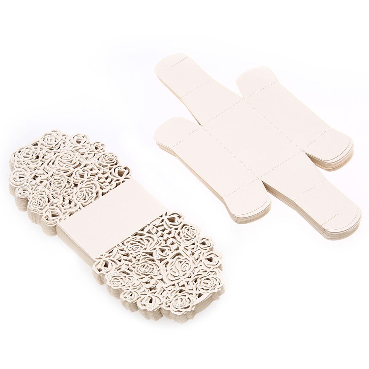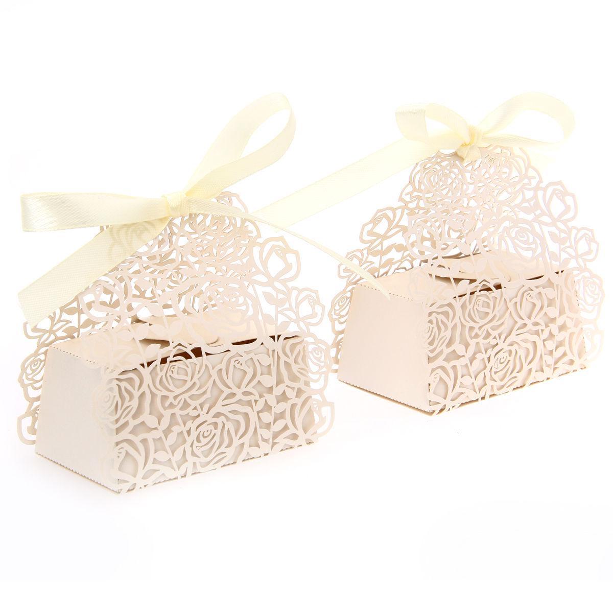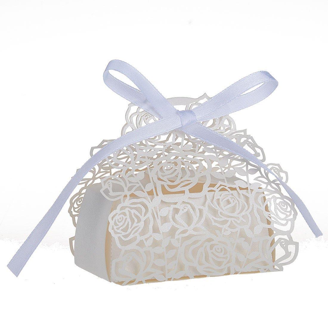 25pcs White Rose Design Candy Gift Box with Ribbon Wedding Favors Decoration