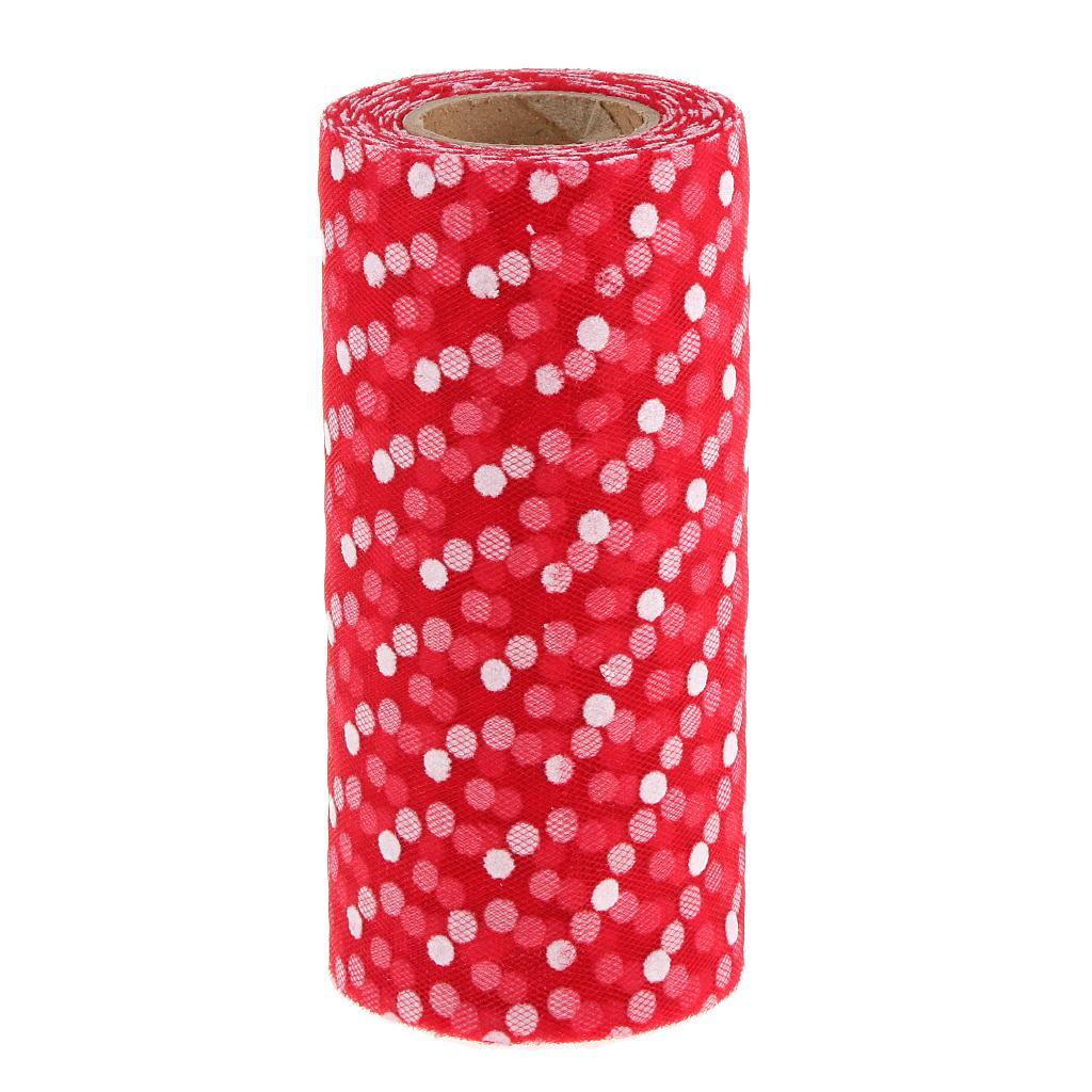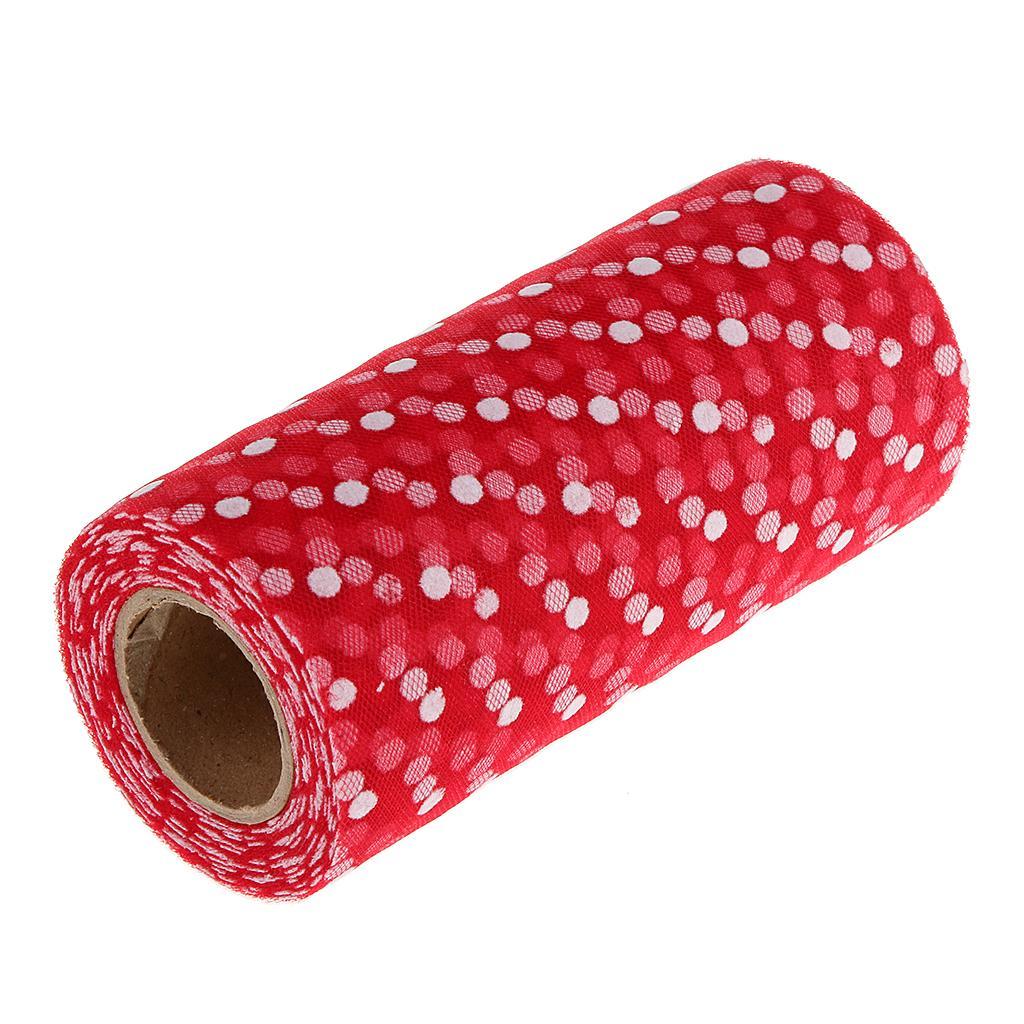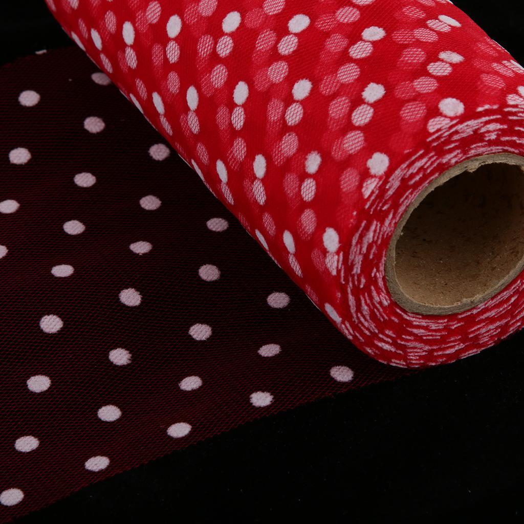 25yd Flocking Polka Dot Tulle Roll Spool for Wedding Party DIY Decor Red