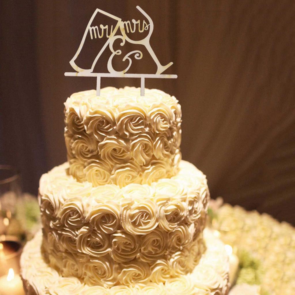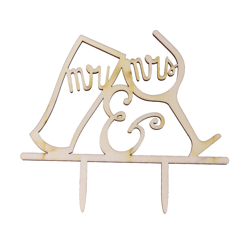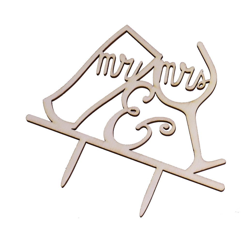 2PCS Weddiing Drinking Cup mr mrs Wedding Party Wood Cake Toppers