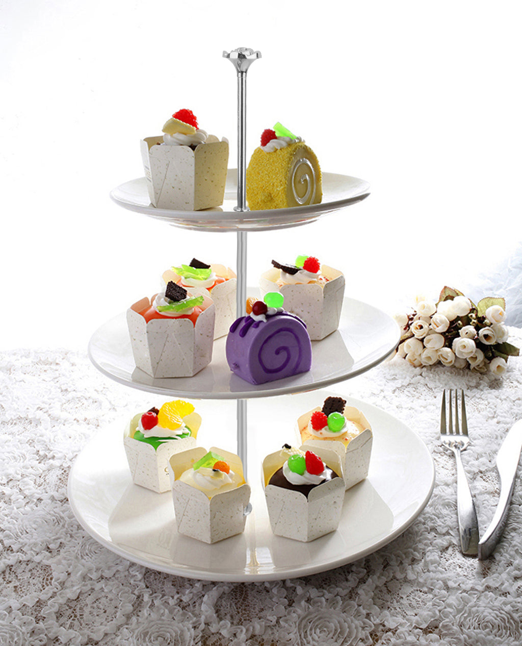 • Useful for serving cakes, cupcakes, desserts, fruits, easy to clean and store