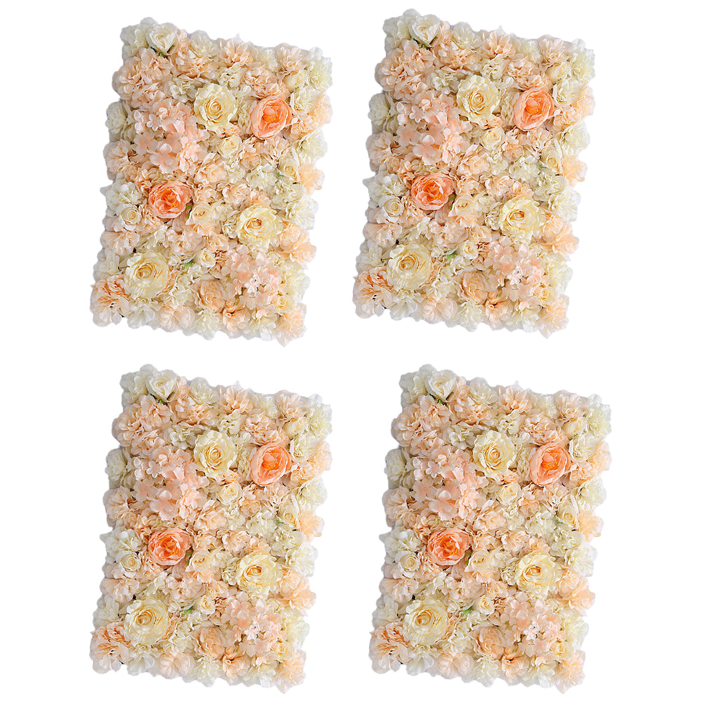 4 pieces Artificial Flower Wall Panel Home Wedding Venue Flower Arrangement Orange